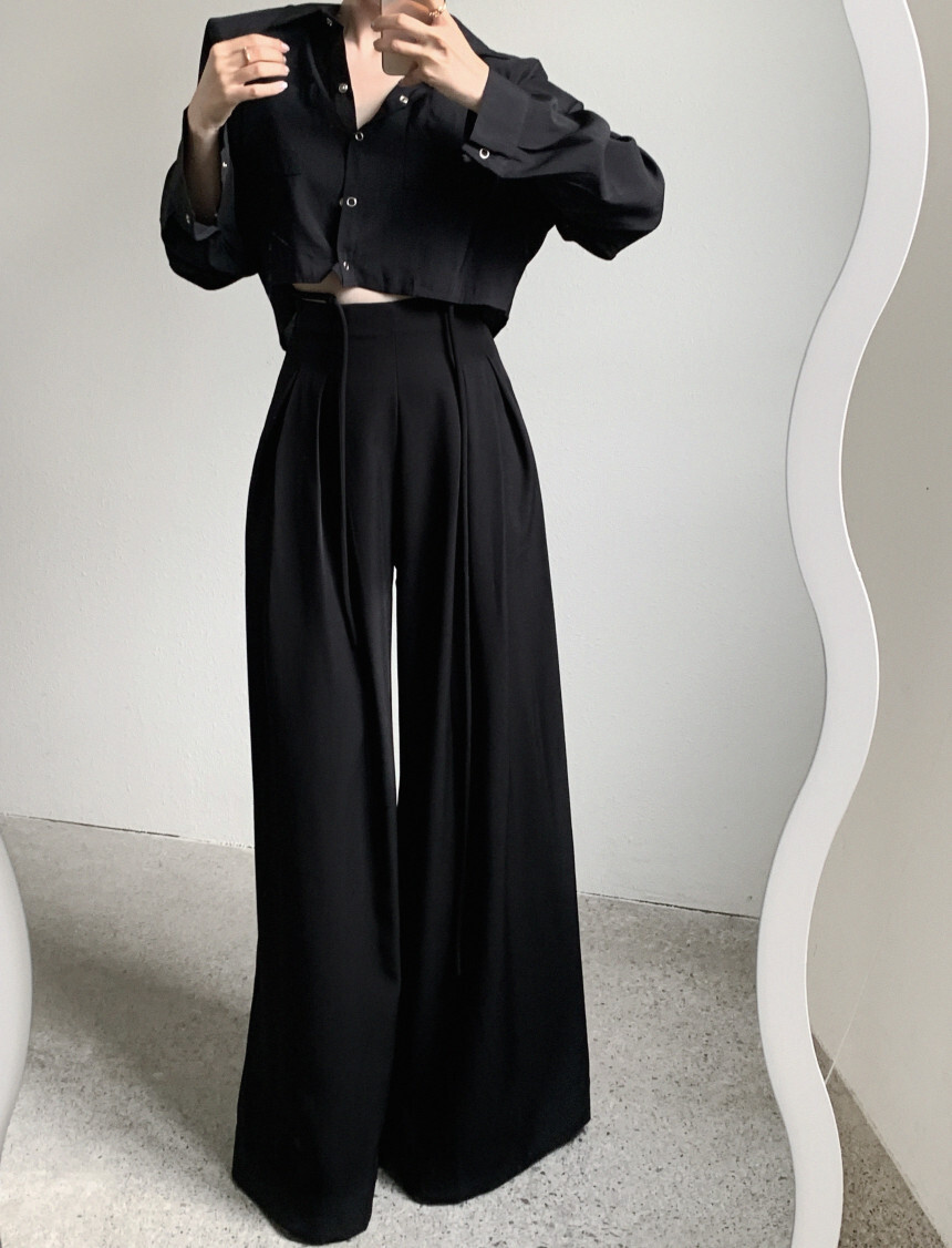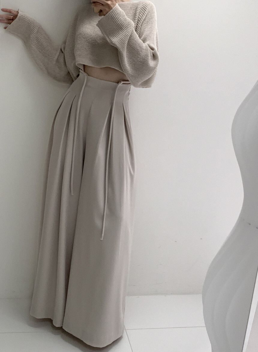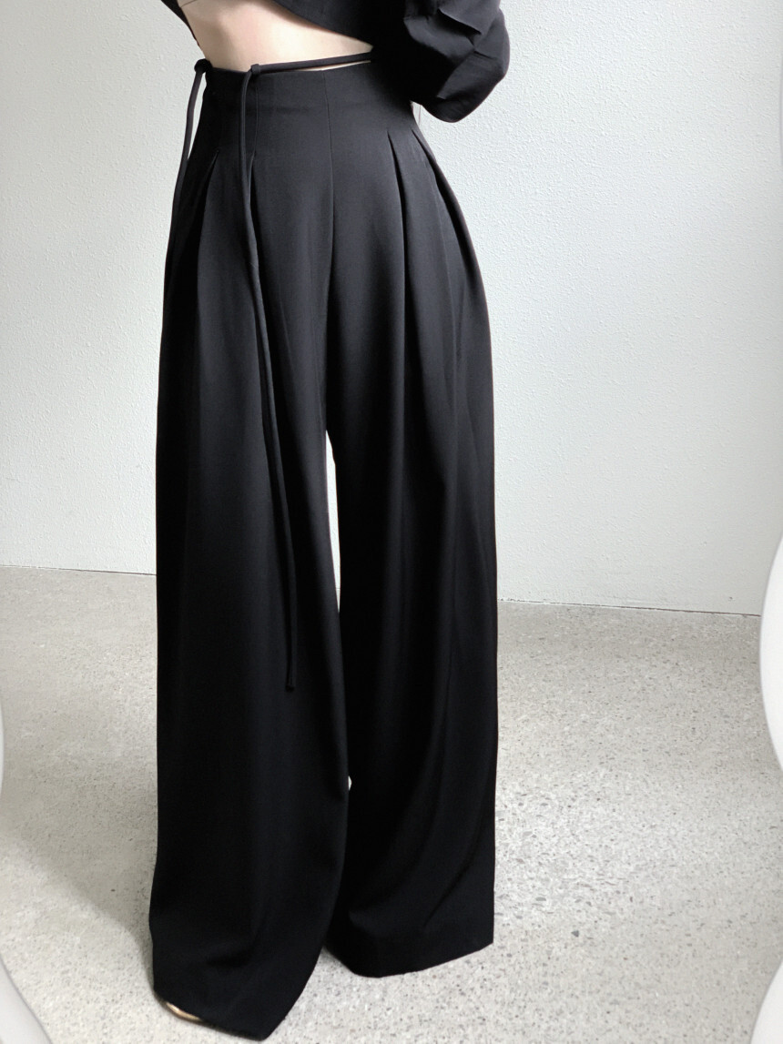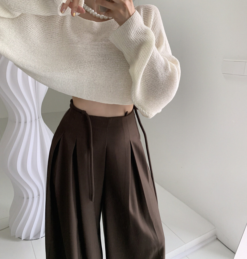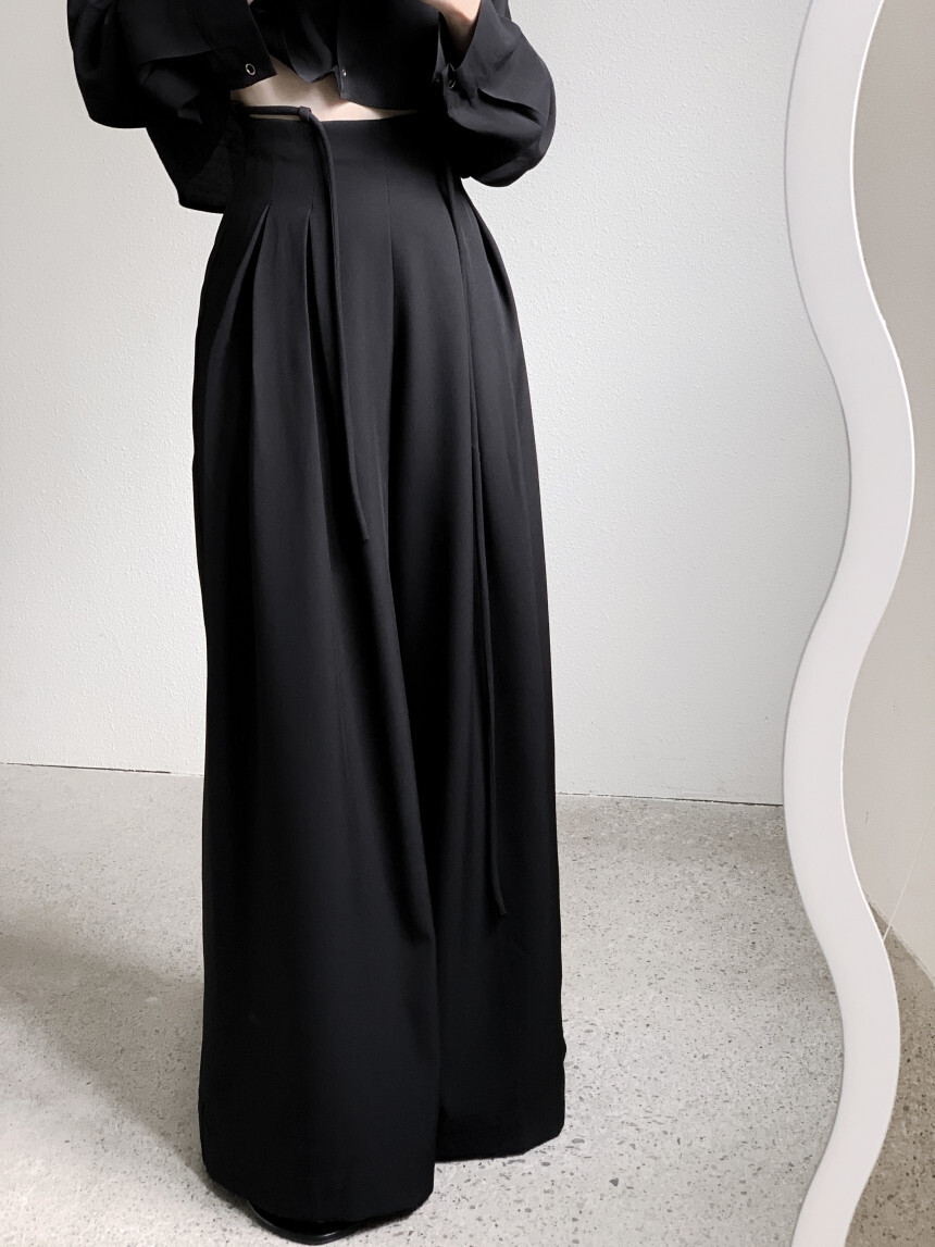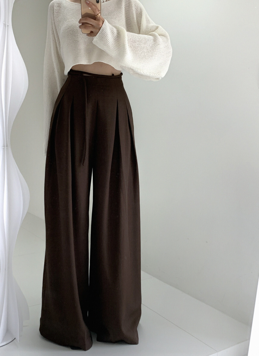 東大門 抽繩設計高腰垂墜寬褲(咖/黑)