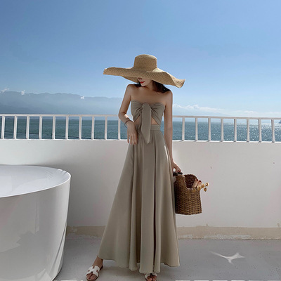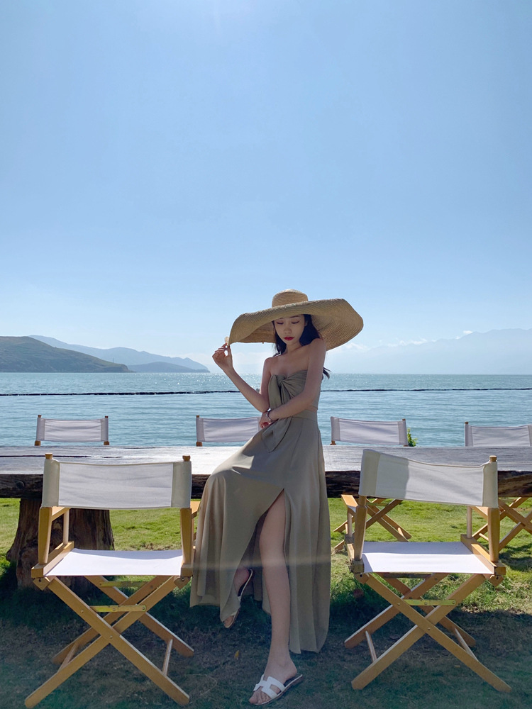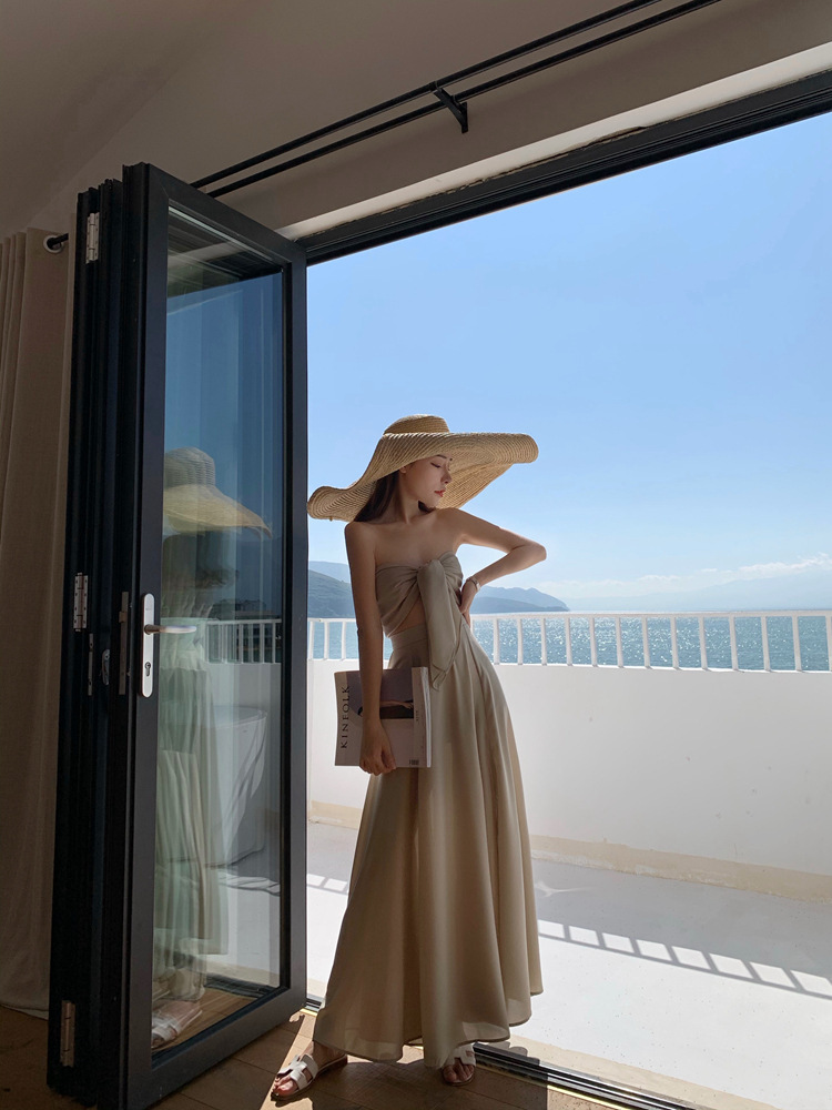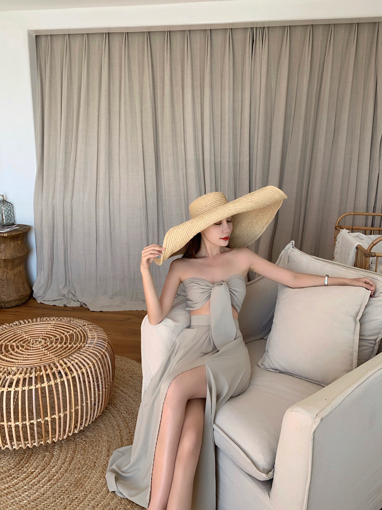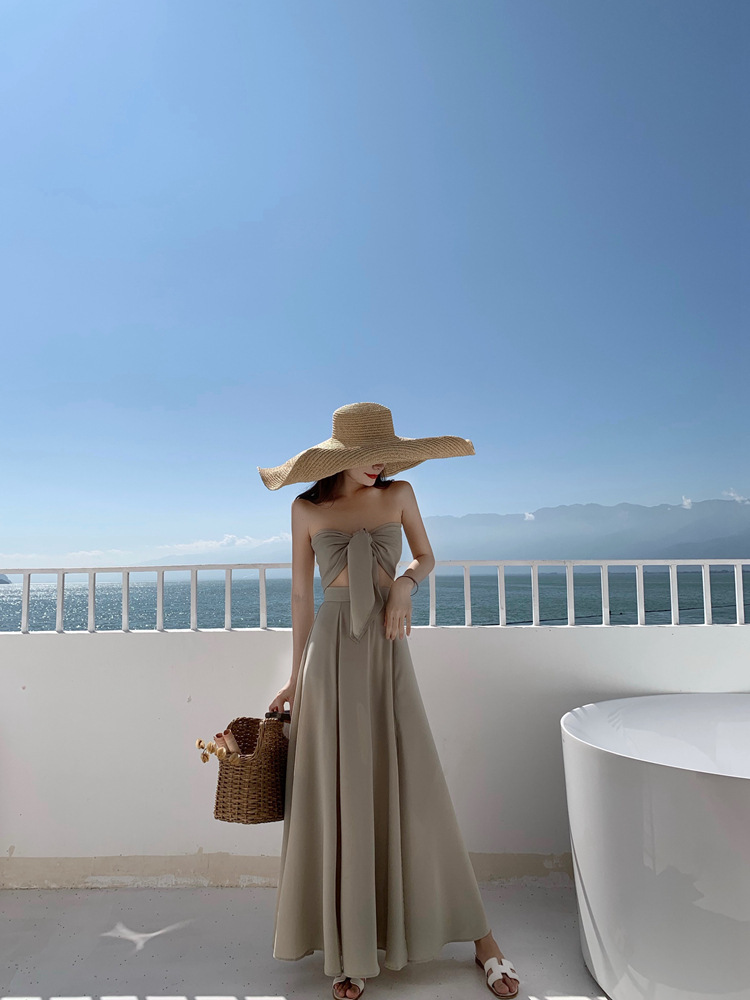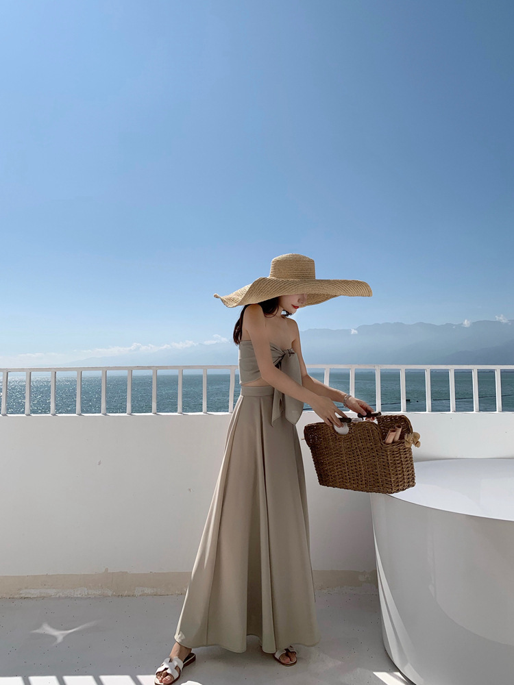 平口綁帶+高腰裙(2件套)