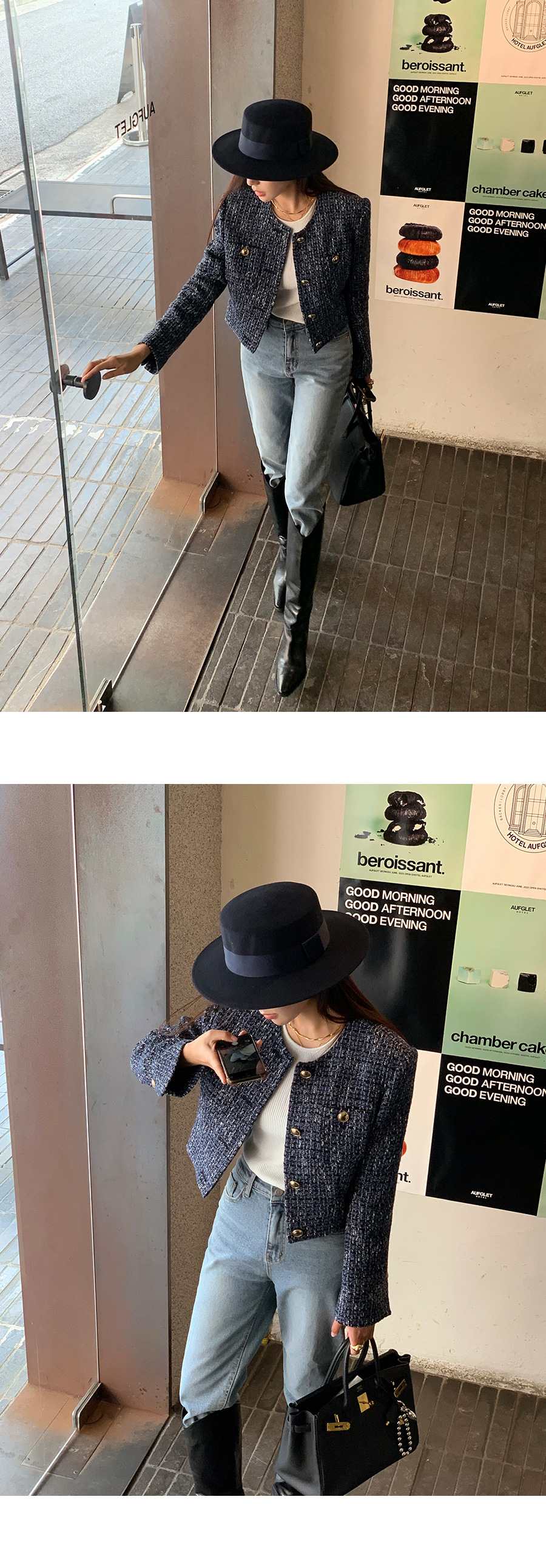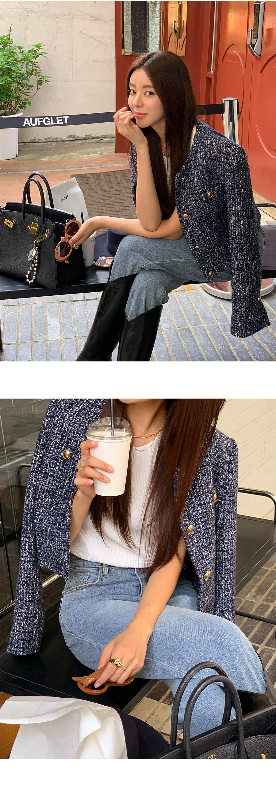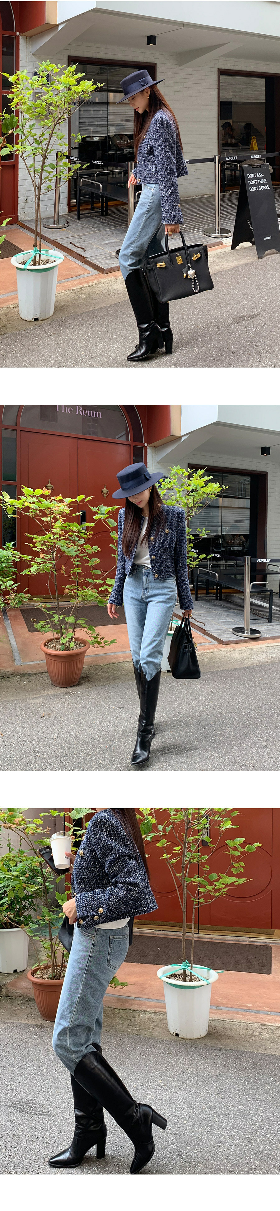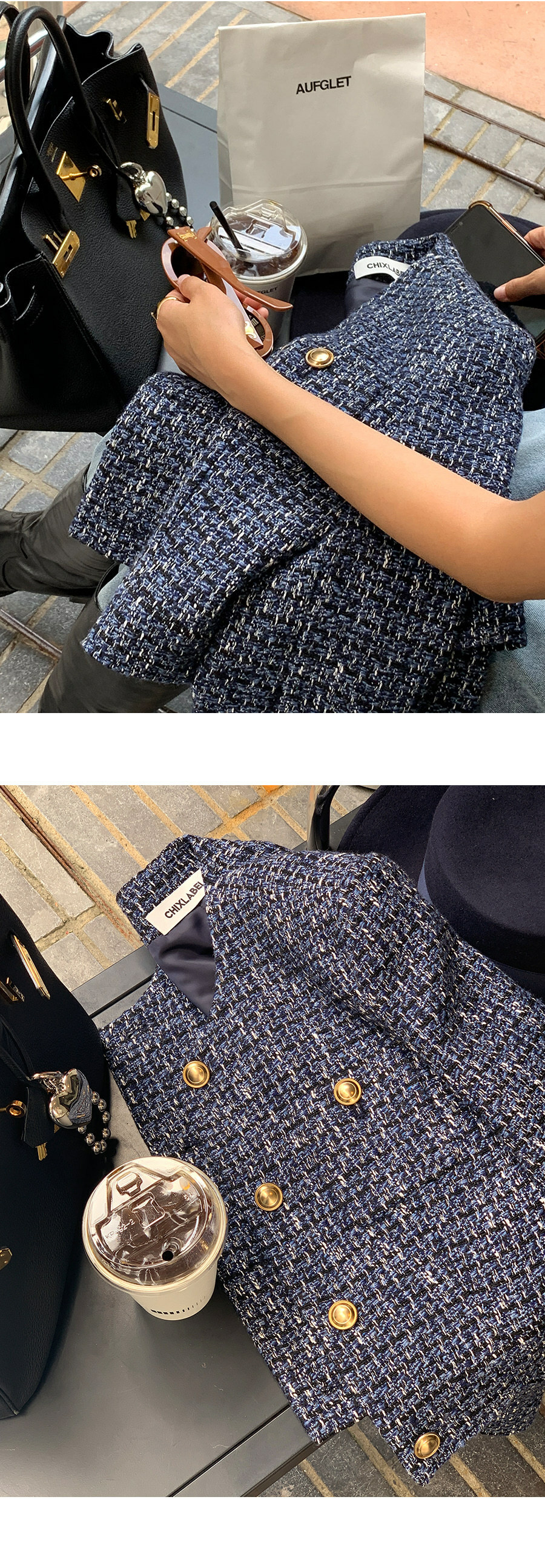 東大門粗花泥 小香外套(棕/深藍)
