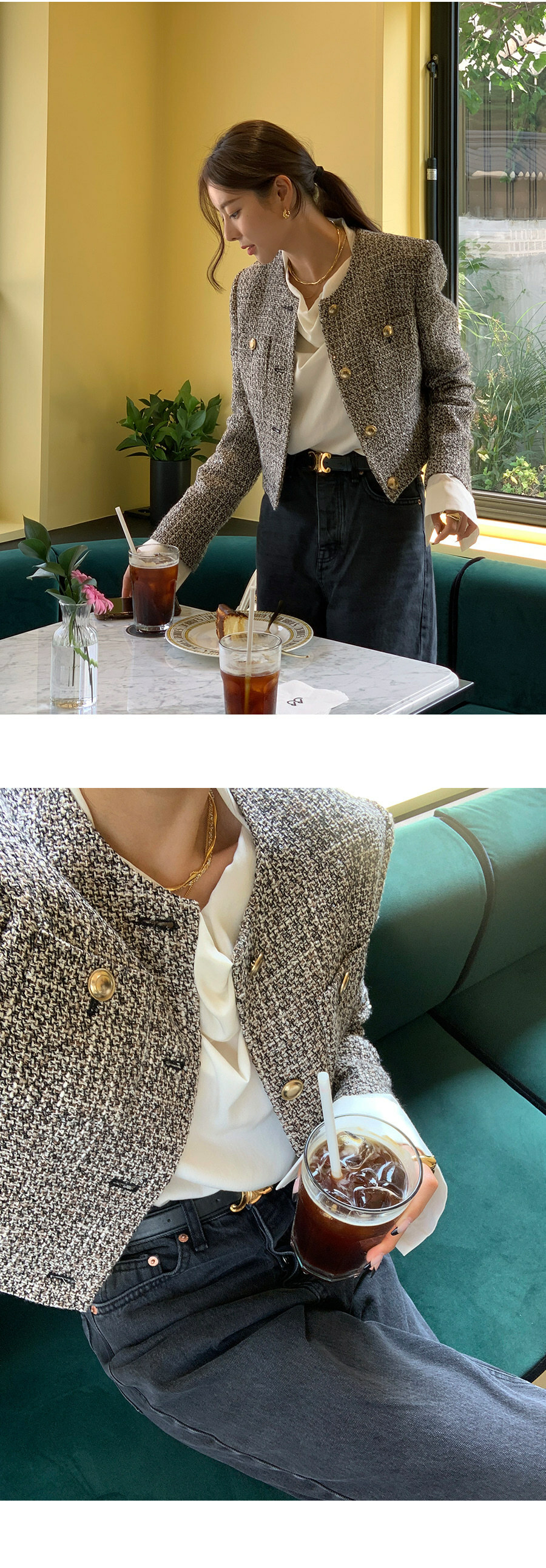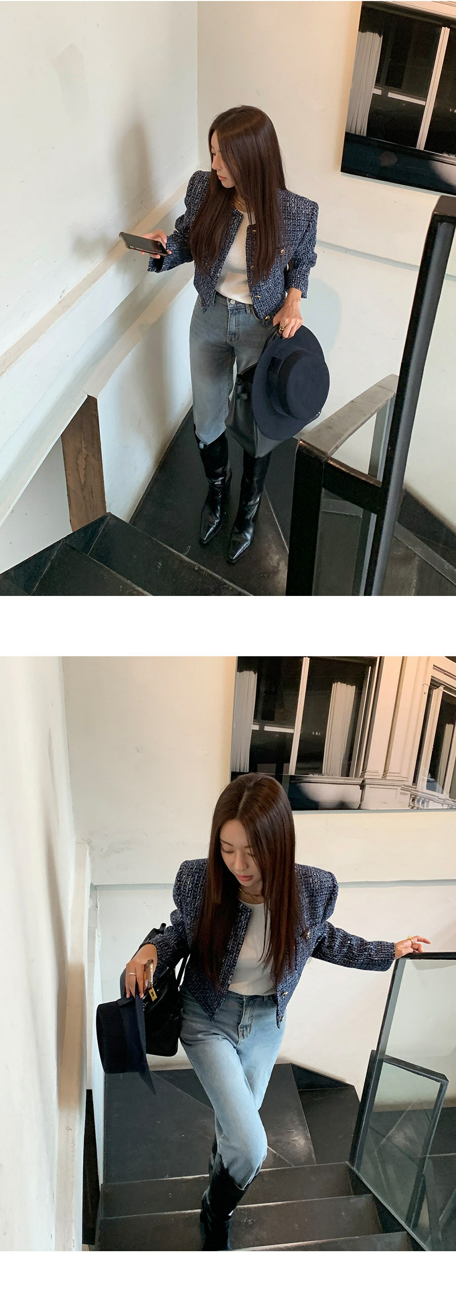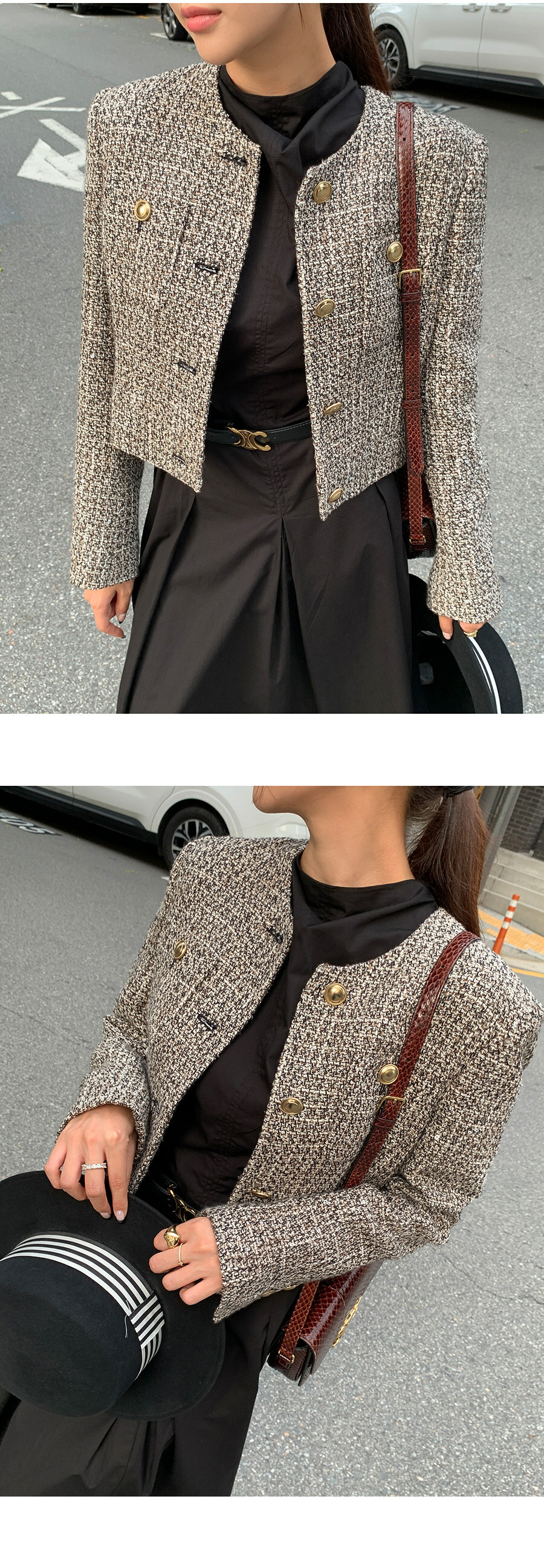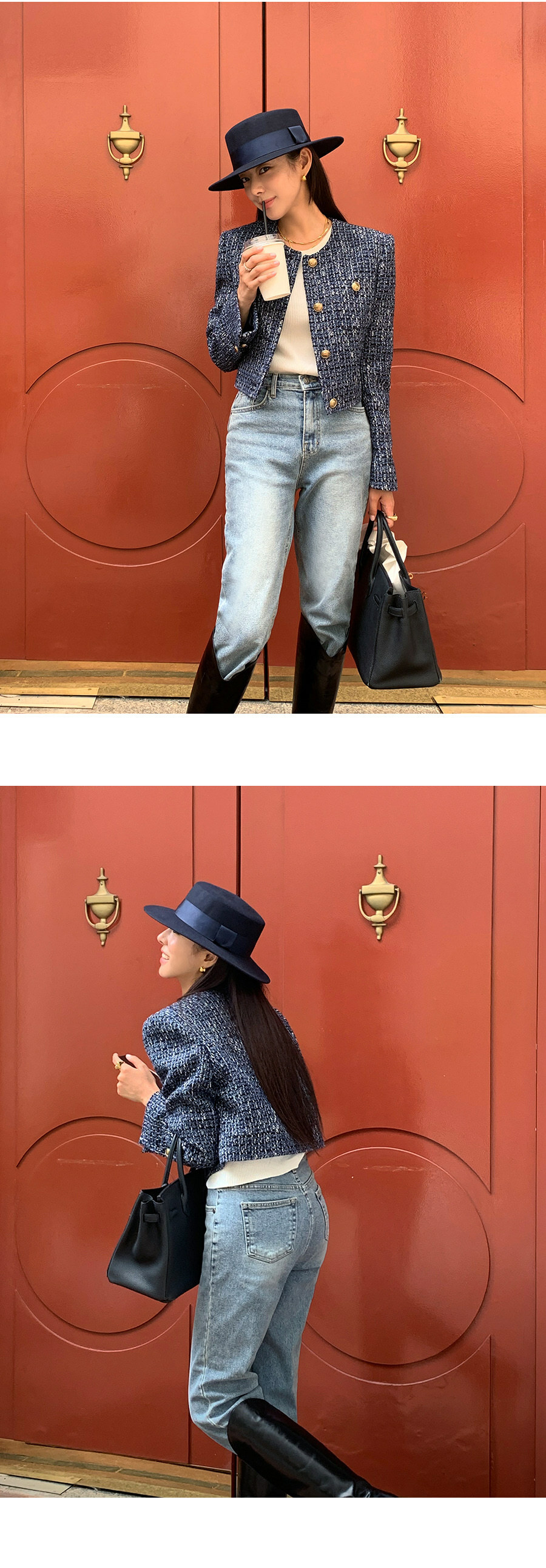 東大門粗花泥 小香外套(棕/深藍)