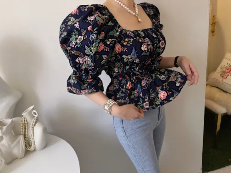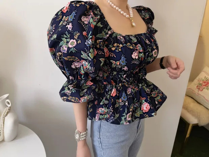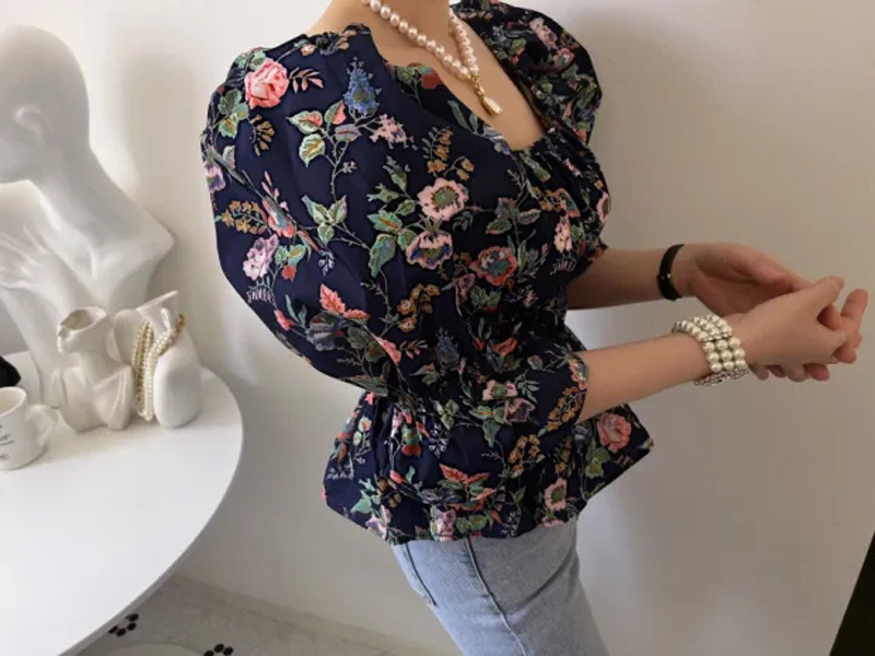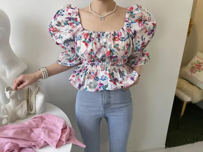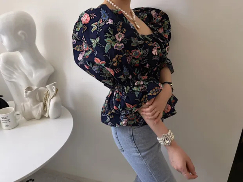 浪漫復古的碎花印花點綴設計,為造型增添優雅韻味。