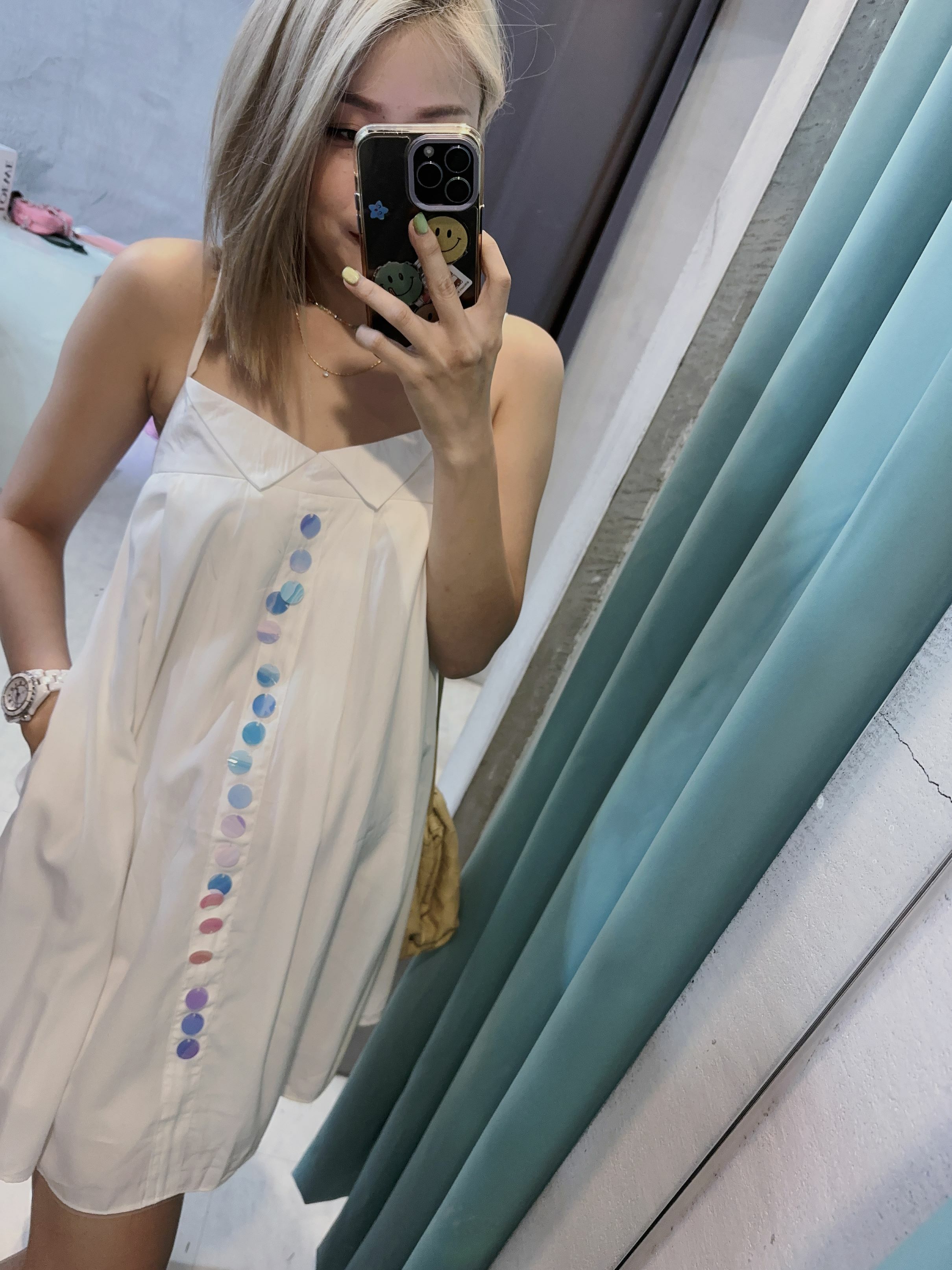 亮片釦細肩帶傘洋