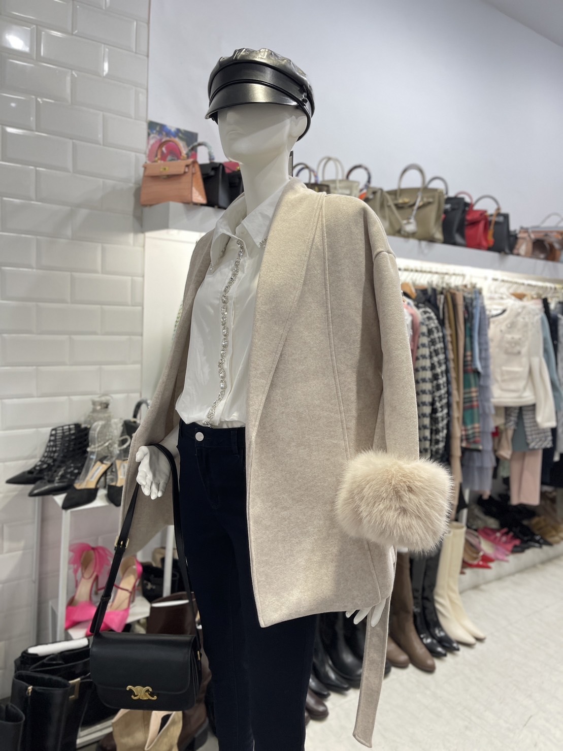 優雅時尚的毛毛袖設計,柔軟舒適的羊絨材質,修飾腰身的收腰設計,讓穿著時更顯纖細曲線。不論是上班或外出,這件外套都能完美演繹溫柔知性的造型。