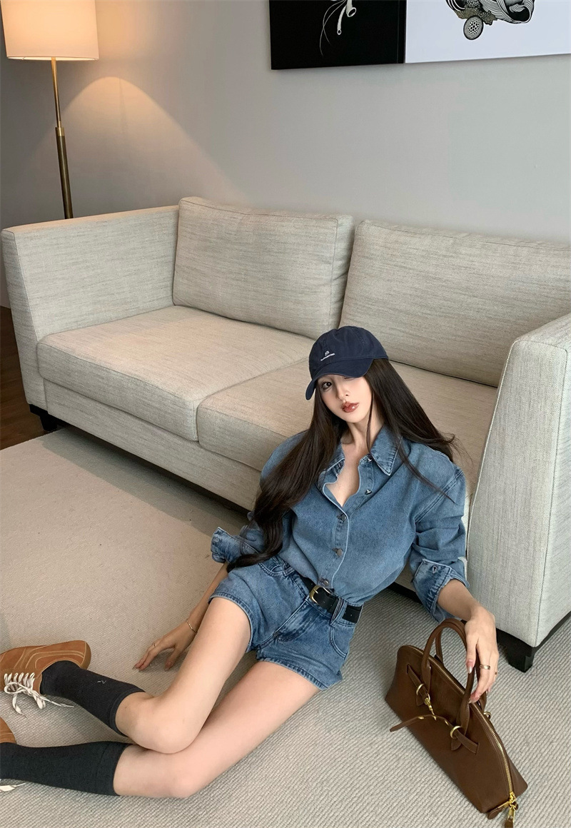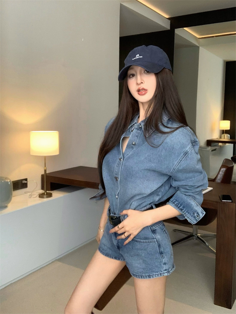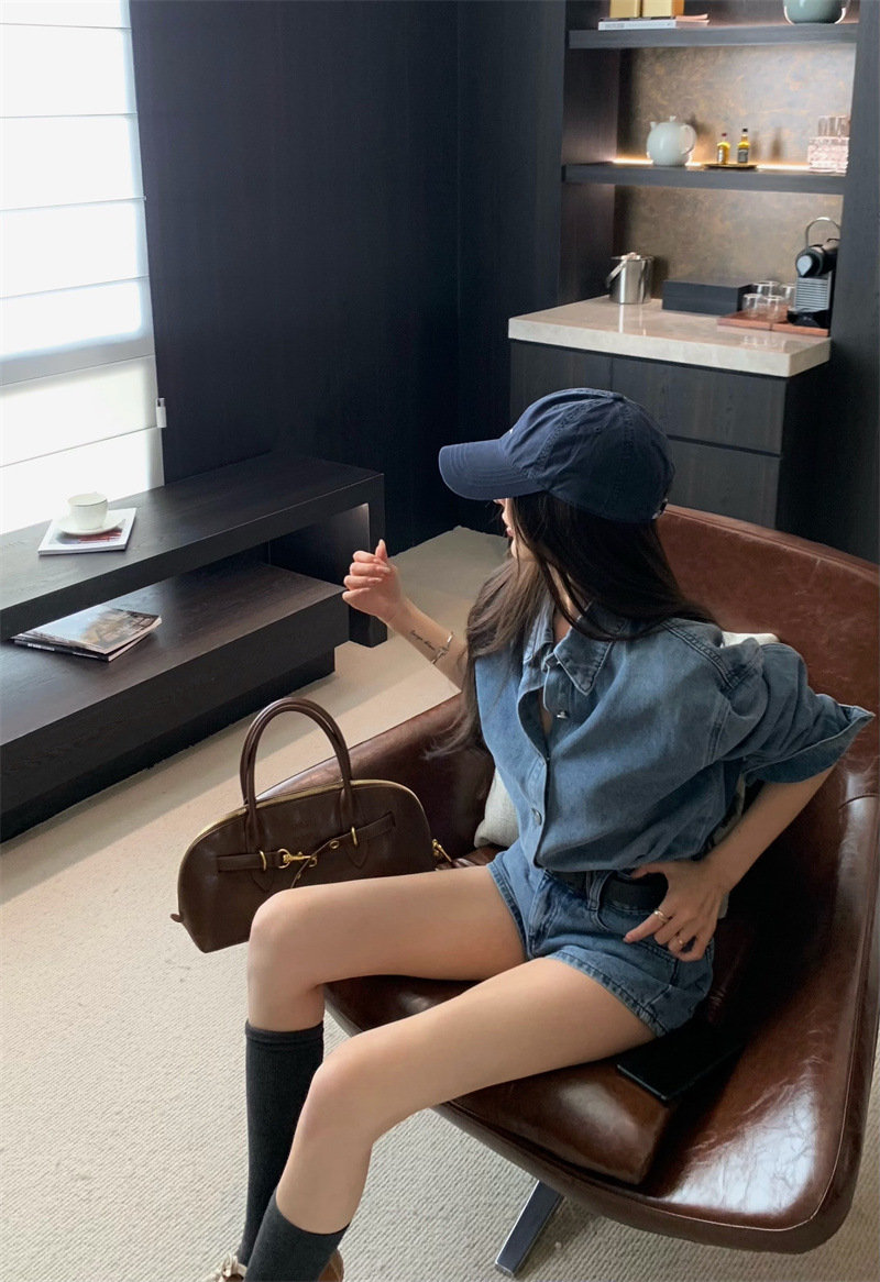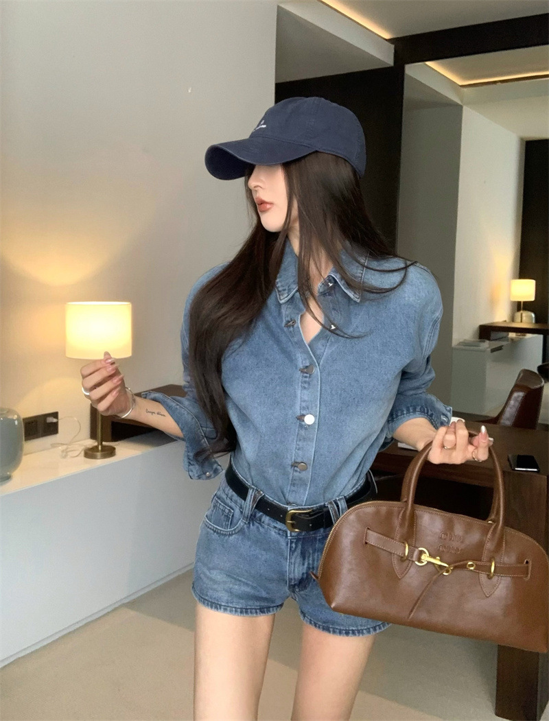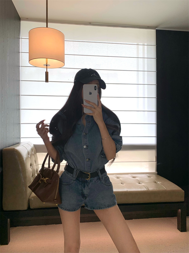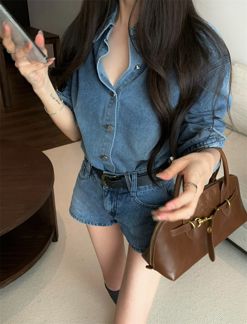 休閒時髦感 牛仔襯衫+短褲(2件組)
