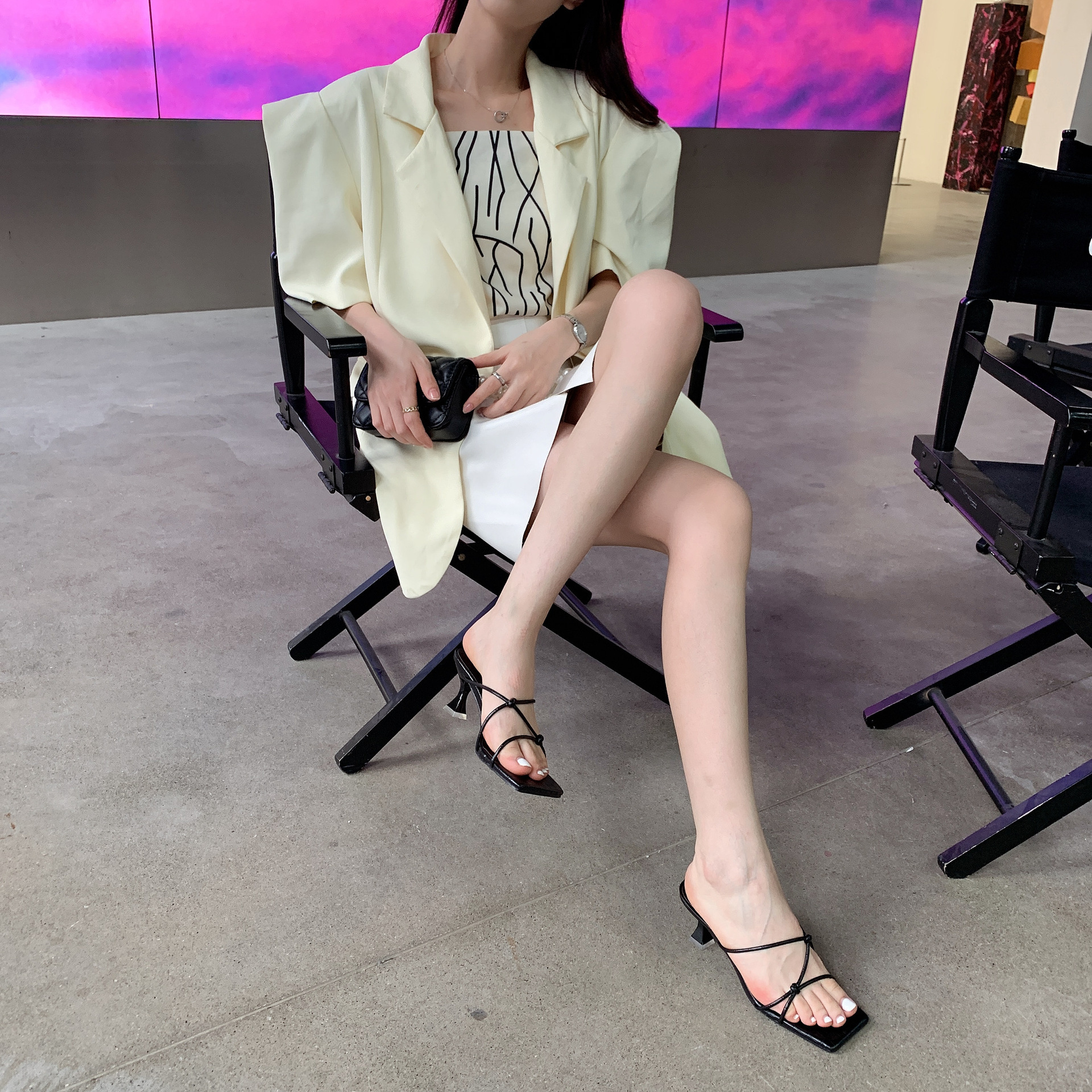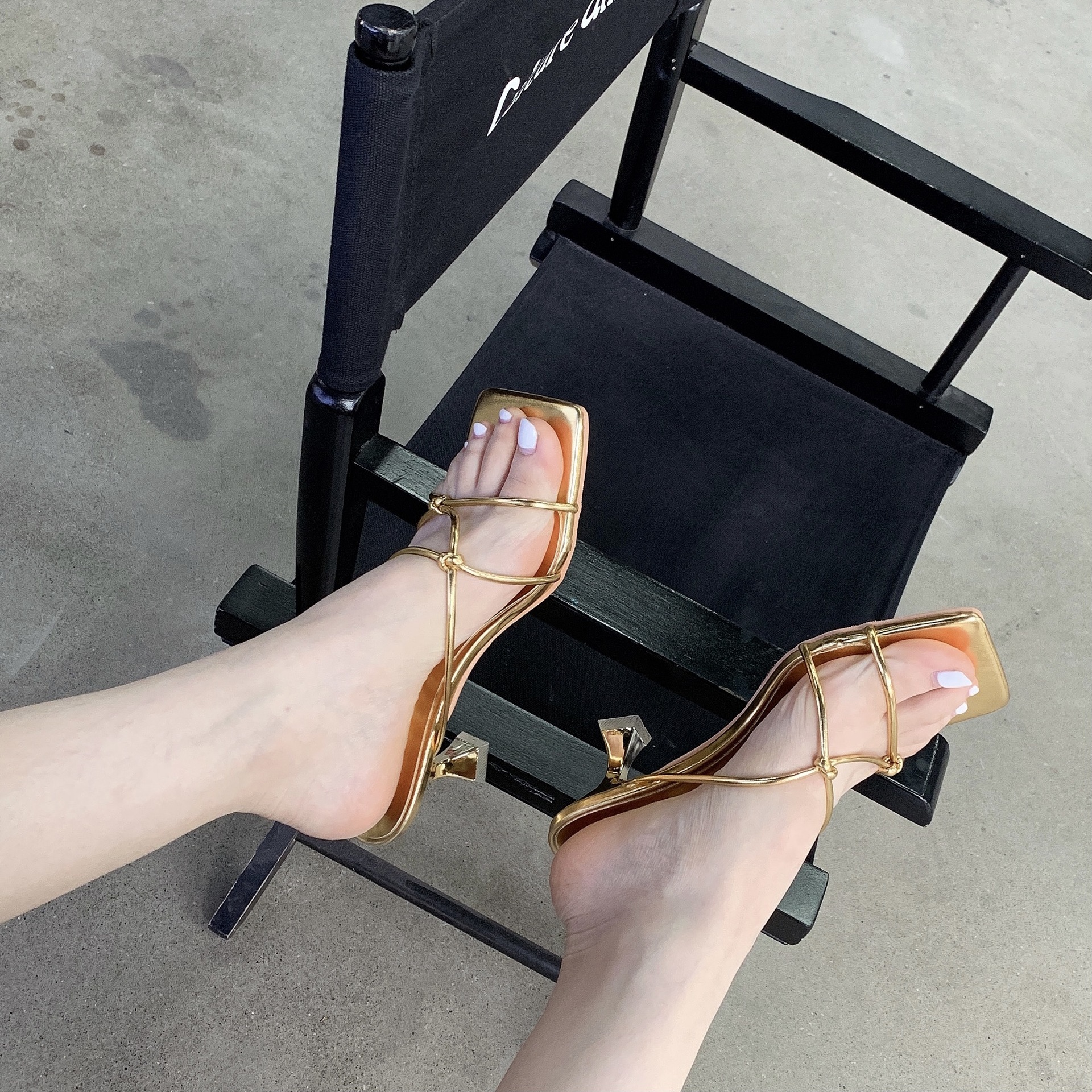 細帶扭結 方頭跟拖(35-40)(黑/白/金/銀)