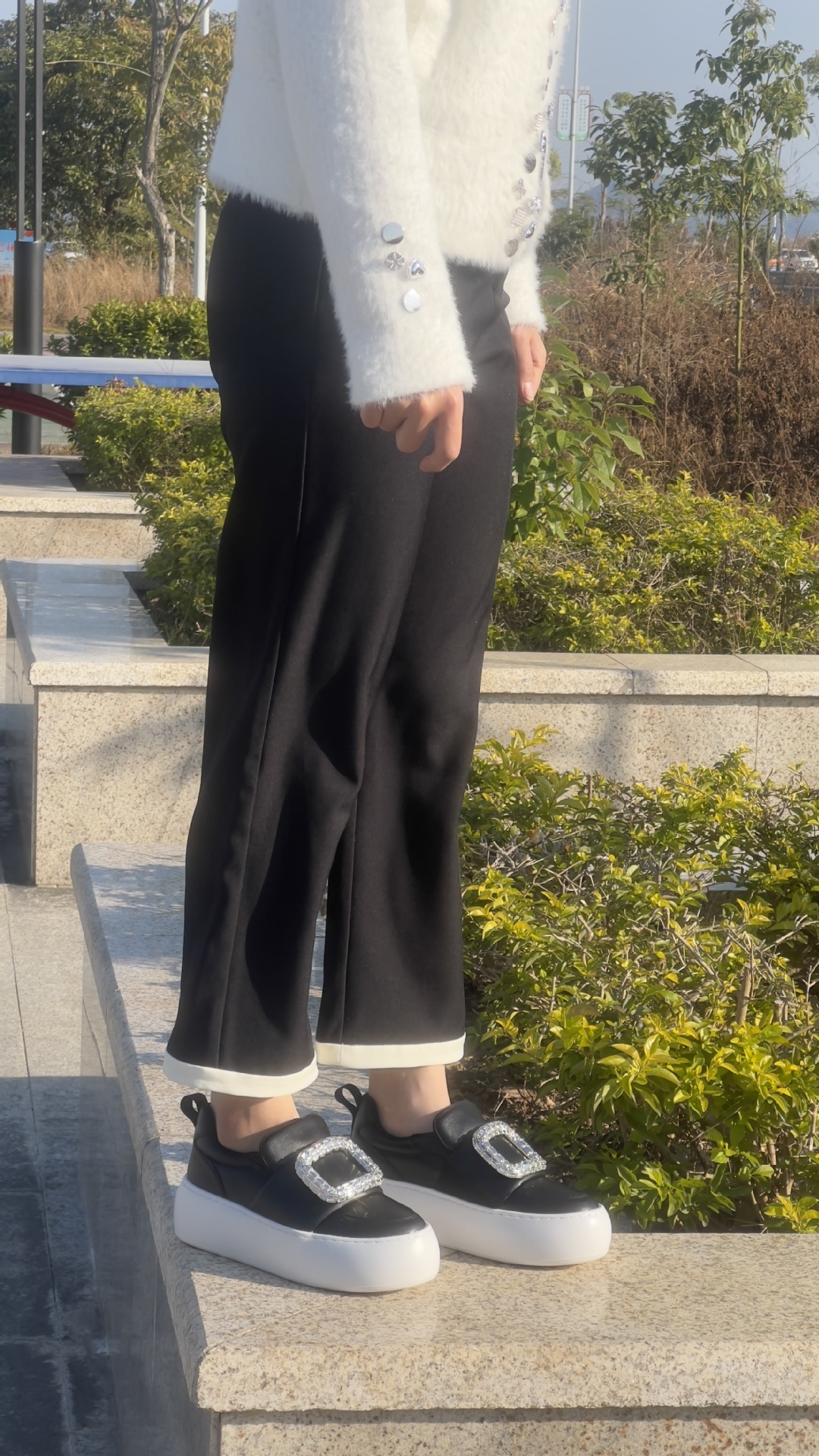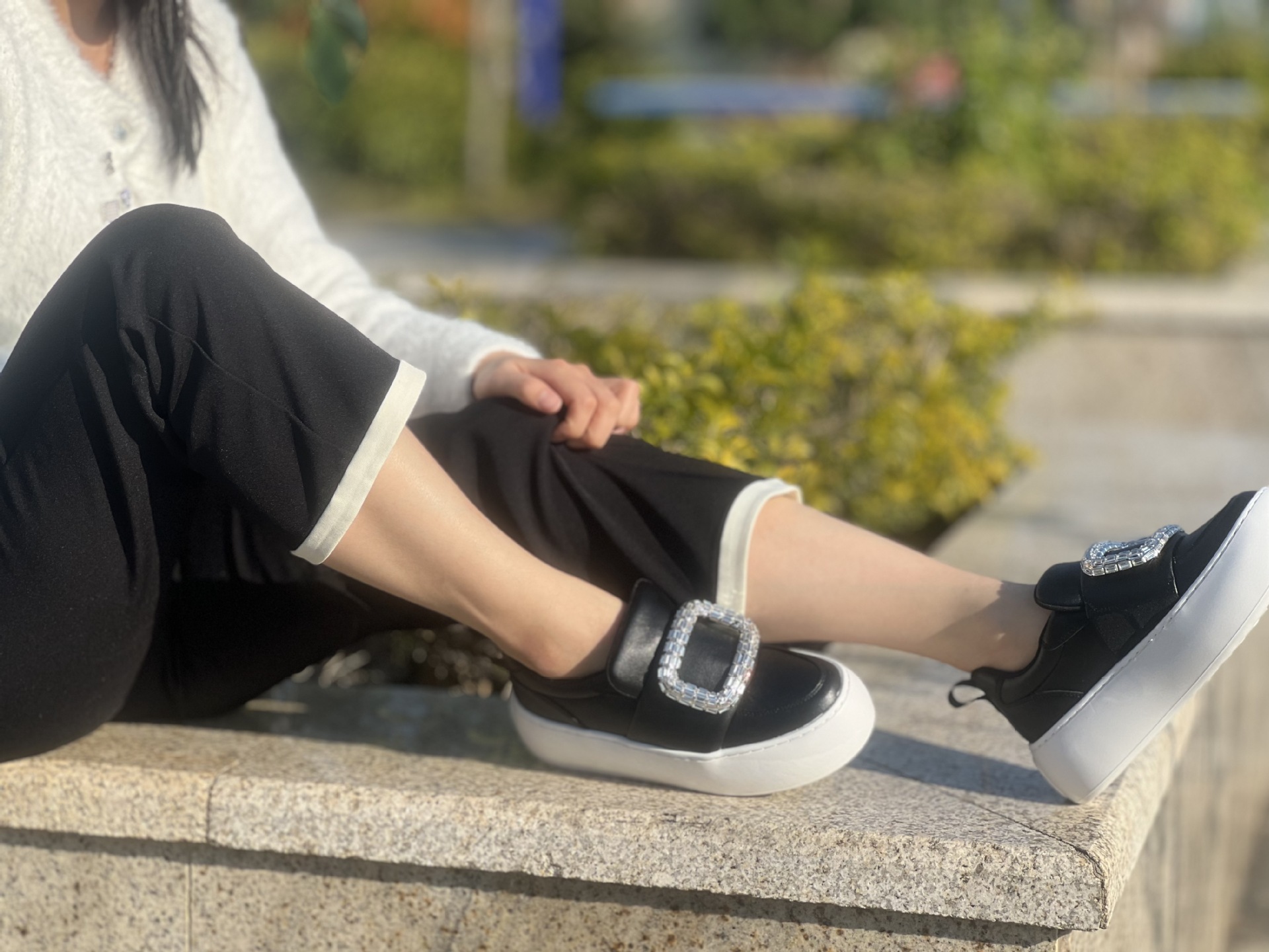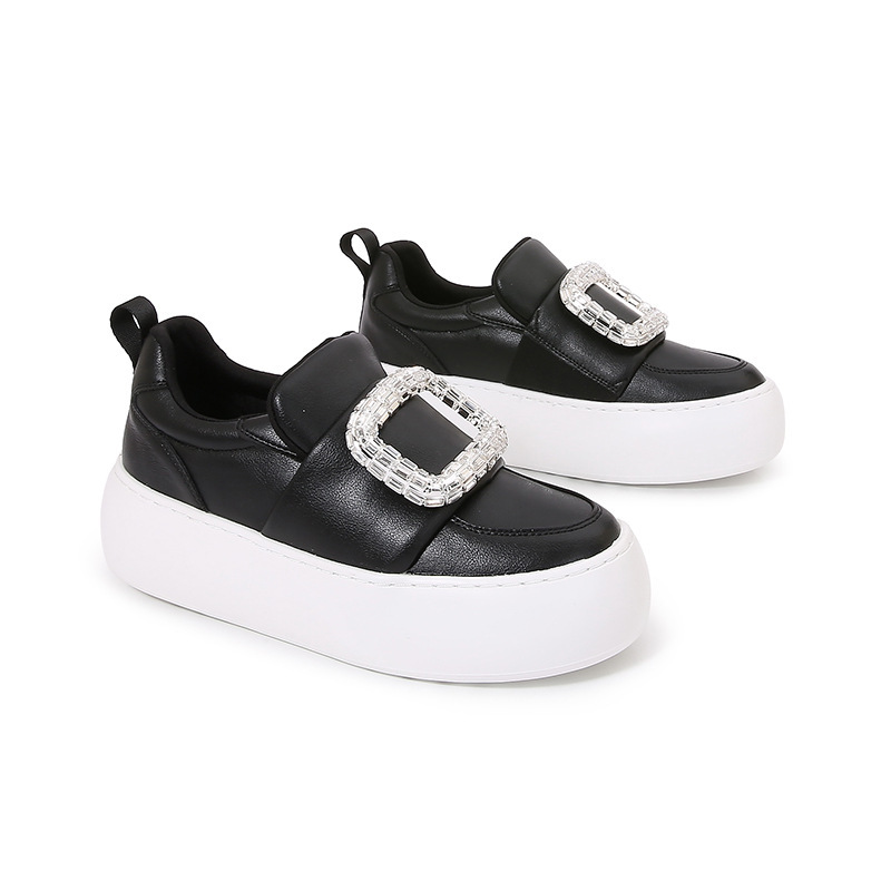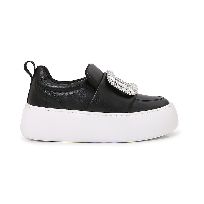 水鑽方釦 厚底增高休閒鞋(34-40)(黑/白)
