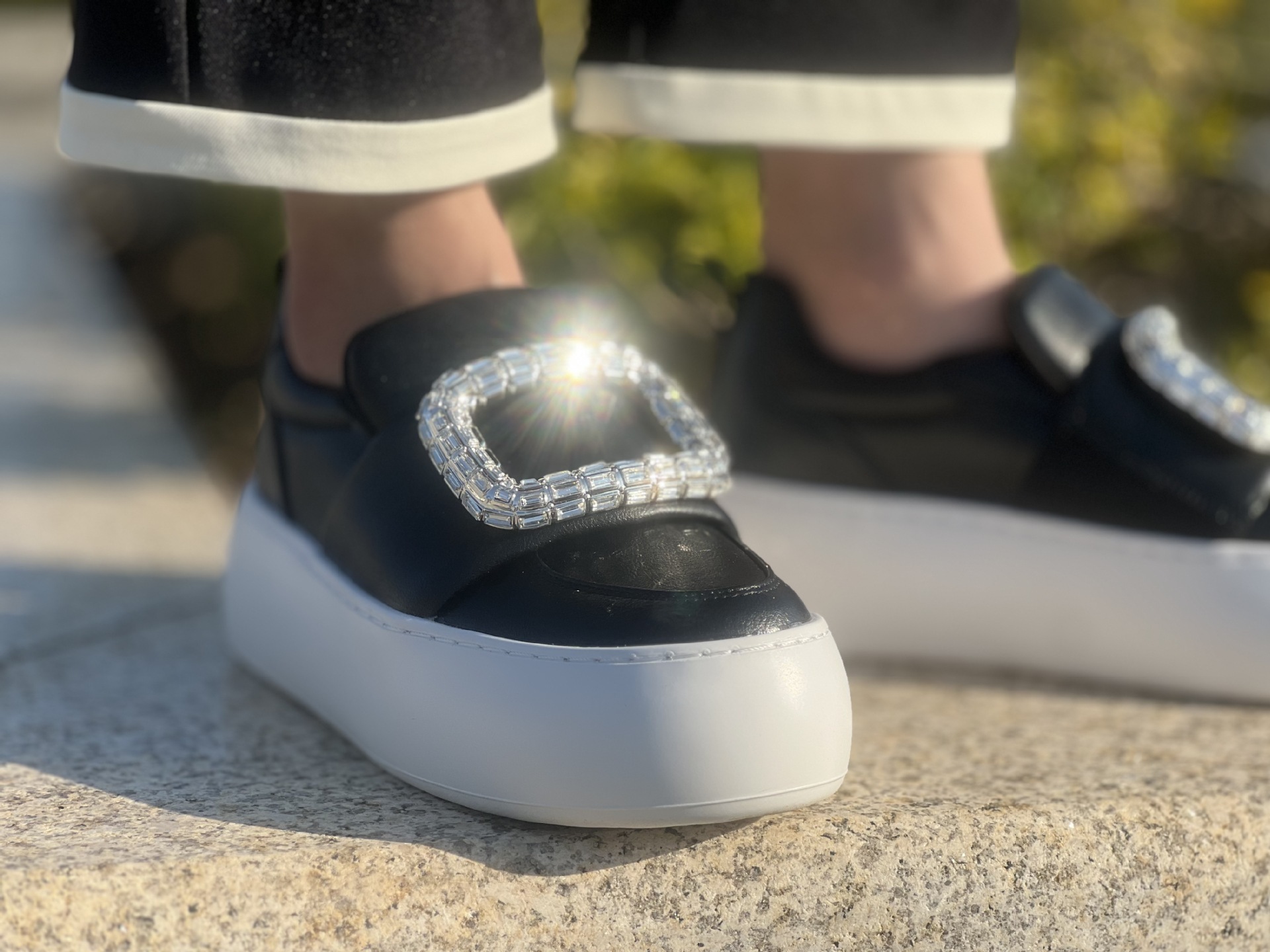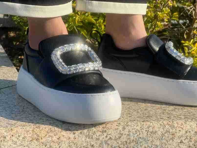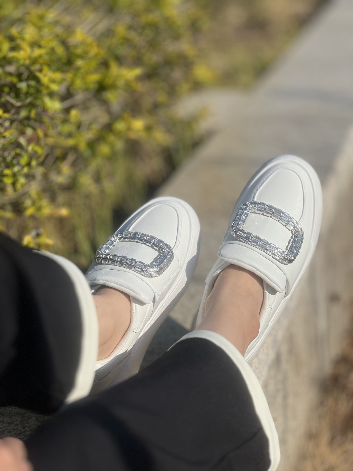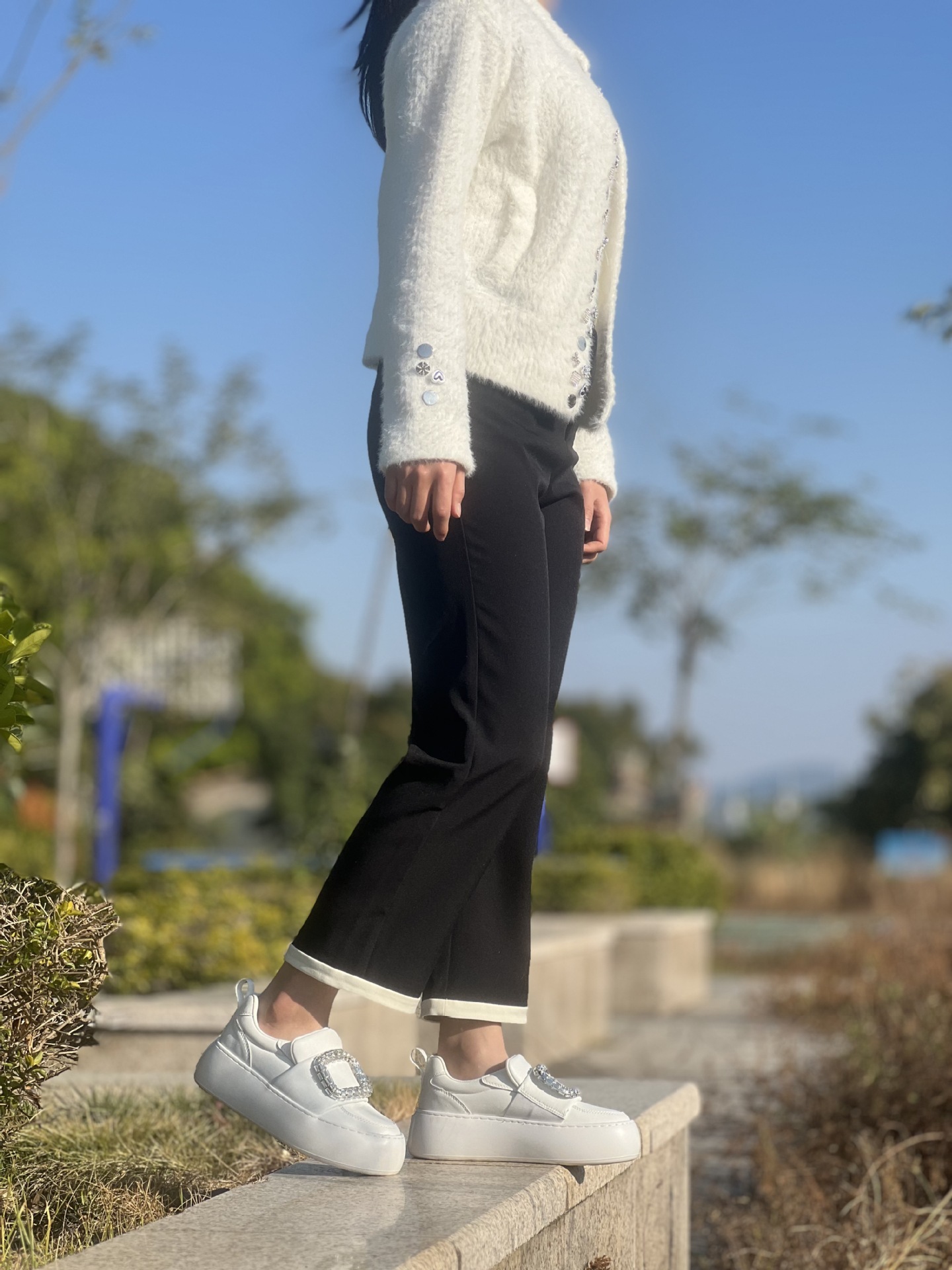水鑽方釦 厚底增高休閒鞋(34-40)(黑/白)