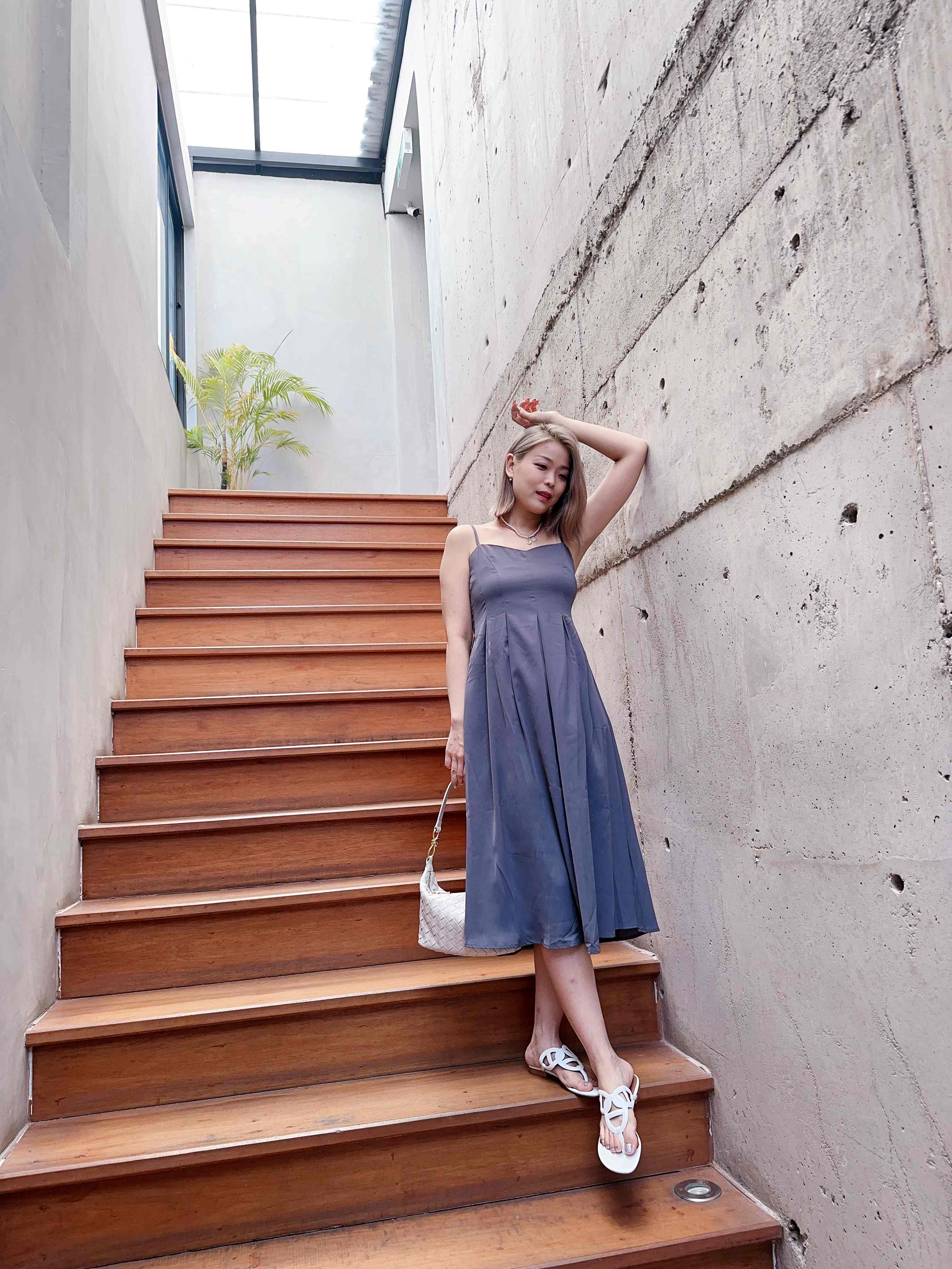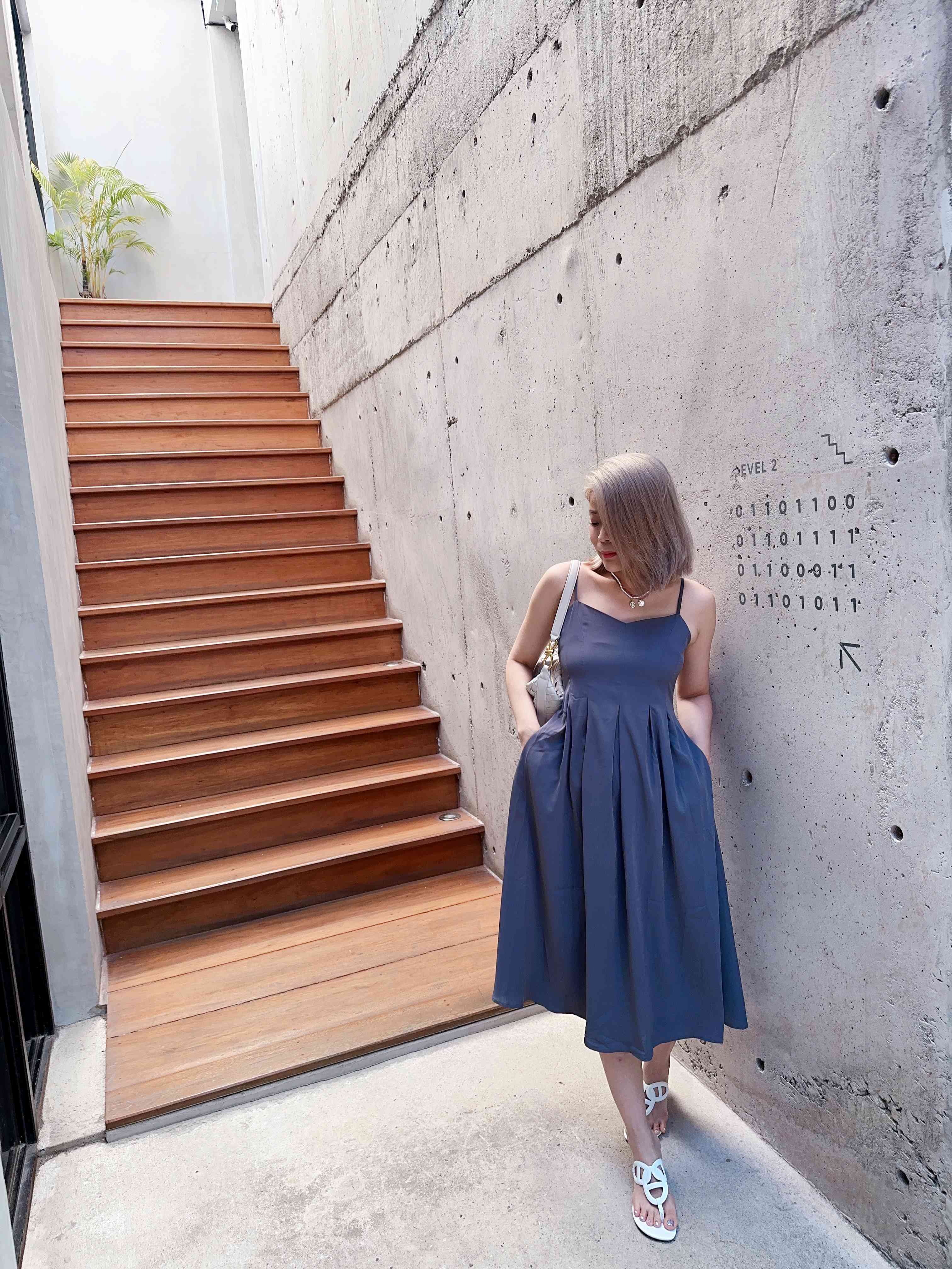 這件浪漫典雅的壓摺收腰洋裝,採用柔軟舒適的布料,貼身剪裁彰顯自然流暢的線條。寬大飽滿的半圓裙襬增加整體造型的夢幻感,營造出俐落中帶有女性柔美的特質。無論是日常穿搭或是約會場合,都能展現出細膩優雅的時尚風采。