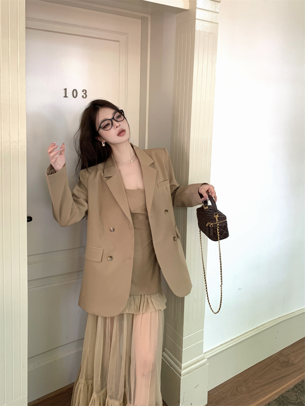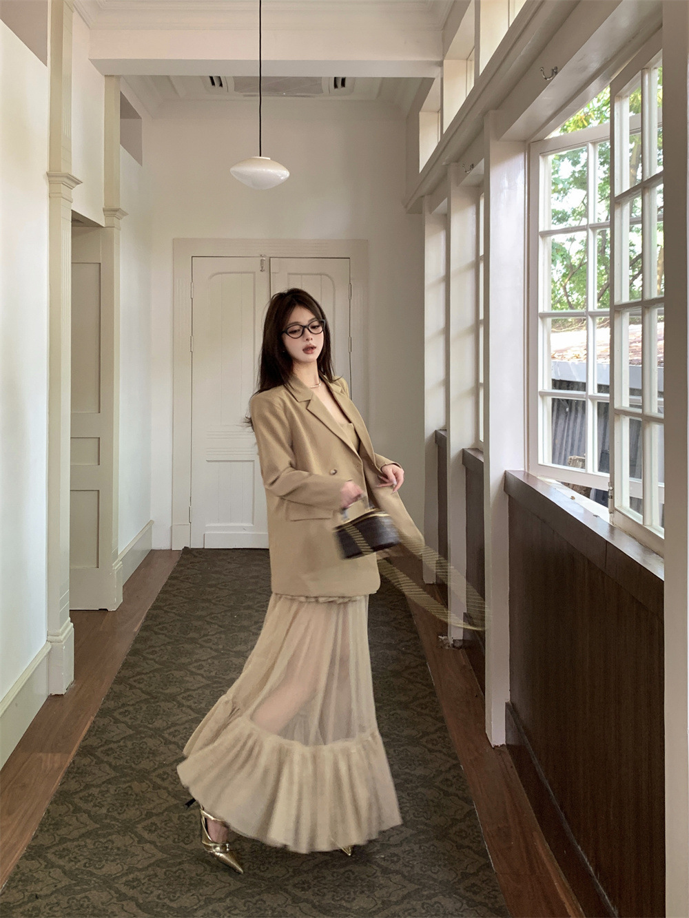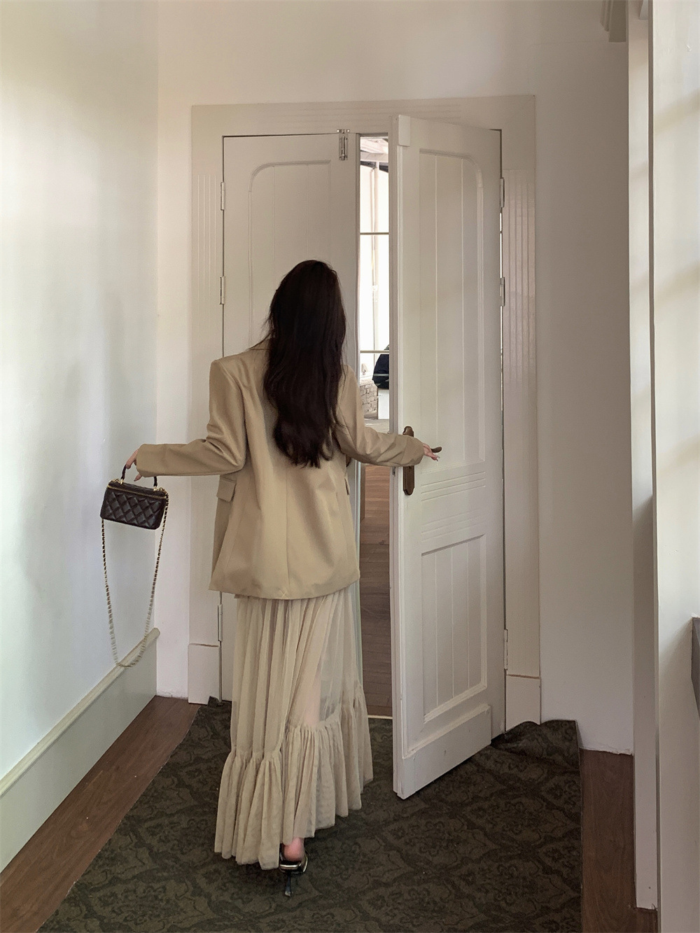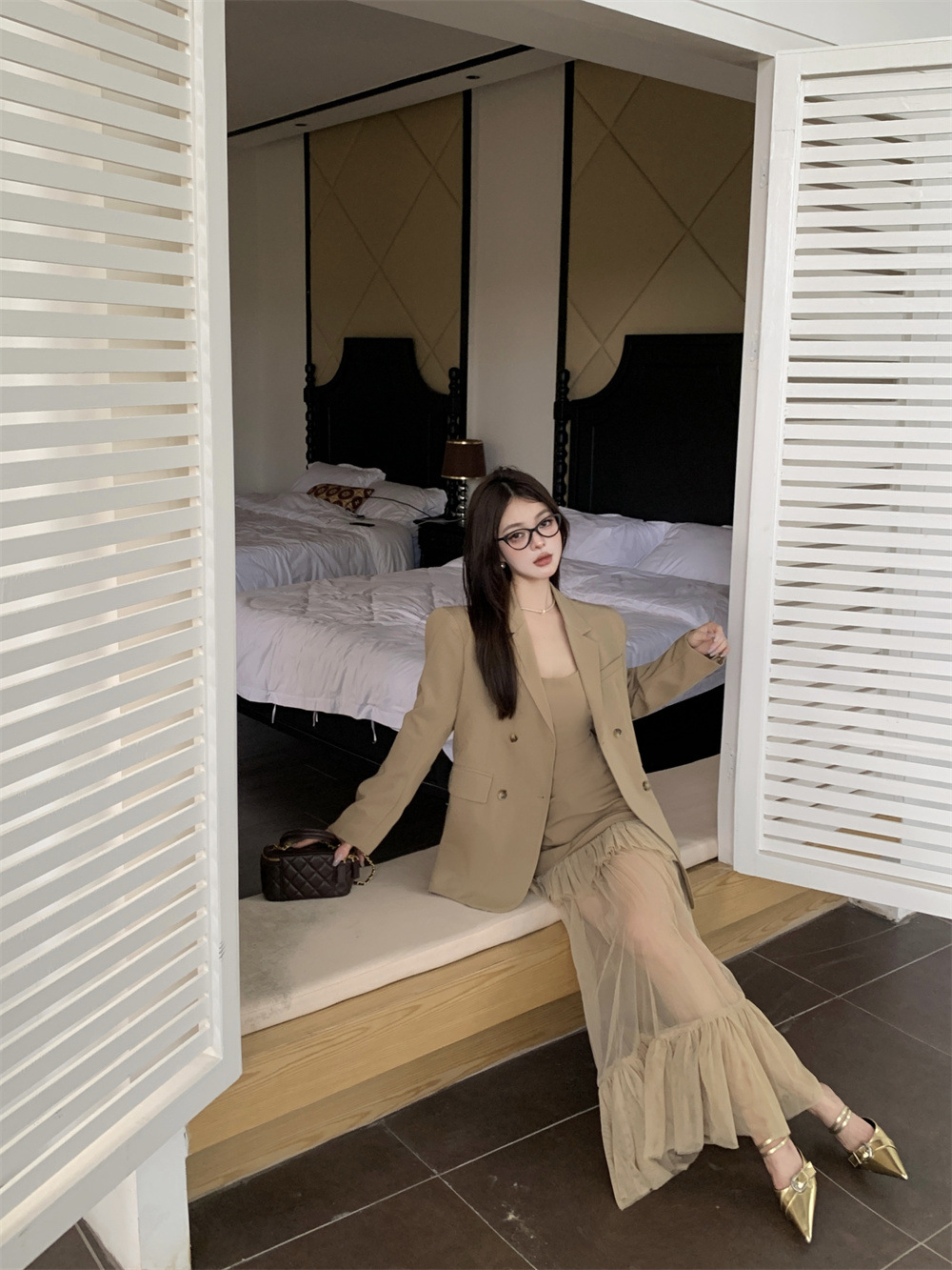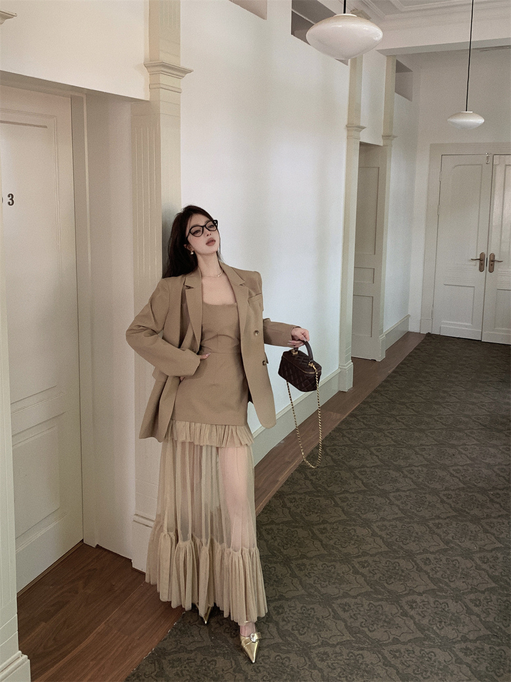 重工網紗拼接洋裝+長版西裝外套(可單買)