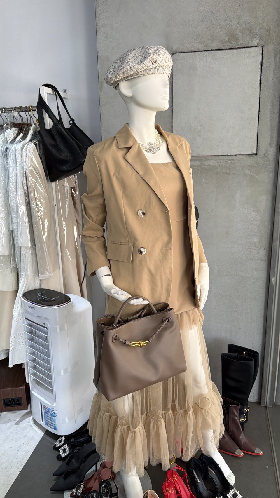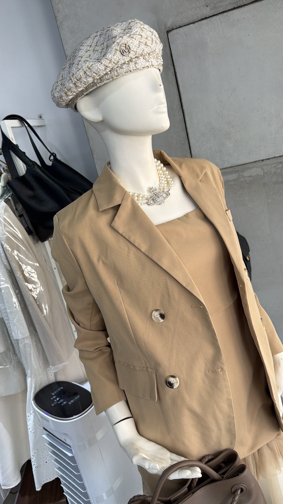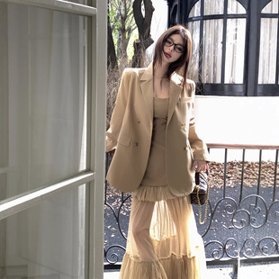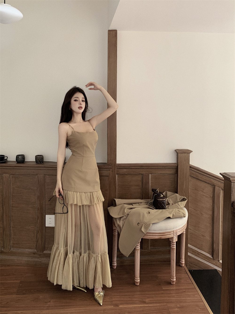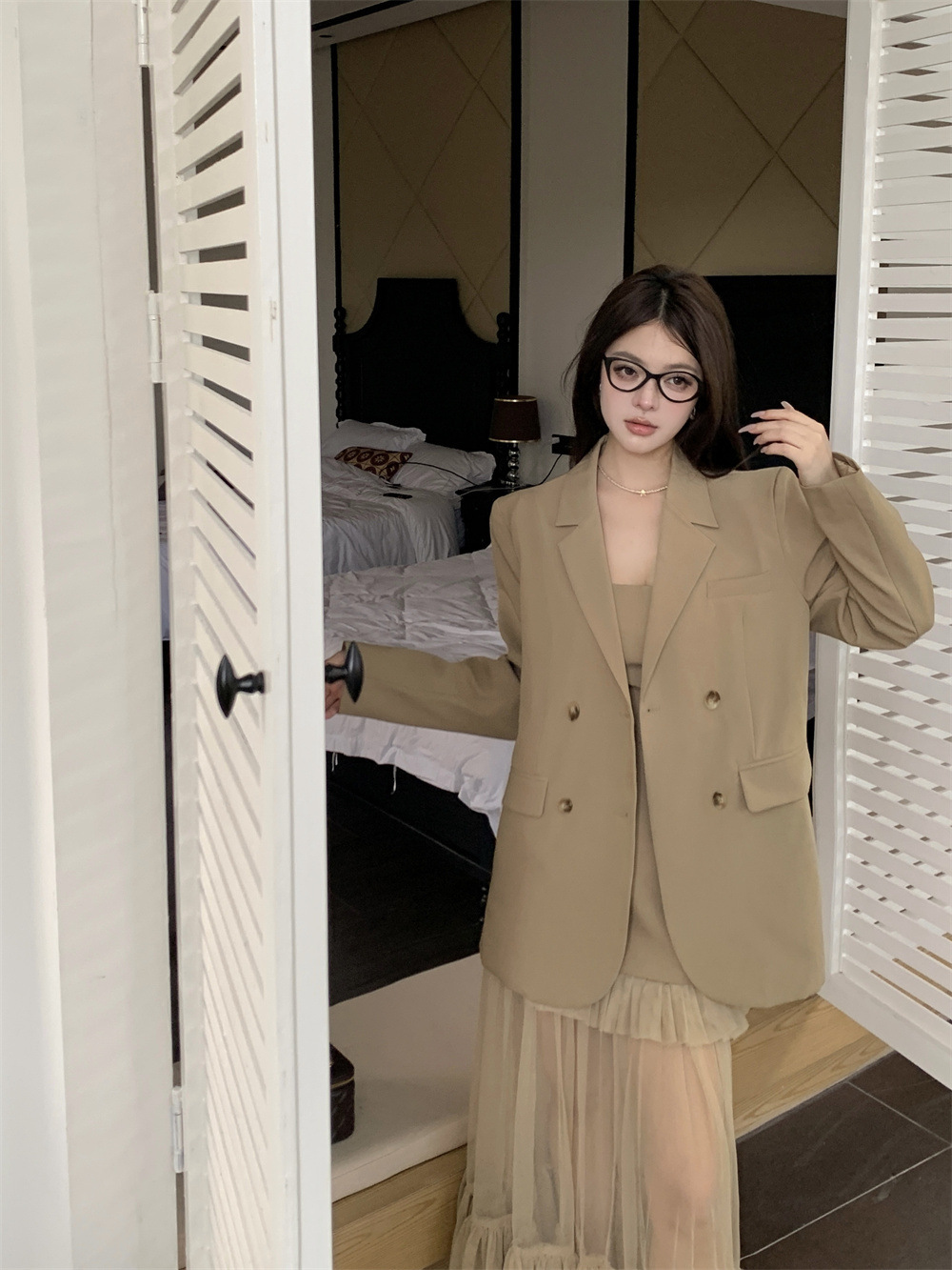 重工網紗拼接洋裝+長版西裝外套(可單買)