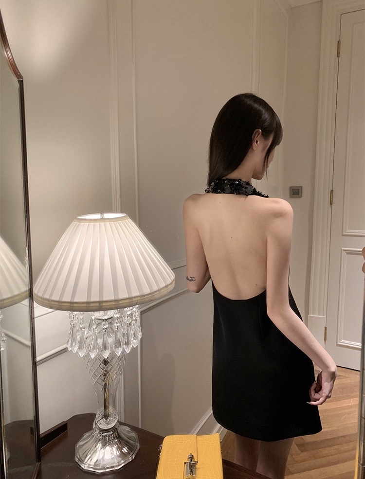 這款堆疊亮片掛脖露背毛尼洋裝蘊含了數大特色。深邃的墨黑色調,帶來時尚俐落的優雅感。精緻的亮片裝飾點綴其上,營造出細膩迷人的視覺效果。別緻的掛脖設計展現誘人的鎖骨線條,而背部深V剪裁更添性感魅力。柔軟的毛尼布料質感舒適,適合各種場合穿搭。人字紋織法增添時髦細節,讓整件洋裝更添個性風格。這件洋裝定能為妳的造型增添出眾光采。
