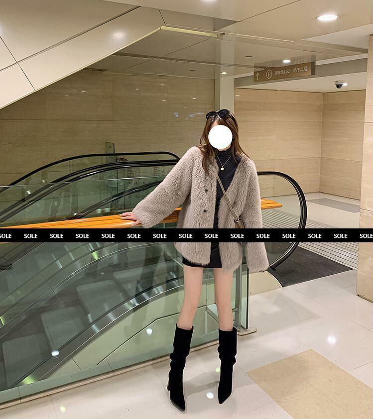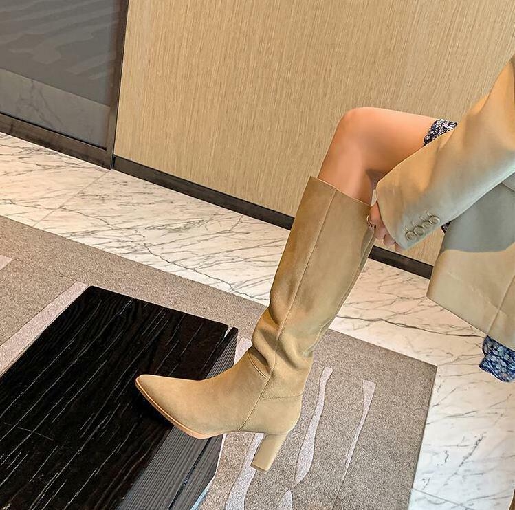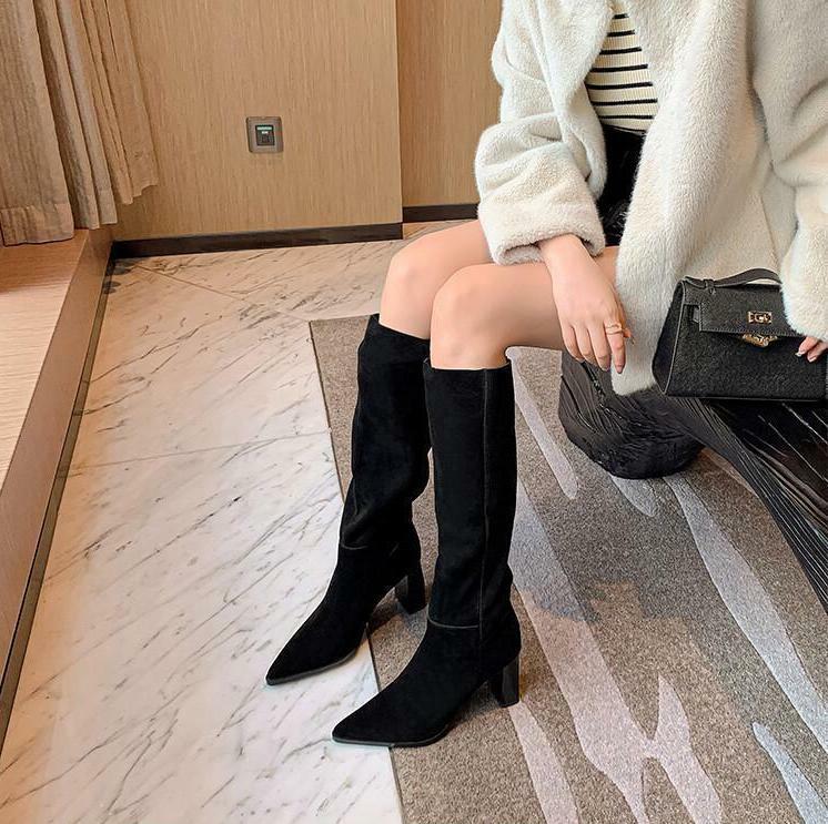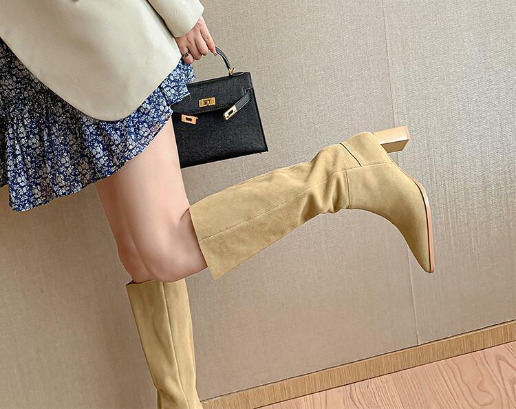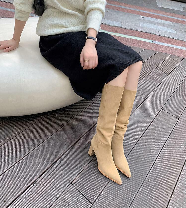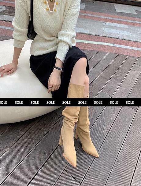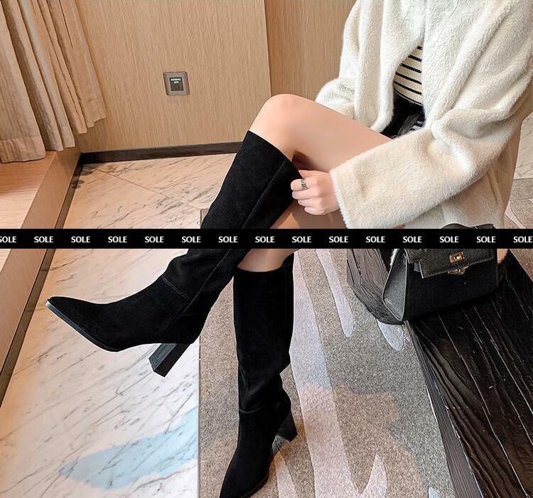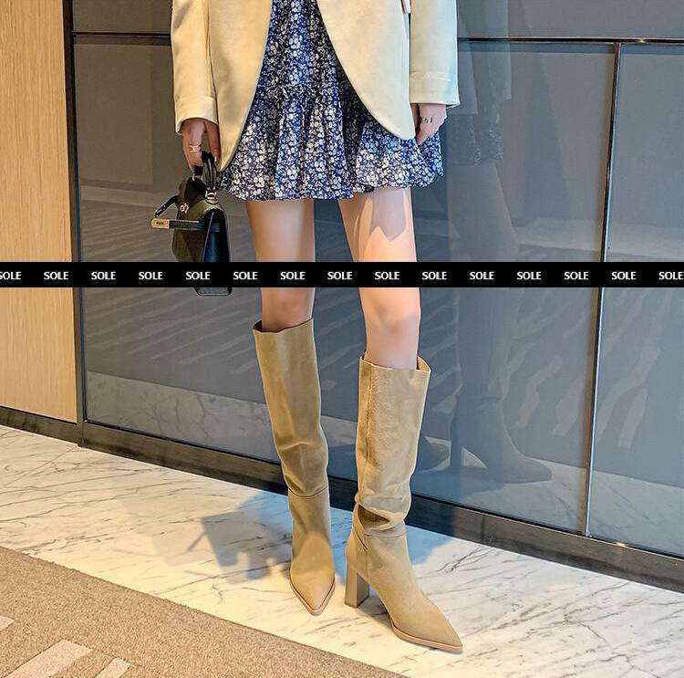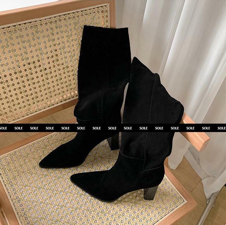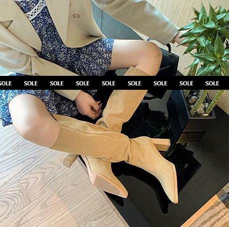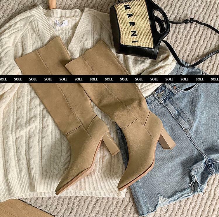 寬筒挺版粗跟長靴(35-39)(黑/杏)