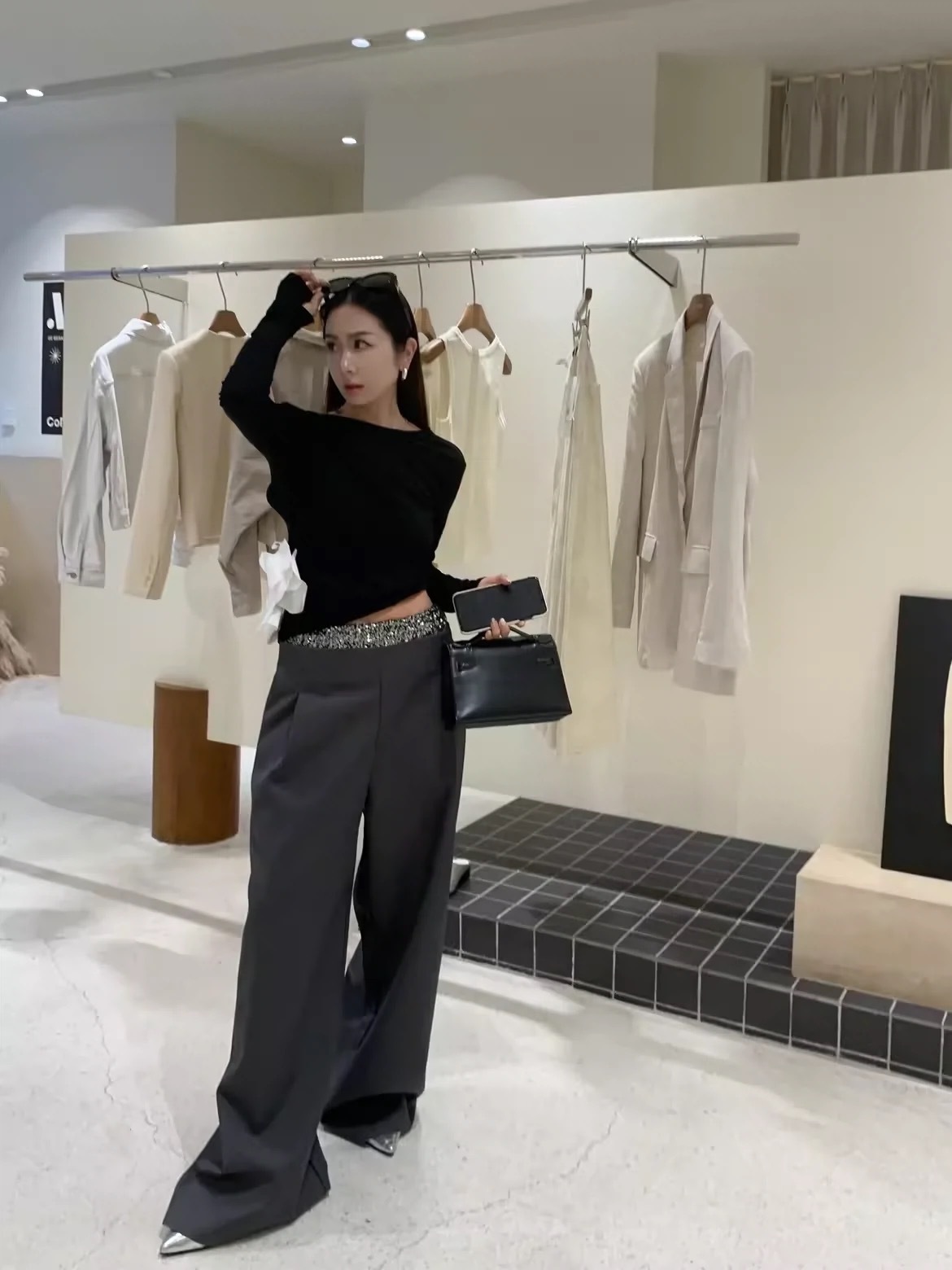 方形鑲鑽 流蘇耳飾 (925銀針)