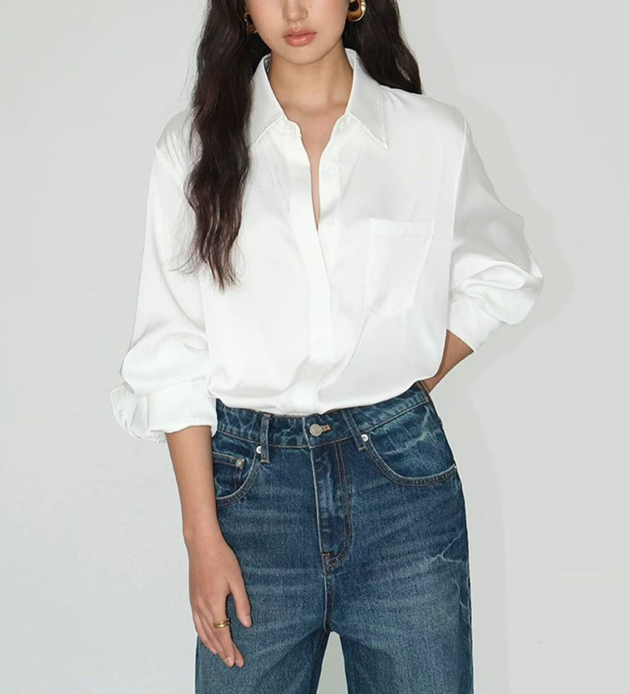 綢緞翻領百搭襯衫