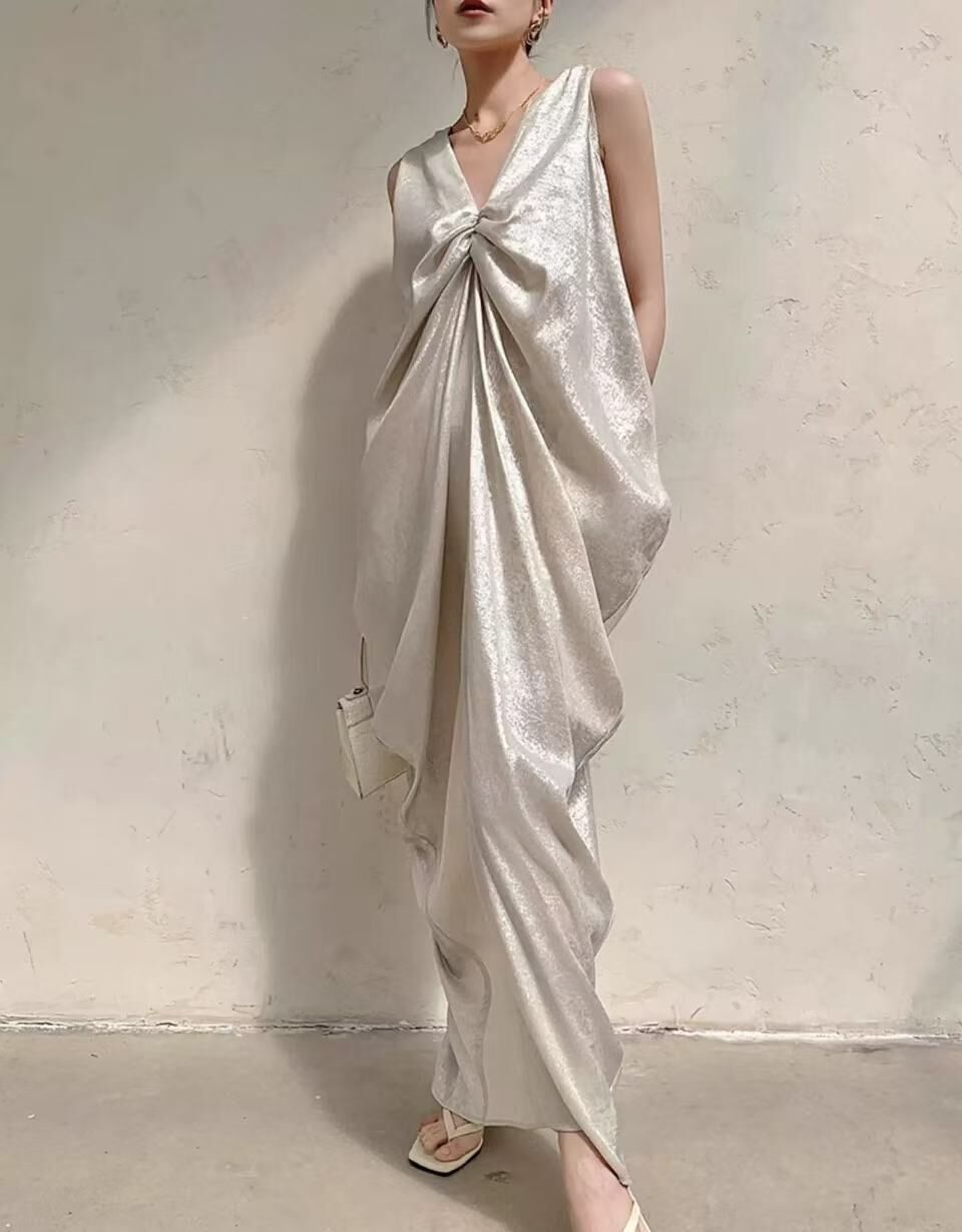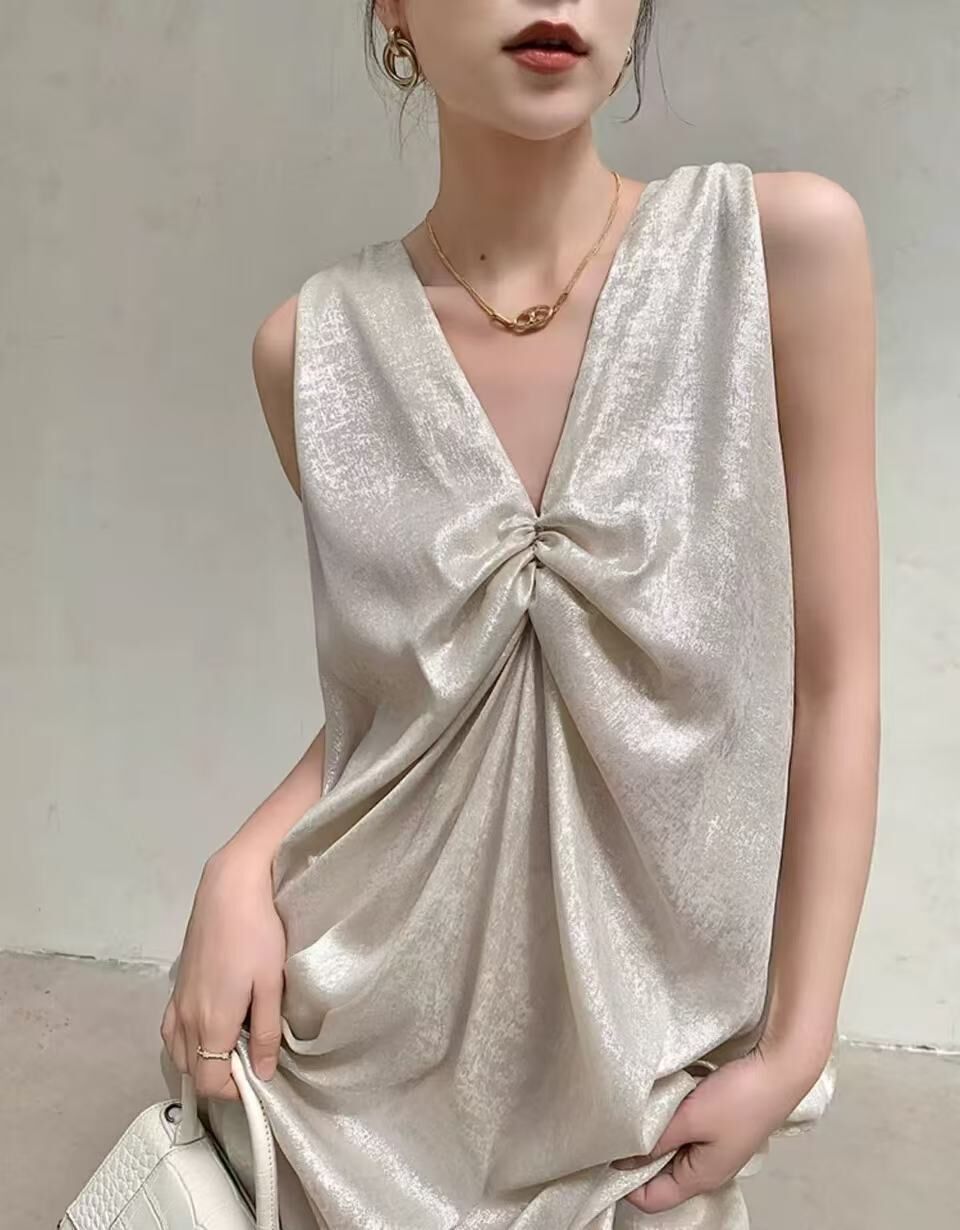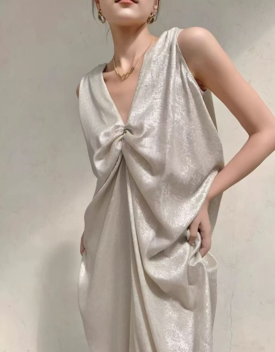 特殊光澤面料 V領寬鬆長洋
