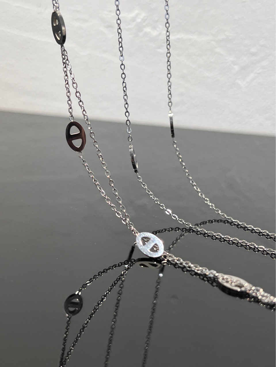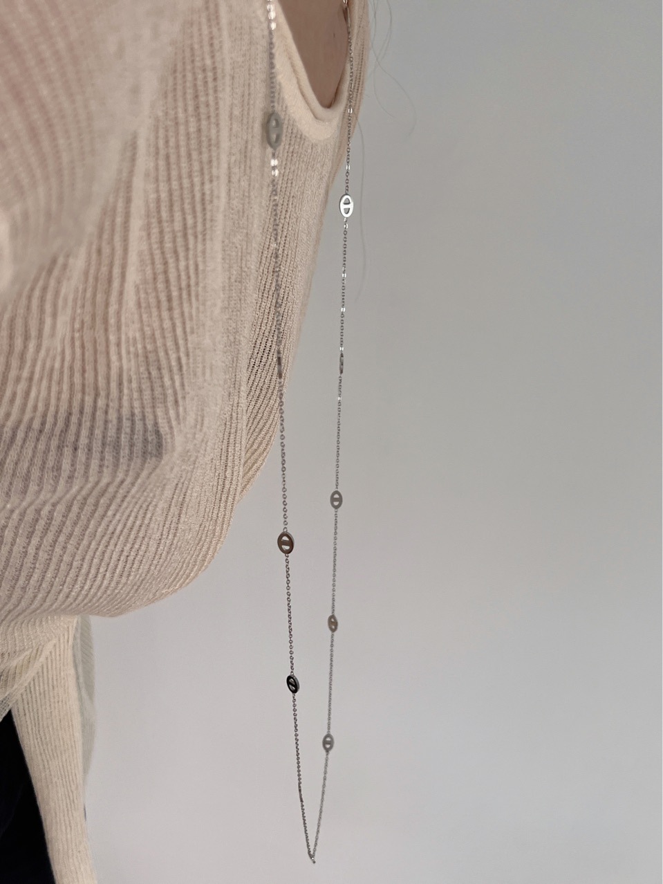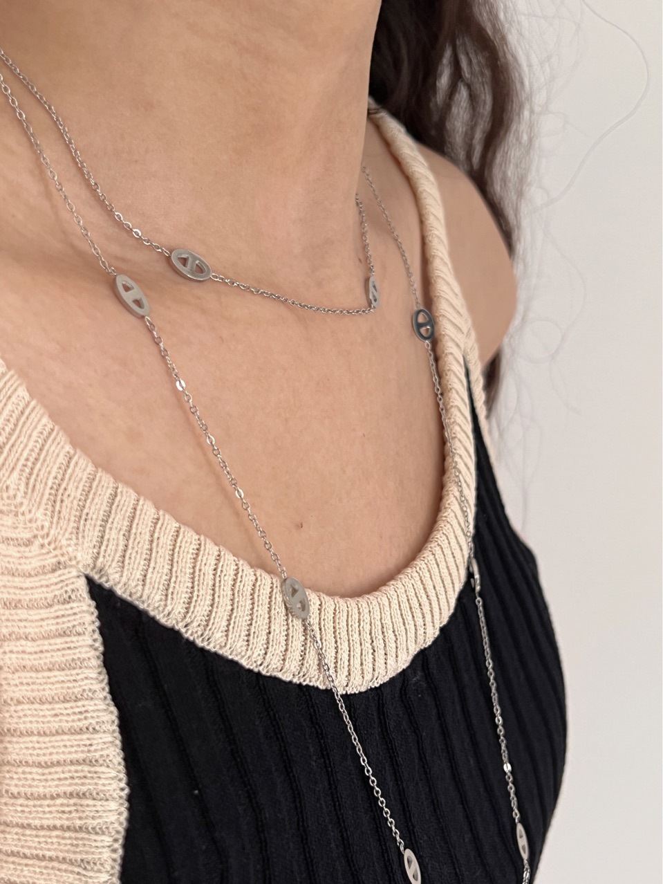首飾散發獨特沉穩的復古魅力,采用精緻鈦鋼材質打造,質感細膩動人。簡潔流暢的豬鼻子設計,別具個性。長長的鏈條設計,方便搭配搭配多款服飾呈現不同風格。金銀兩款任您挑選,盡顯時尚品味。