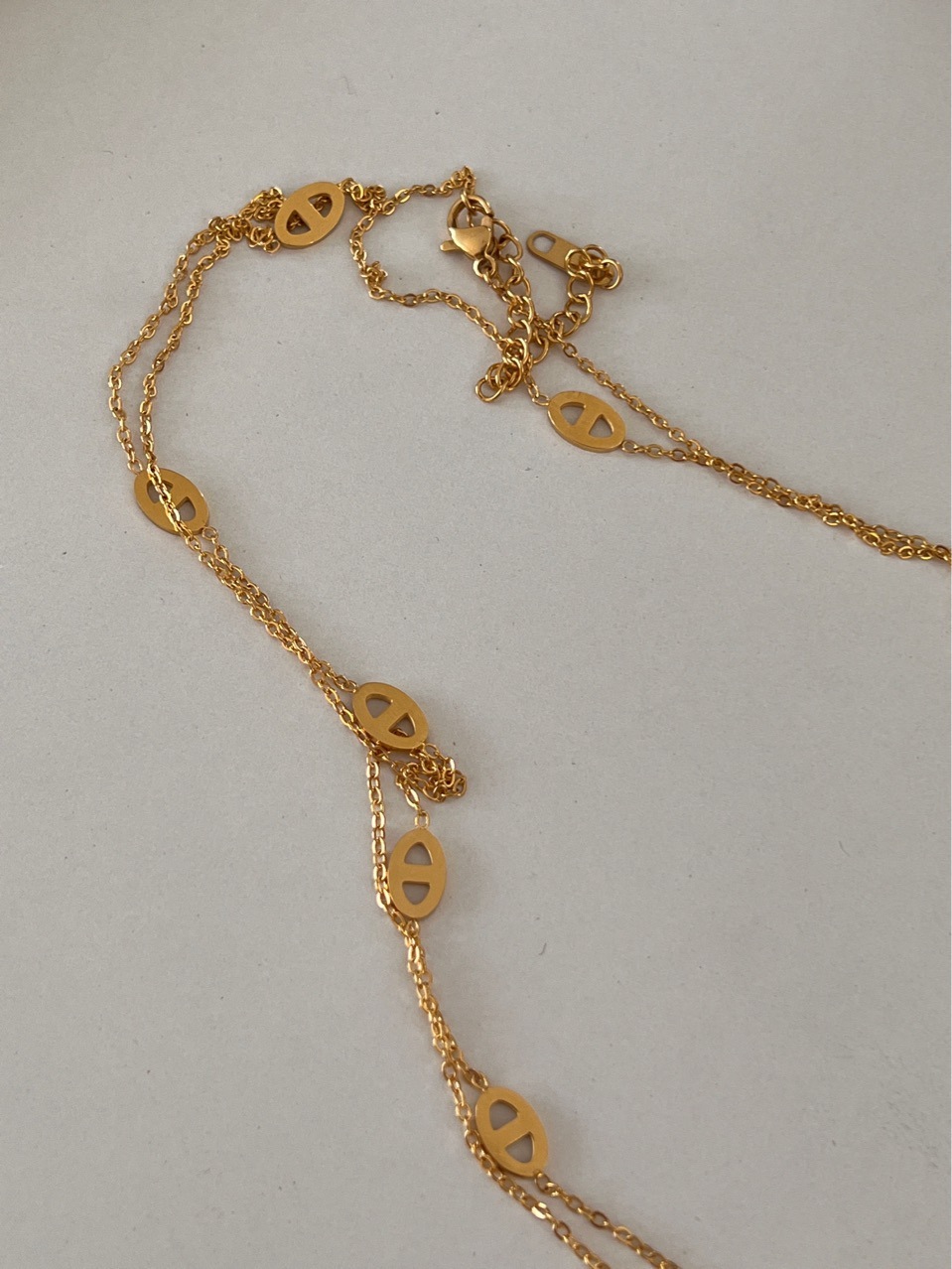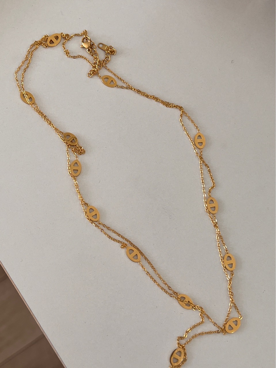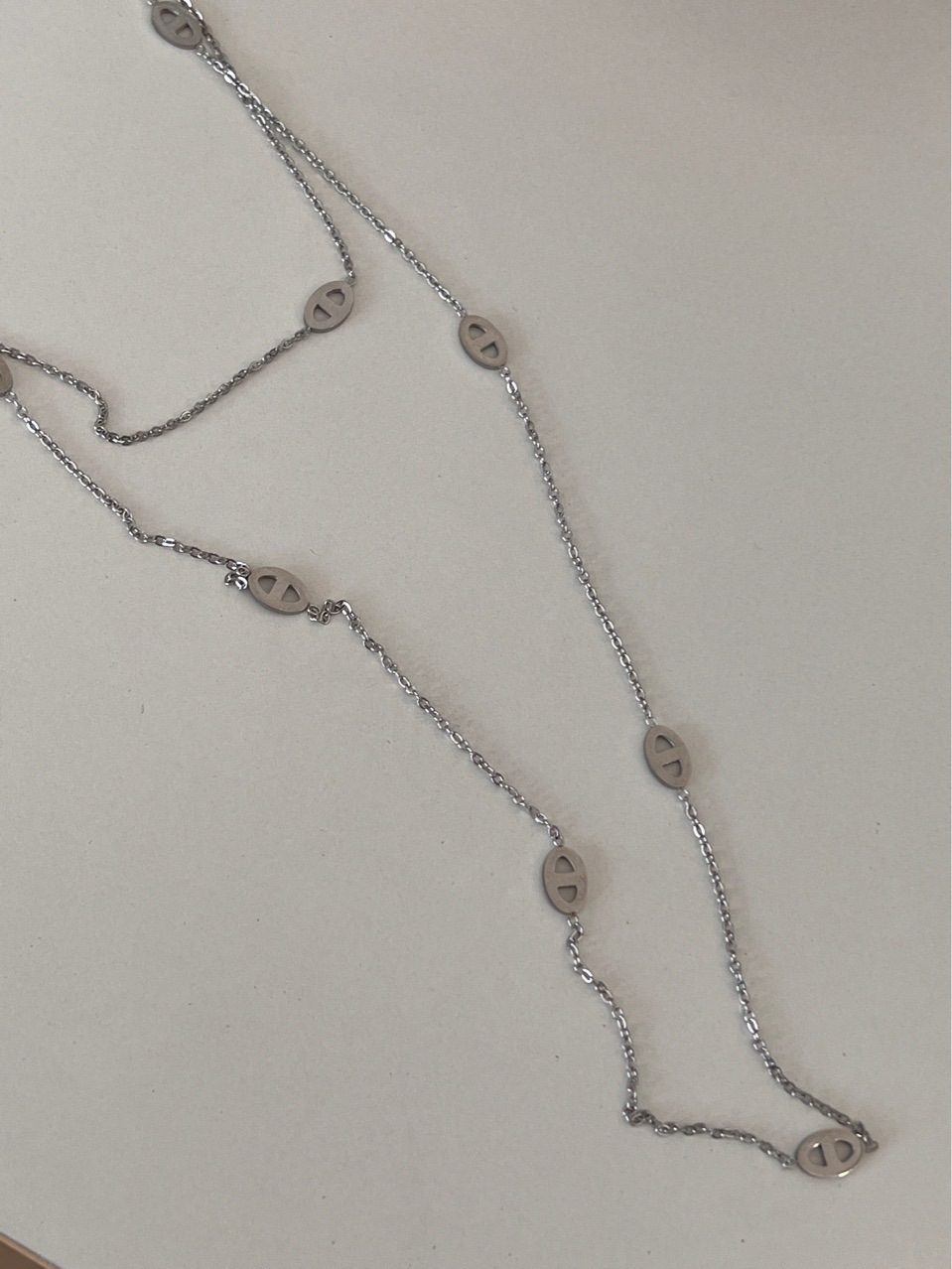 首飾散發獨特沉穩的復古魅力,采用精緻鈦鋼材質打造,質感細膩動人。簡潔流暢的豬鼻子設計,別具個性。長長的鏈條設計,方便搭配搭配多款服飾呈現不同風格。金銀兩款任您挑選,盡顯時尚品味。