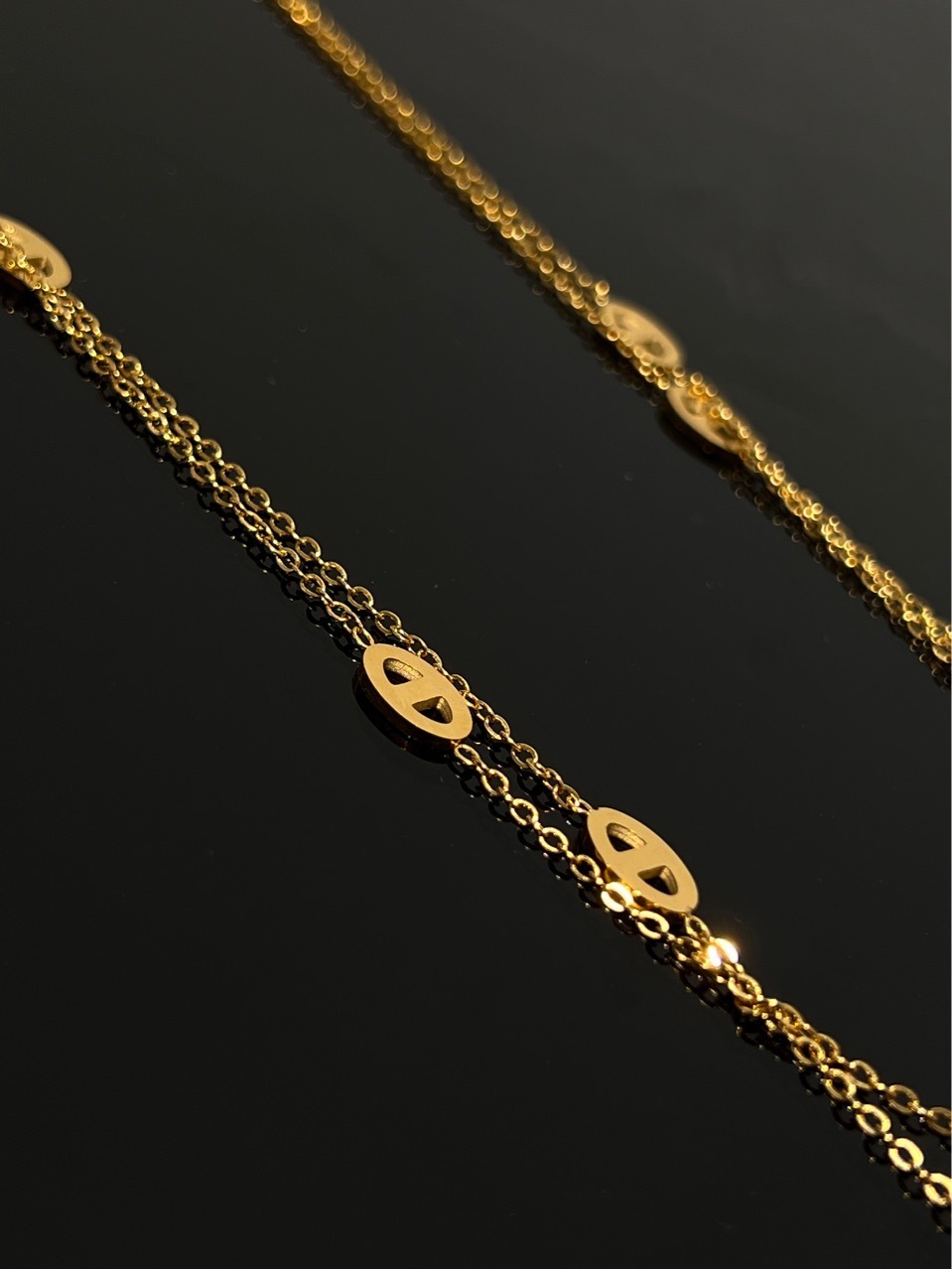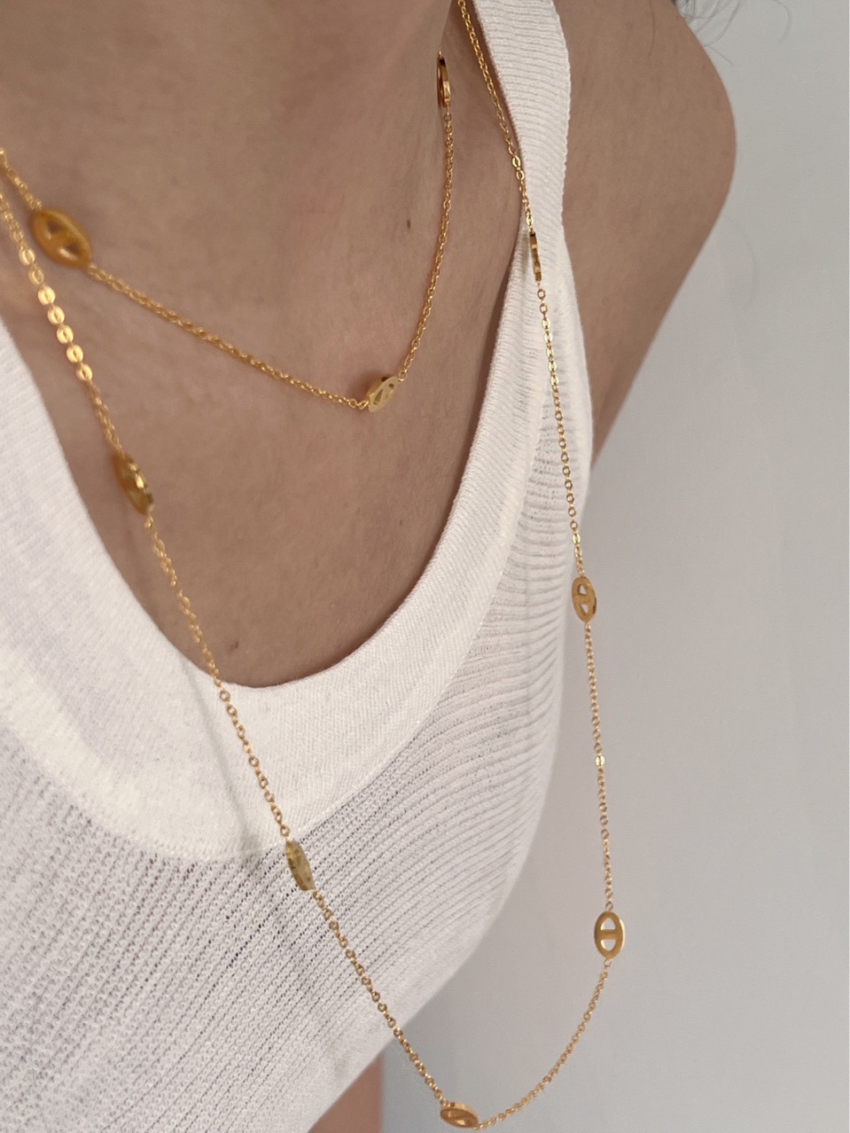 質感老錢風 鈦鋼豬鼻子長鏈(金/銀)