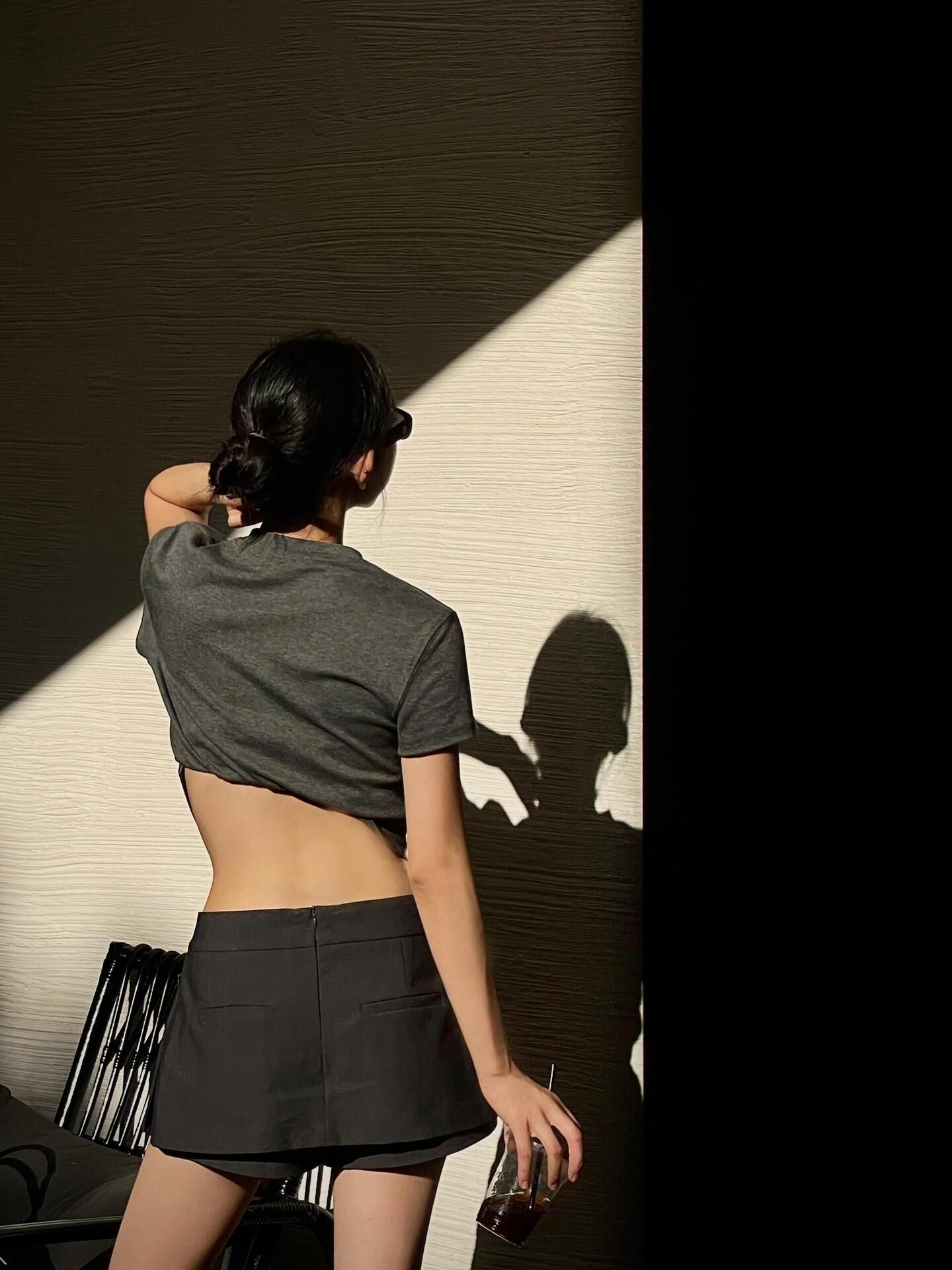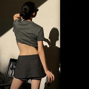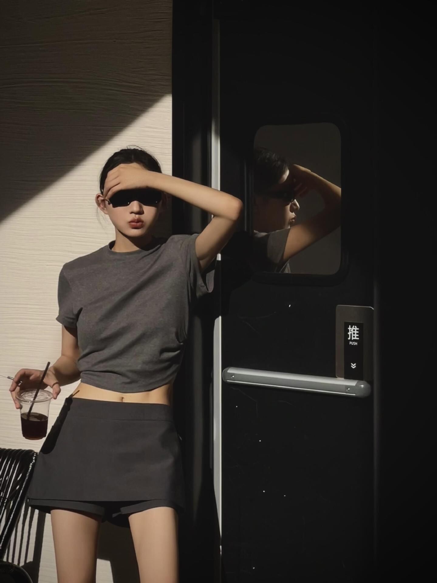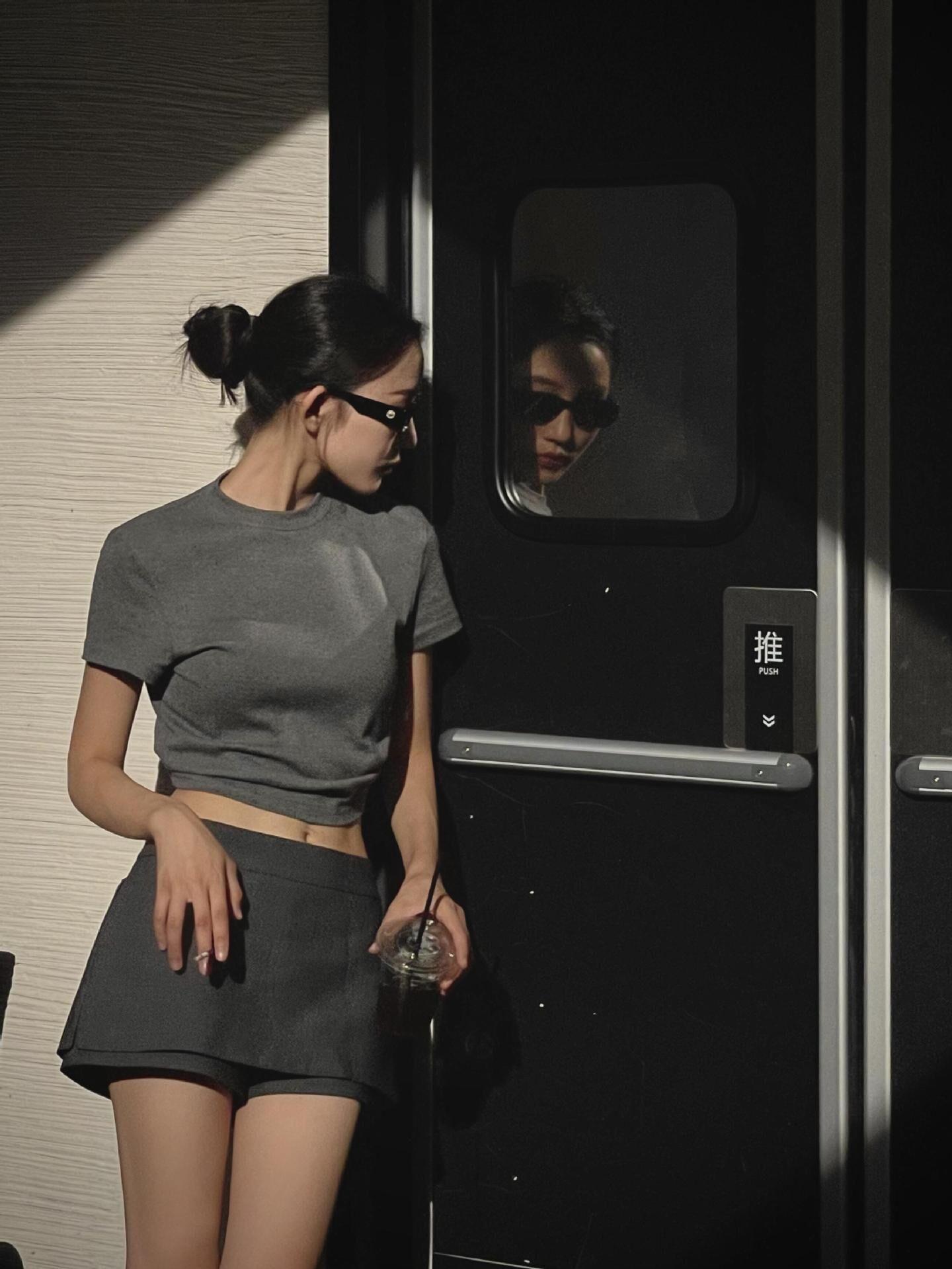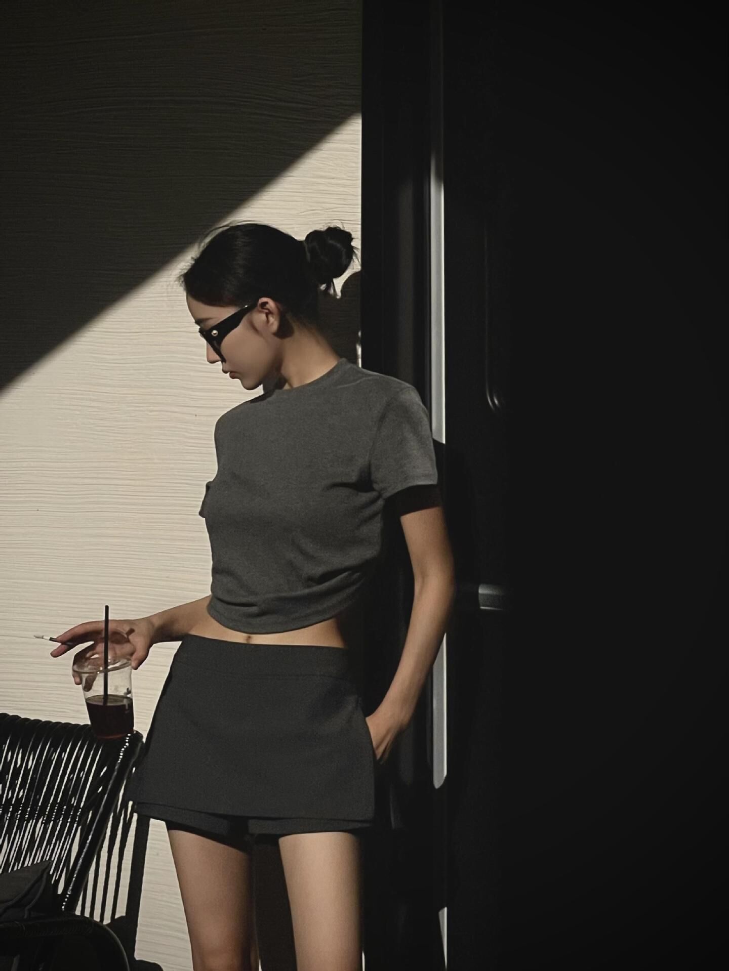 中性辣妹 灰色T-SHIRT+高腰褲裙(2件組)