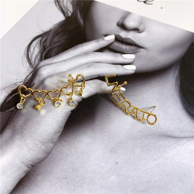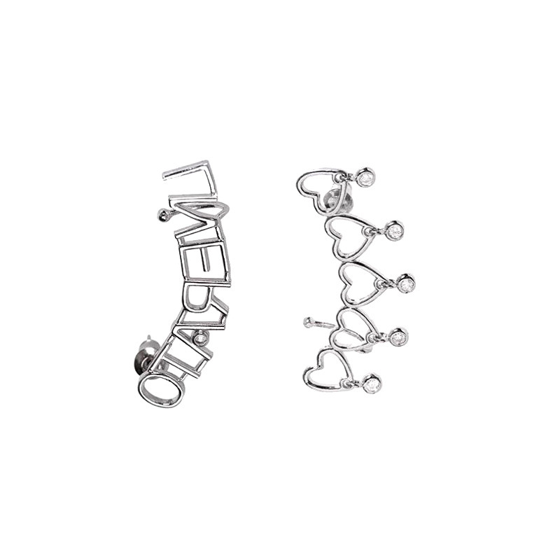 愛心鑲鑽不對稱耳針/耳夾