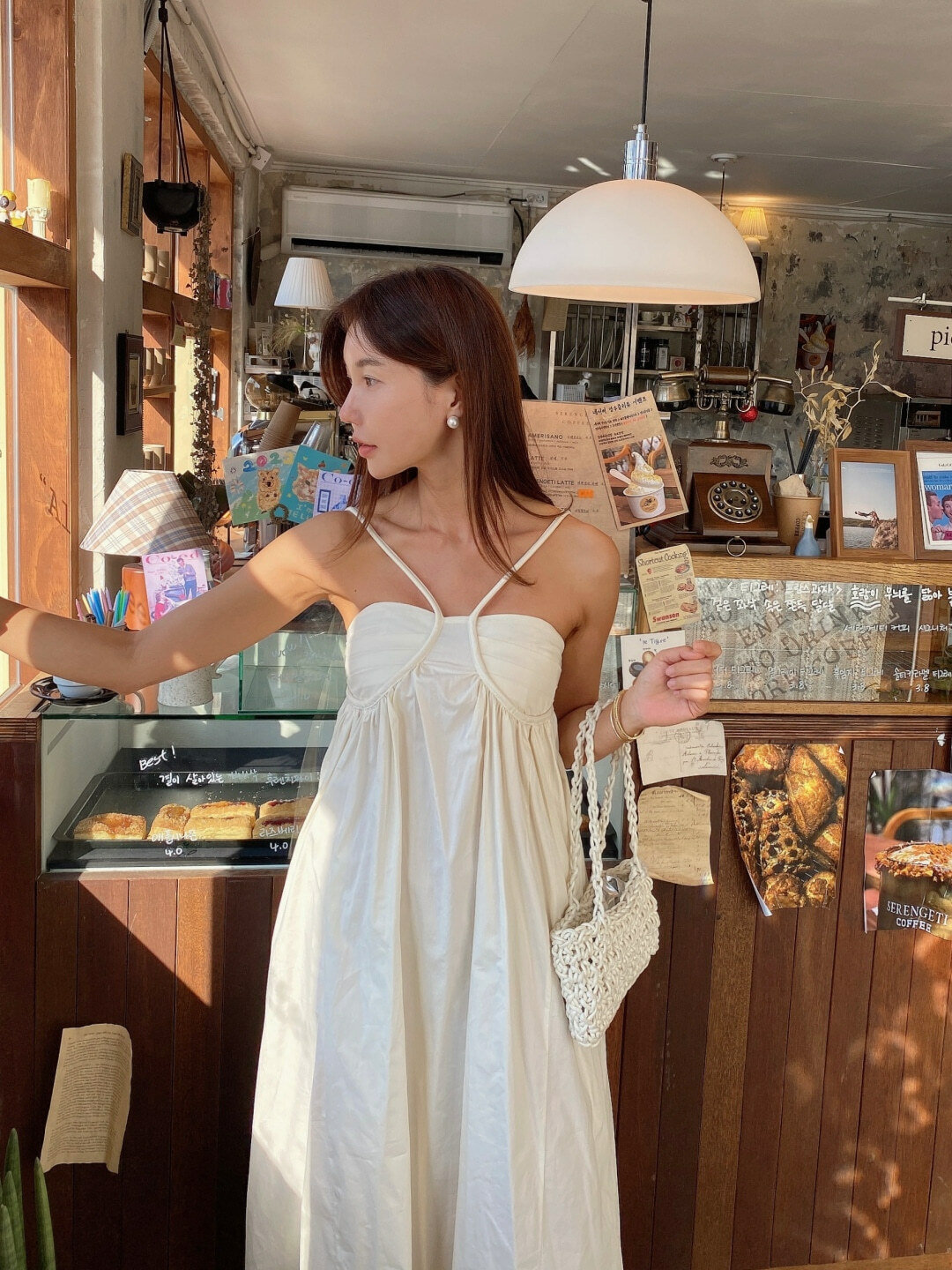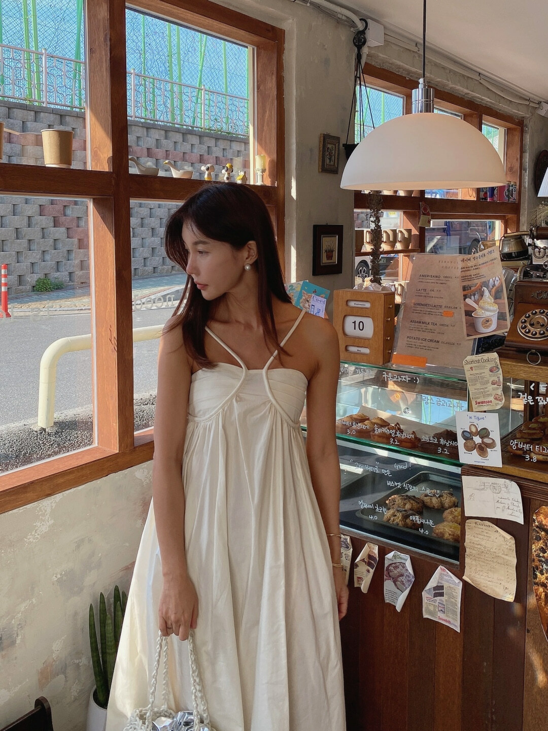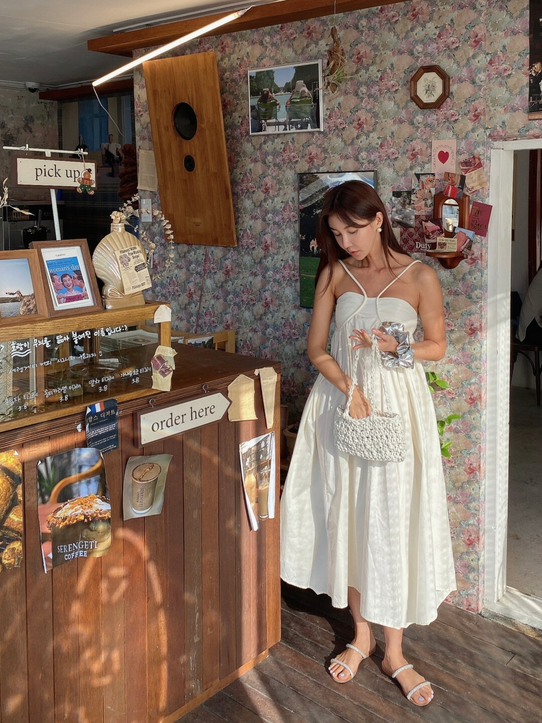 這件白色洋裝採用優質棉麻面料,隨性又優雅。精巧的蝴蝶結點綴在領口,增添甜美可人的氛圍。靈活的吊帶設計,突出修身曲線,給人清新自然的風格。適合多種場合穿搭,無論是休閒小旅行或是閨蜜小聚都能輕鬆駕馭。此款設計追隨東京街頭潮流,散發時尚感又不失質樸韻味,絕對是夏日必備單品。
