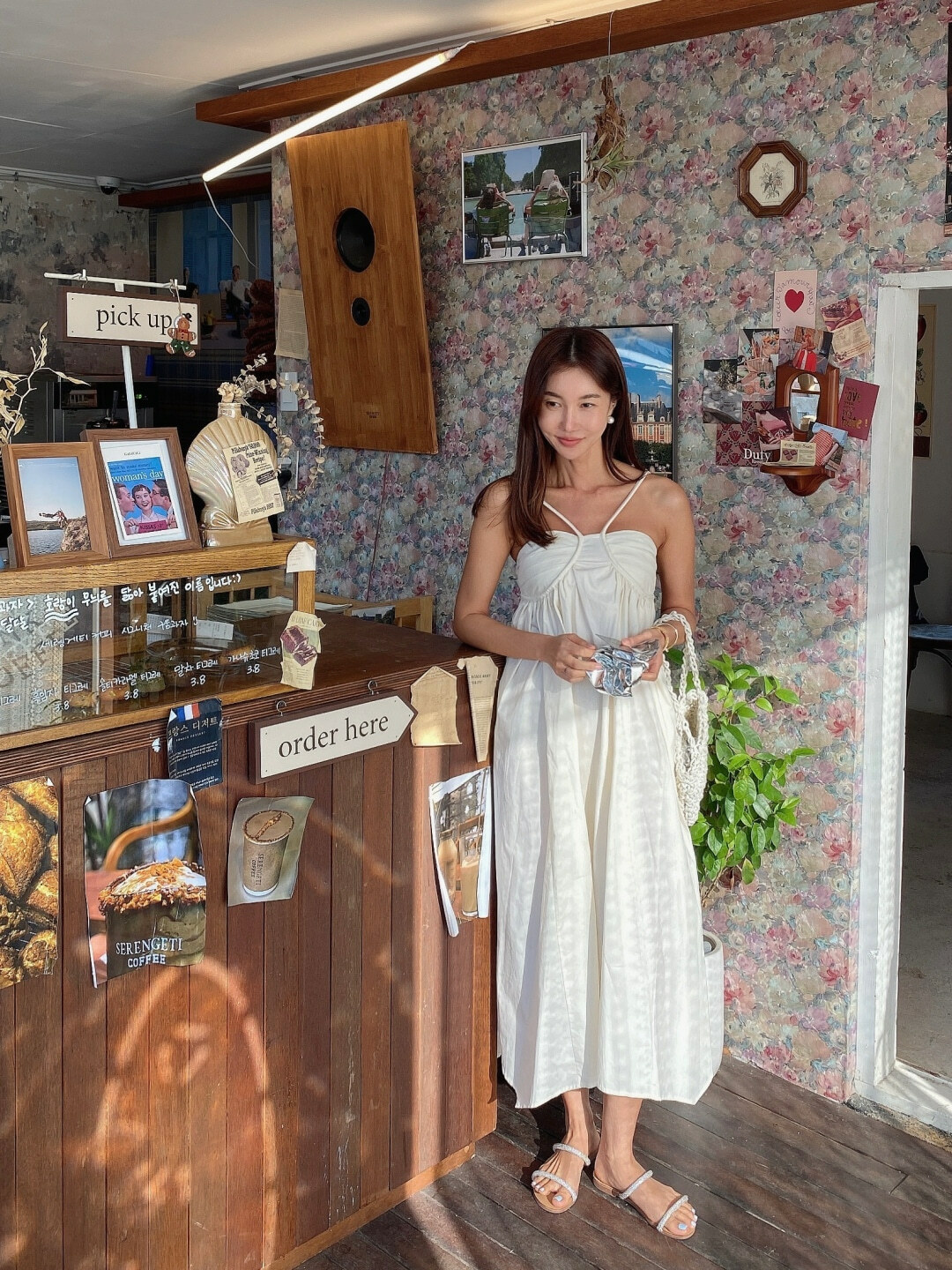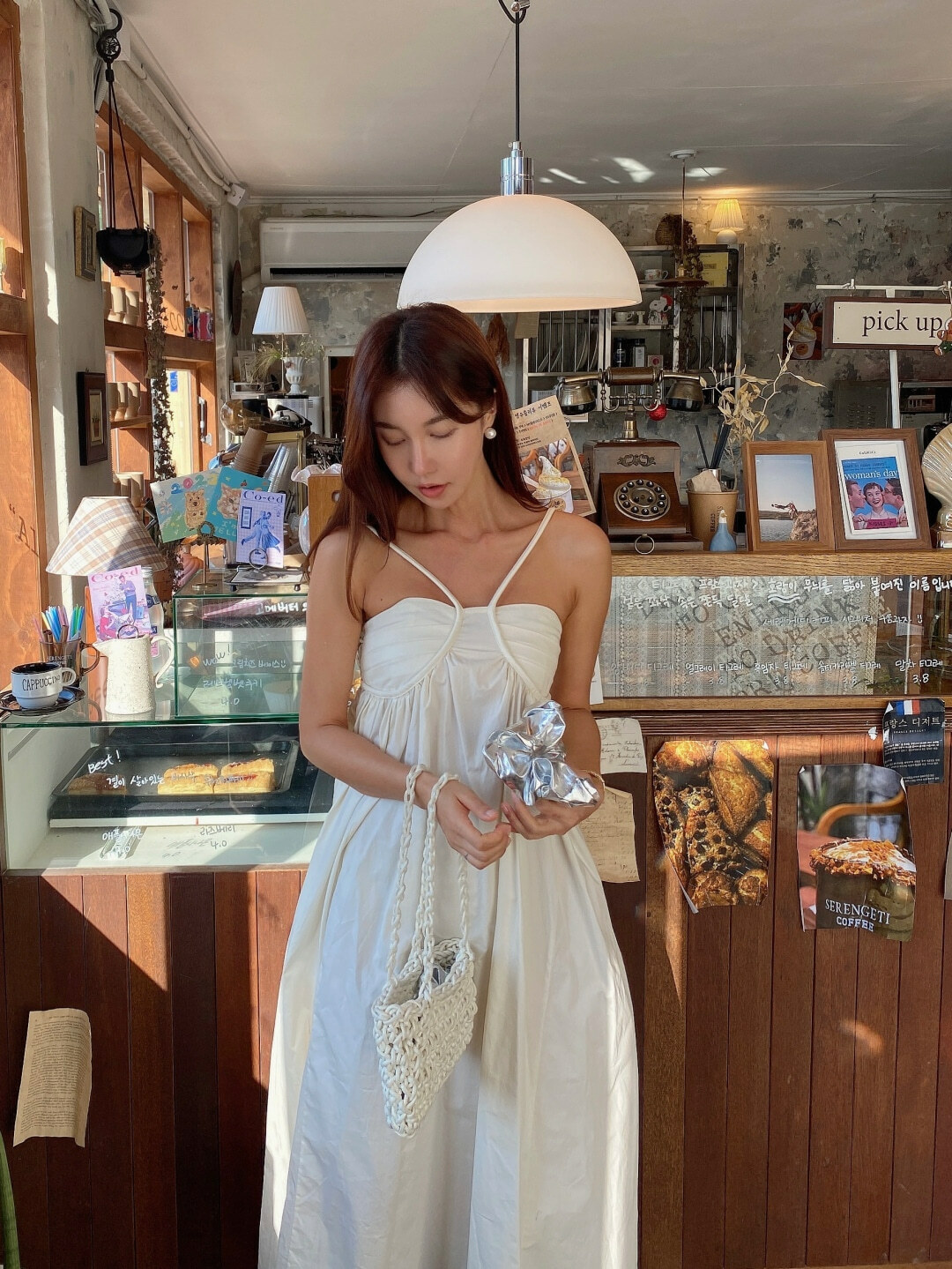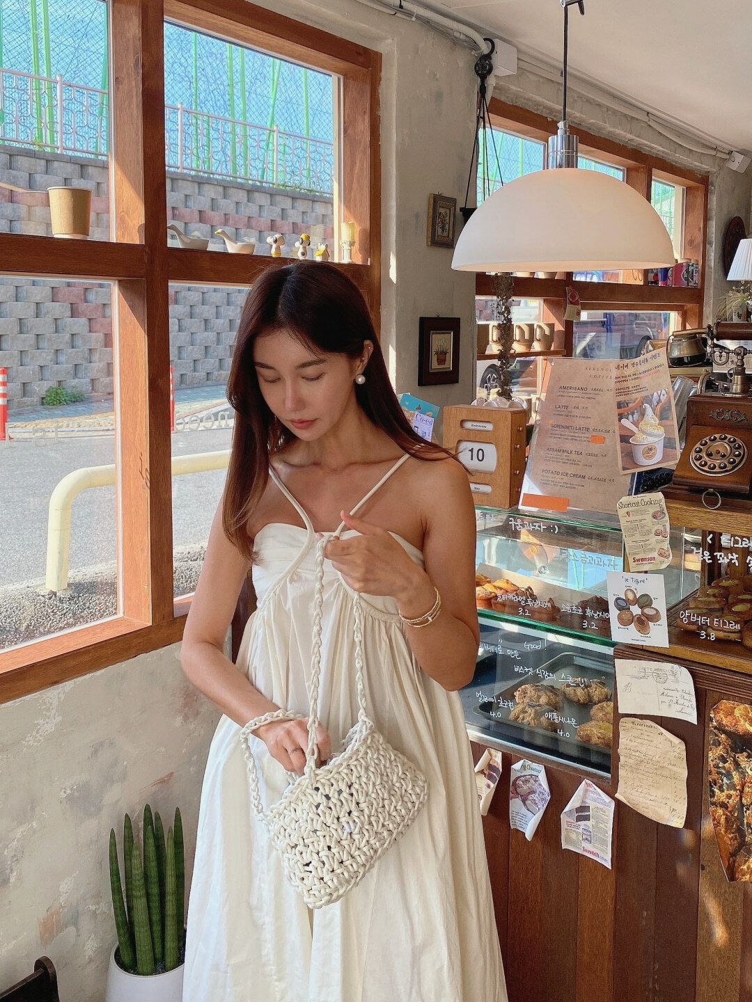 這件白色洋裝採用優質棉麻面料,隨性又優雅。精巧的蝴蝶結點綴在領口,增添甜美可人的氛圍。靈活的吊帶設計,突出修身曲線,給人清新自然的風格。適合多種場合穿搭,無論是休閒小旅行或是閨蜜小聚都能輕鬆駕馭。此款設計追隨東京街頭潮流,散發時尚感又不失質樸韻味,絕對是夏日必備單品。