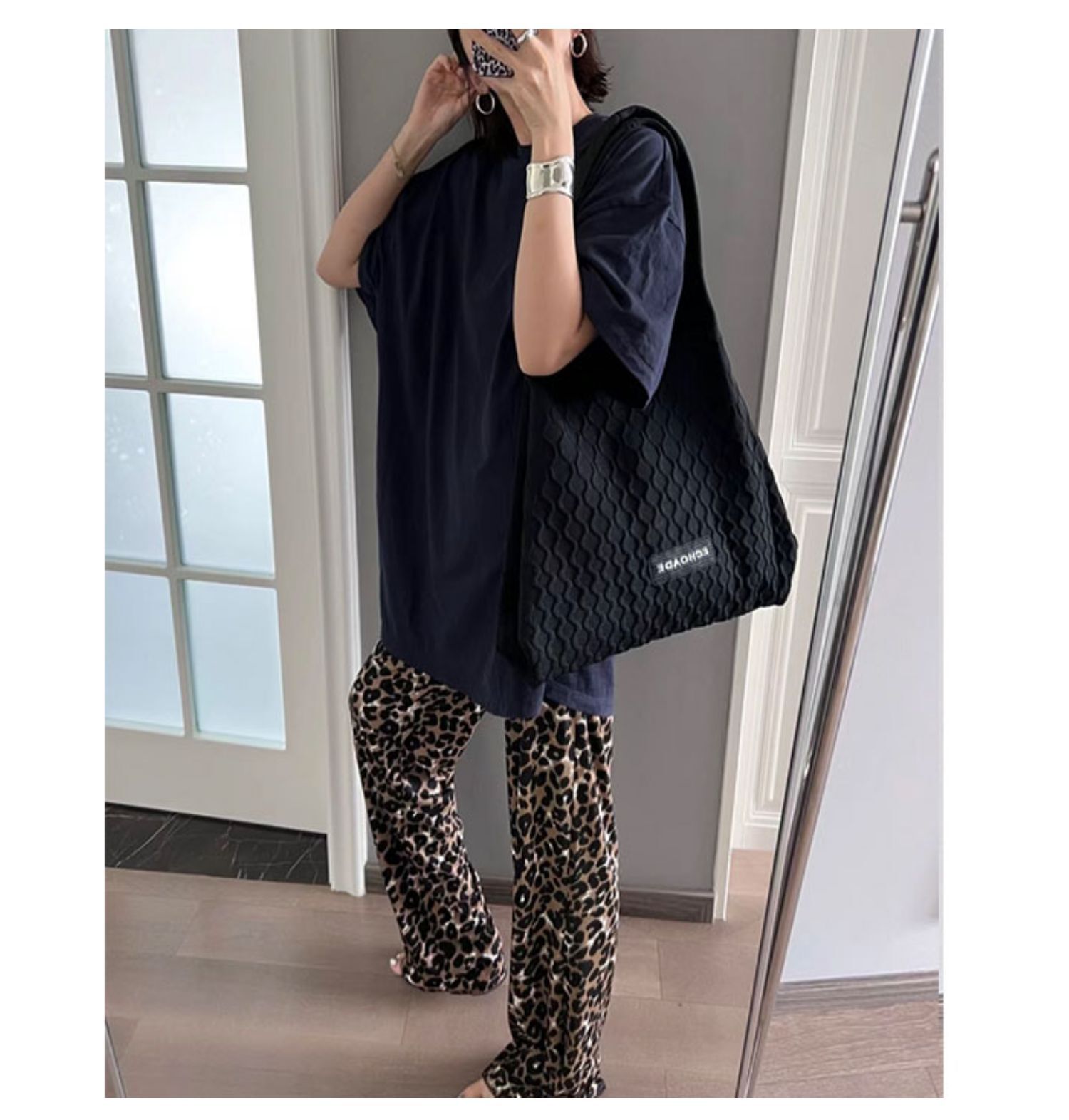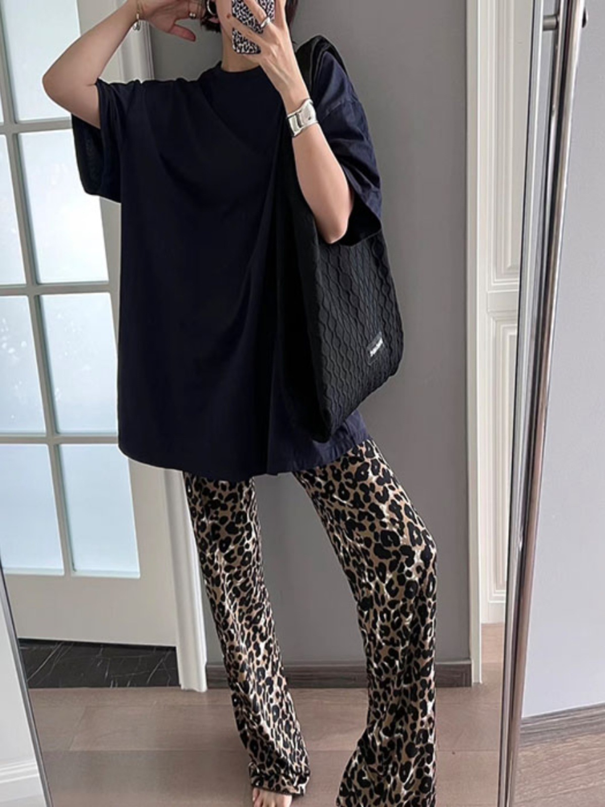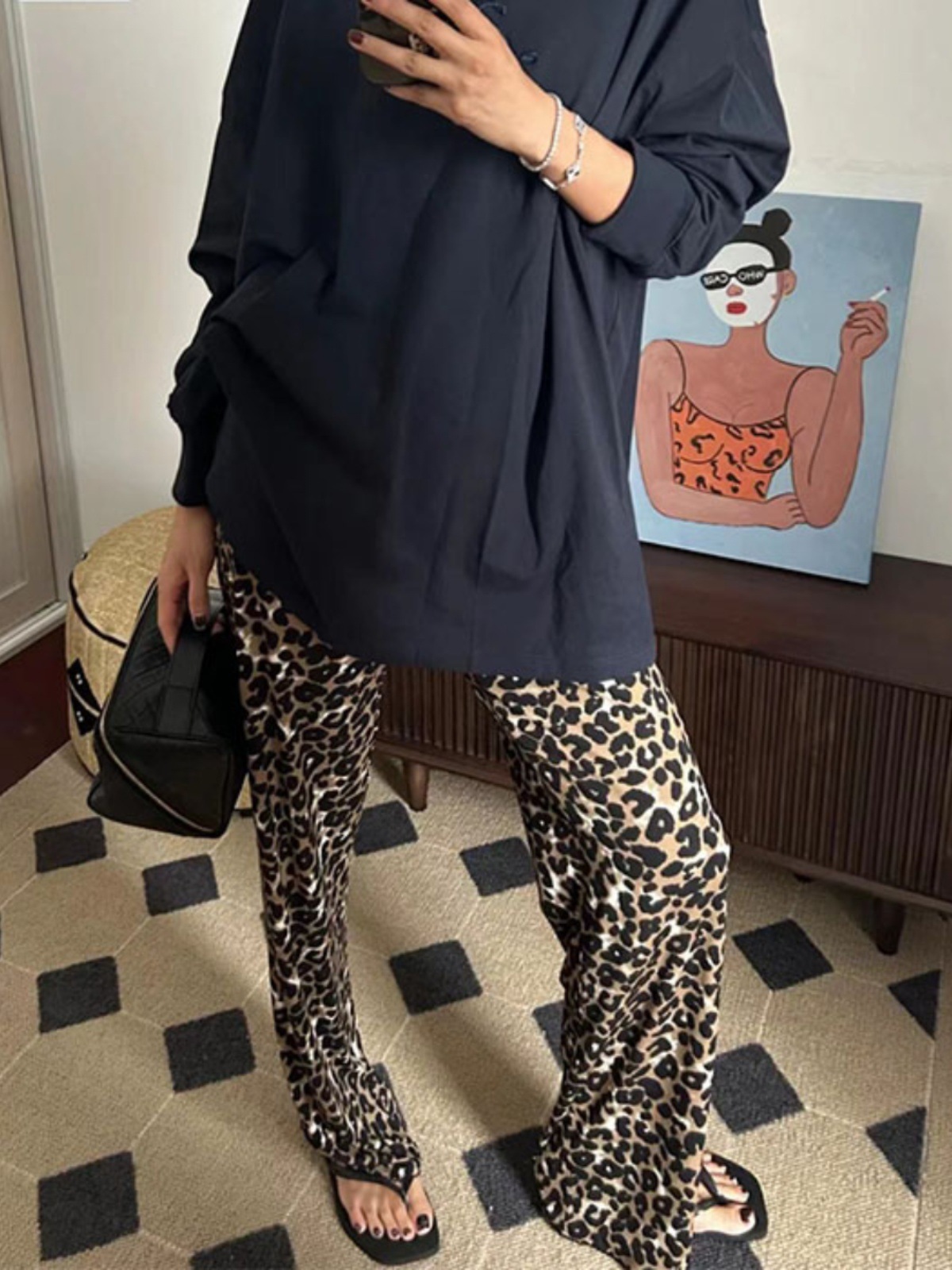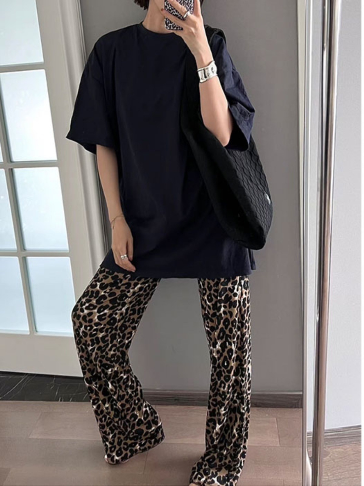 慵懶時髦 輕薄豹紋寬管褲
