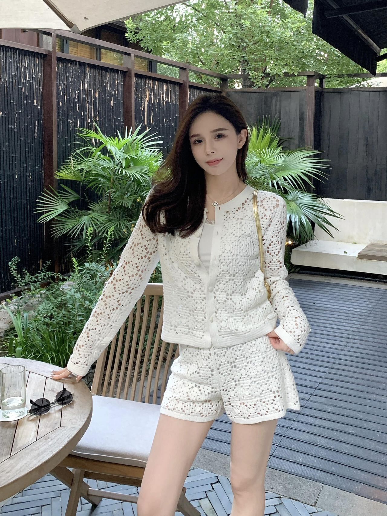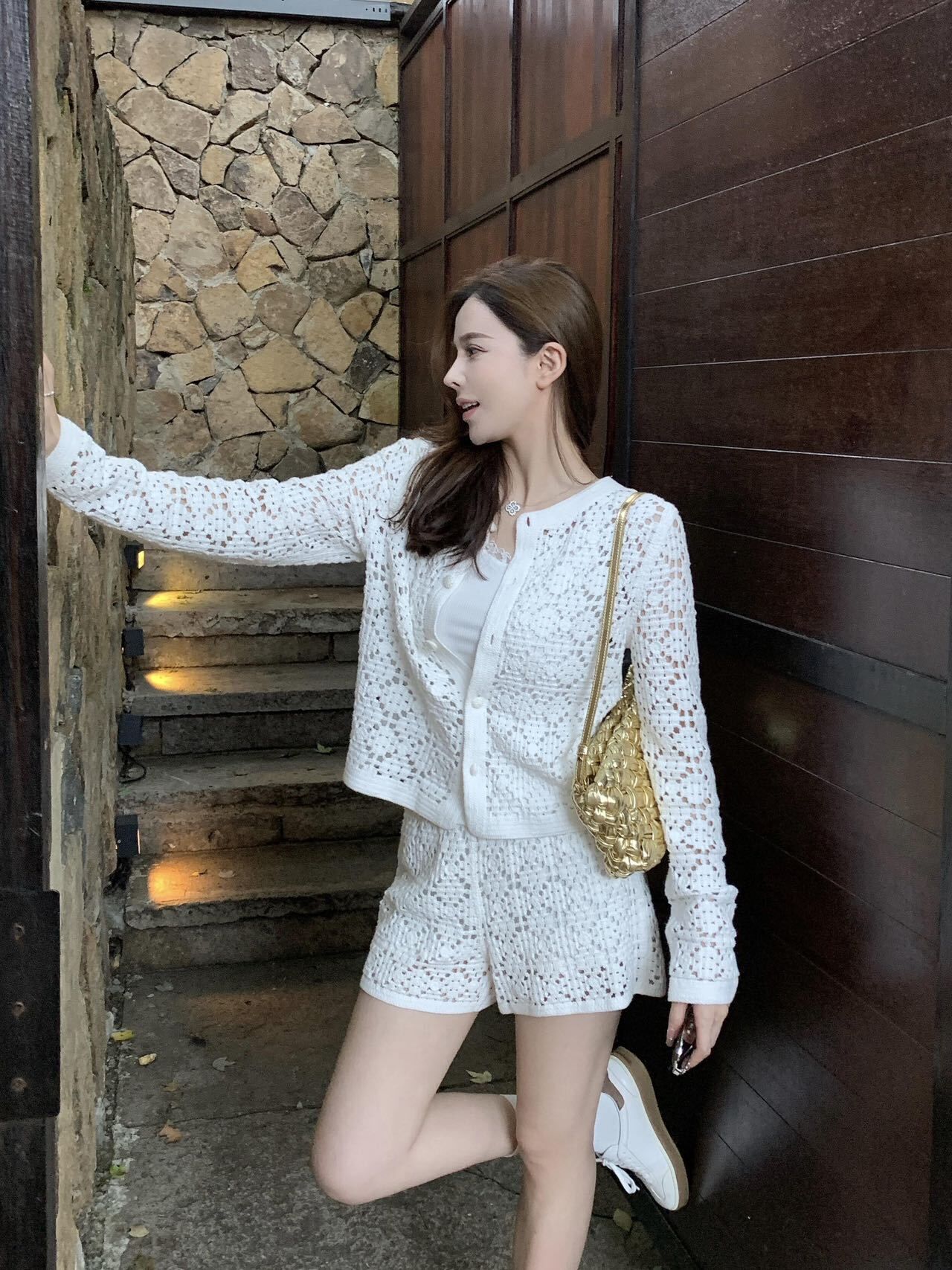 千金穿搭 簍空針織上衣+短褲(2件組)