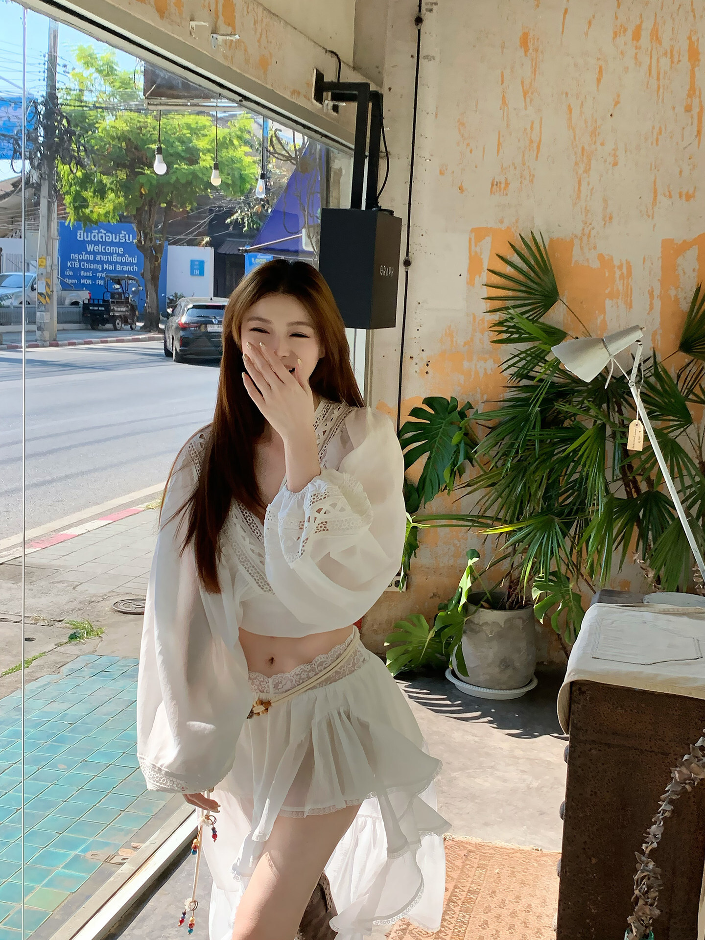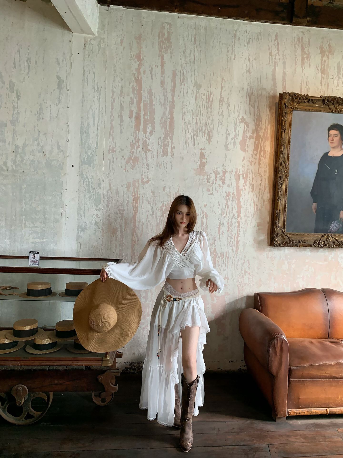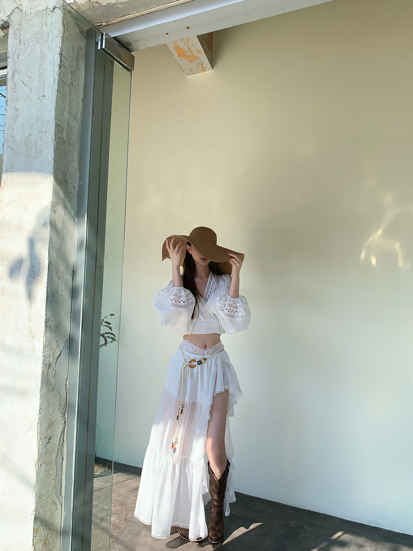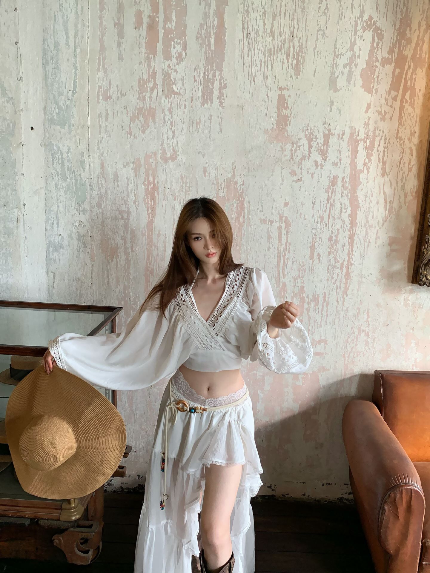 性感波西米亞風 V領蕾絲+高腰裙(2件組)