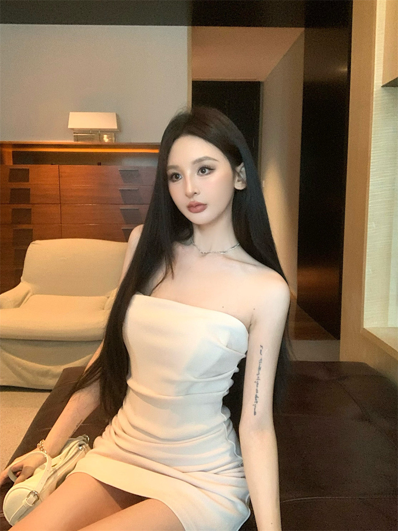 休閒小辣妹 魚骨平口洋裝(咖/奶杏)