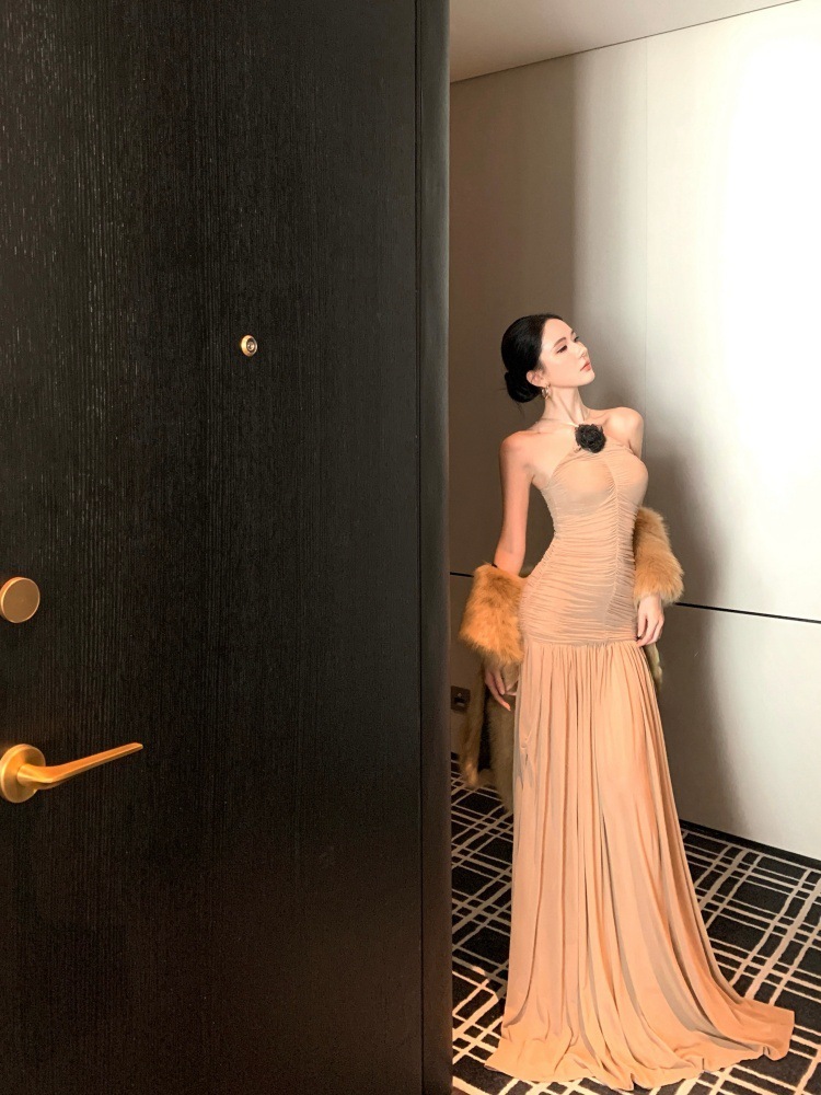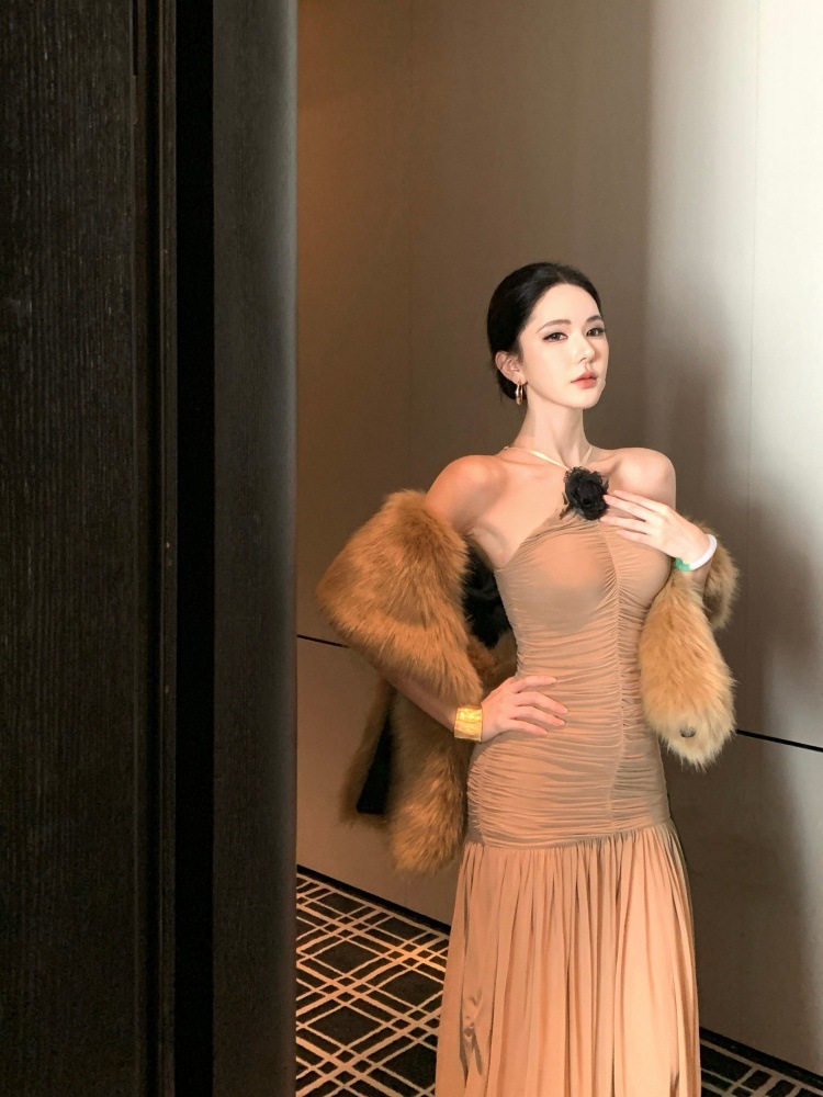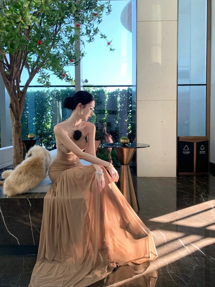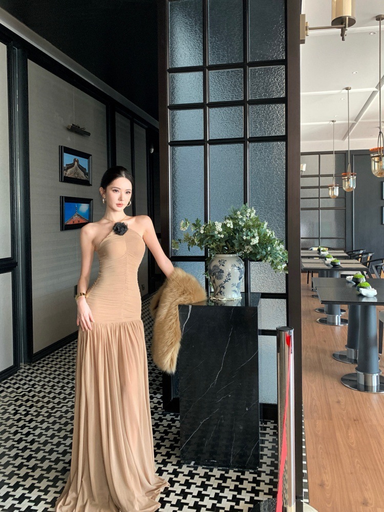 高雅名媛 彈性削肩長洋裝
