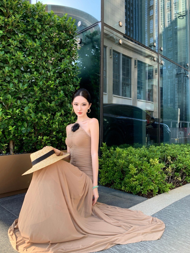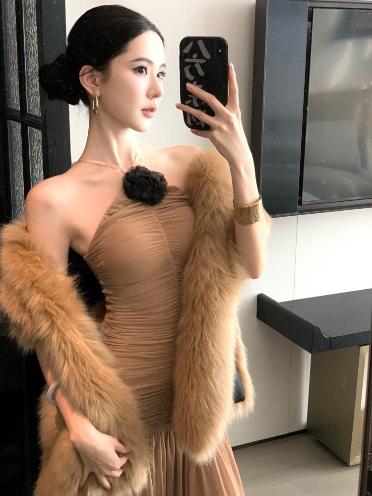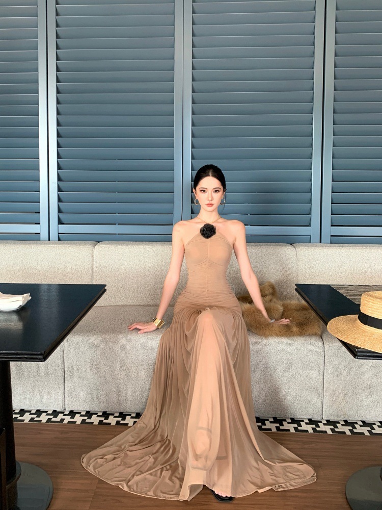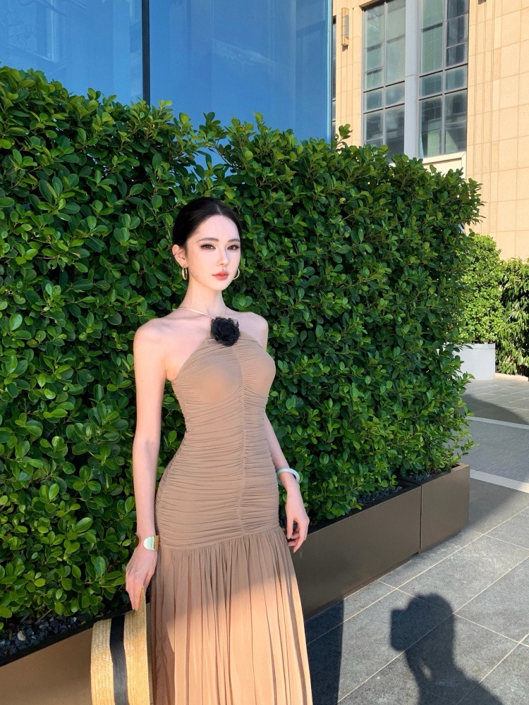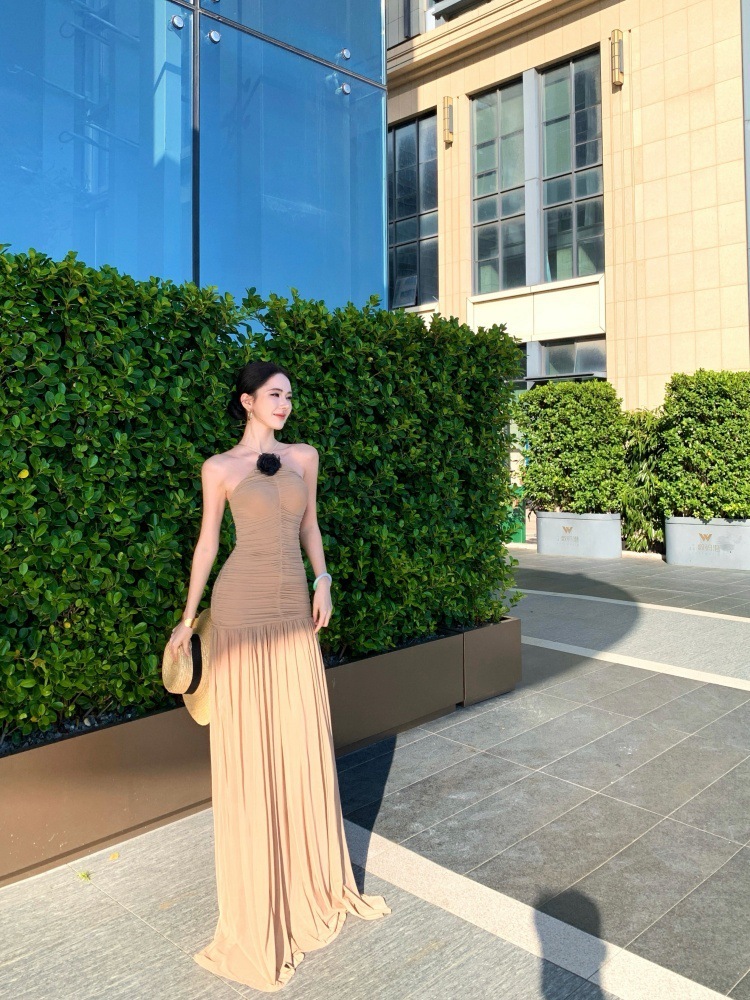 高雅名媛 彈性削肩長洋裝