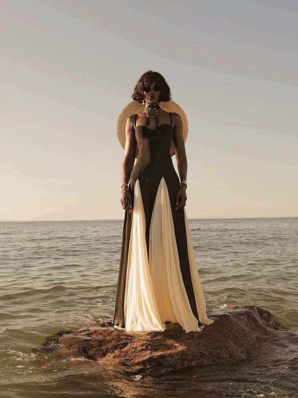 有胸墊 細肩帶上衣 (黑/白) 顏色請備註!