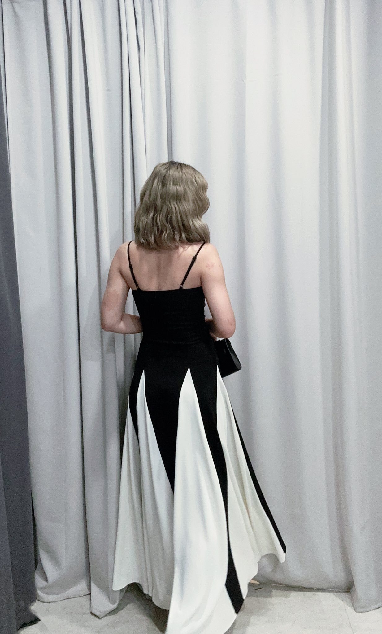 垂墜感十足的大裙襬增添了動人迷人的氣質。