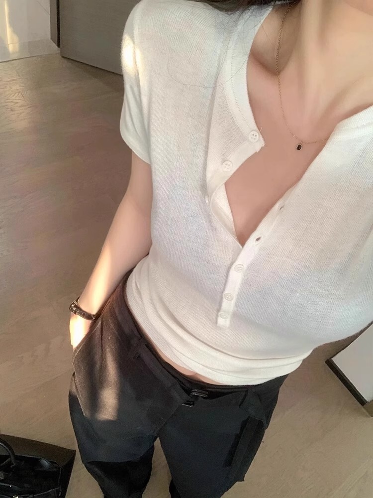 老錢風 短袖針織和肩上衣(駝/黑/白)