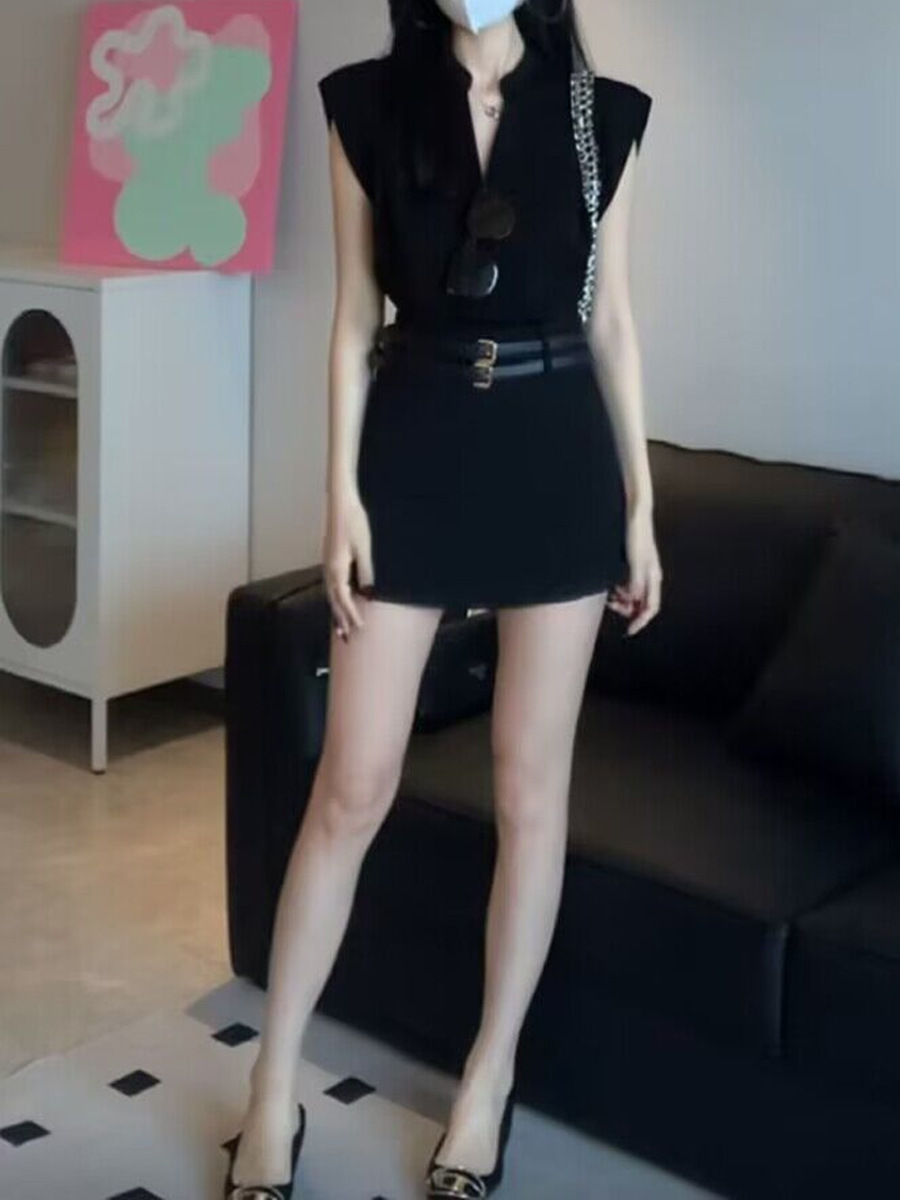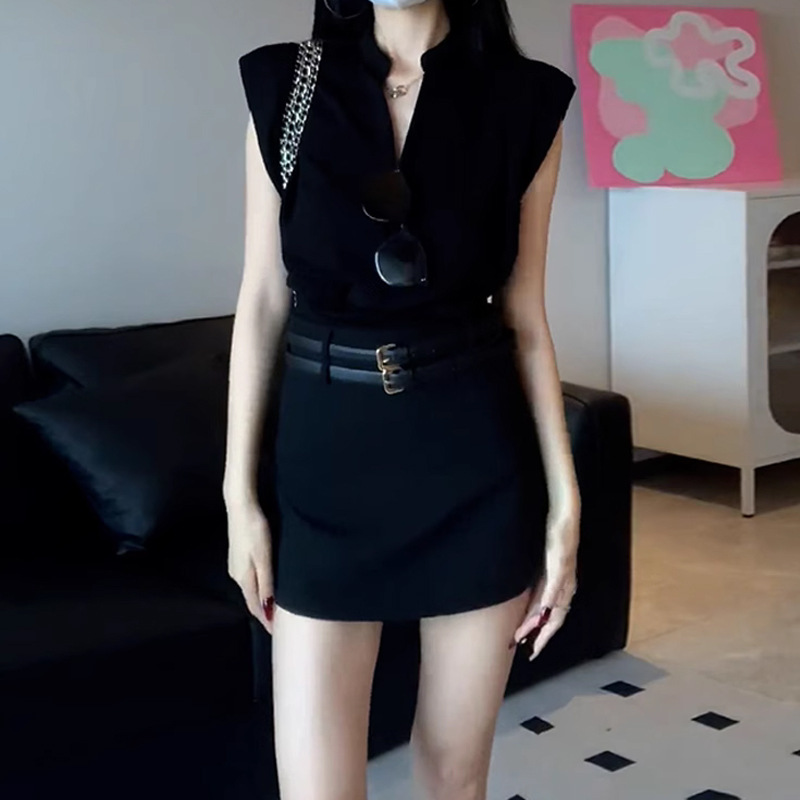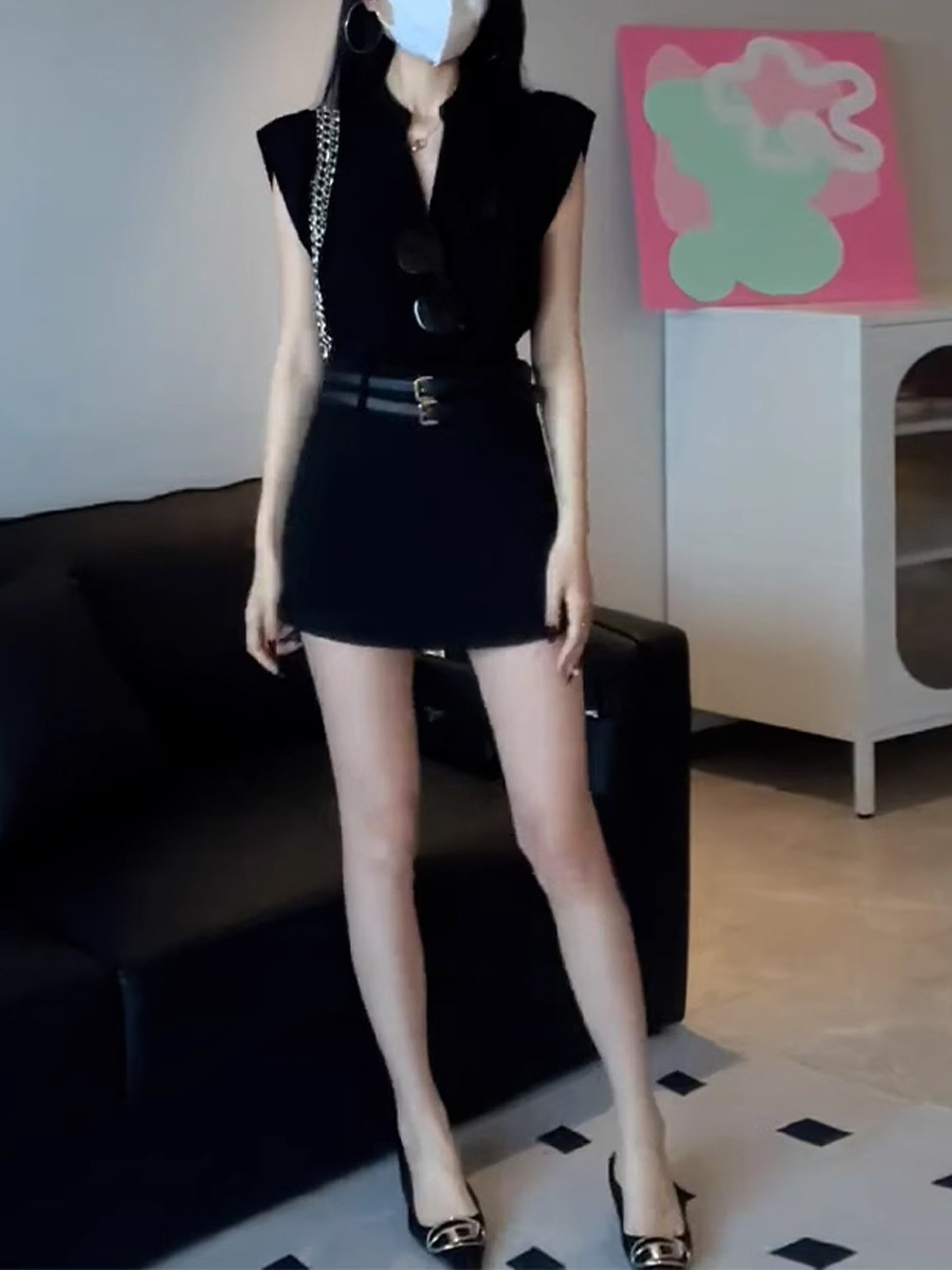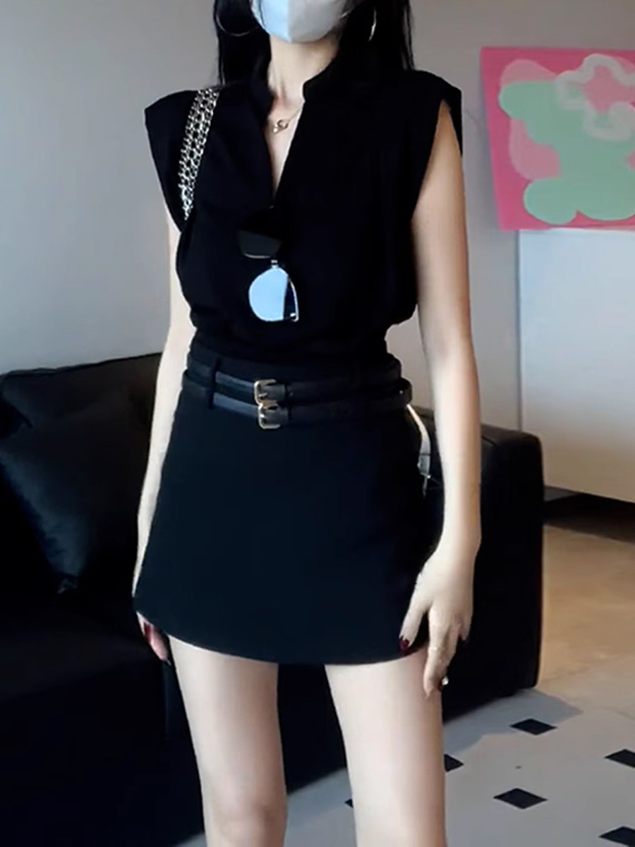 上衣挺版有彈性, 高腰拼接,馬上營造3_7好比例