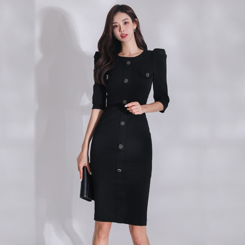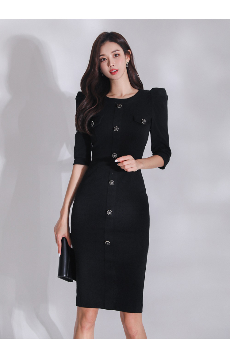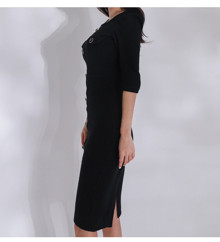 優雅氣質一擁而擁,是這件洋裝的特色。修身剪裁展現迷人曲線,營造時尚優雅的穿搭感。精緻的金屬掛扣飾點綴整體,增添細膩質感。黑色基調百搭耐穿,適合多種場合配襯。優雅大方,無論上班或約會都能散發女性魅力。