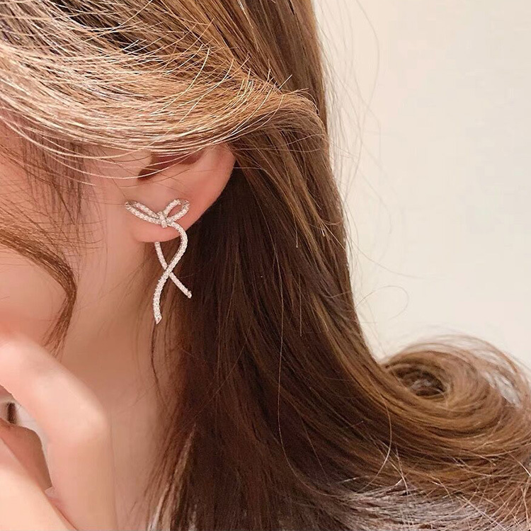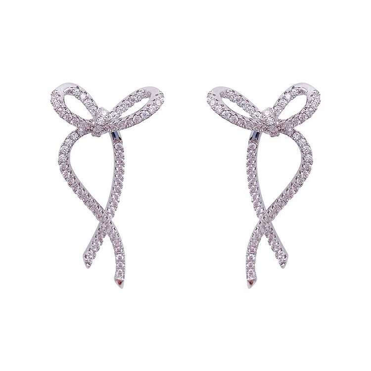 鋯石蝴蝶結耳針(925銀針)