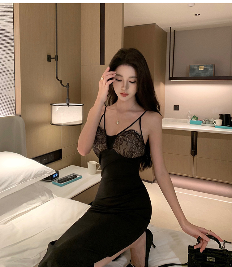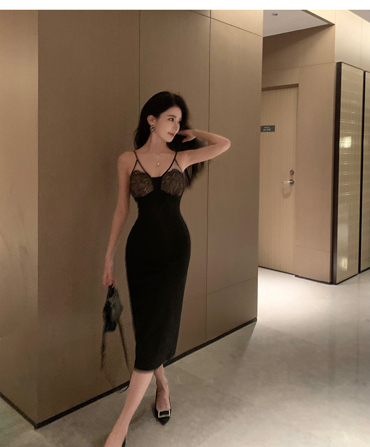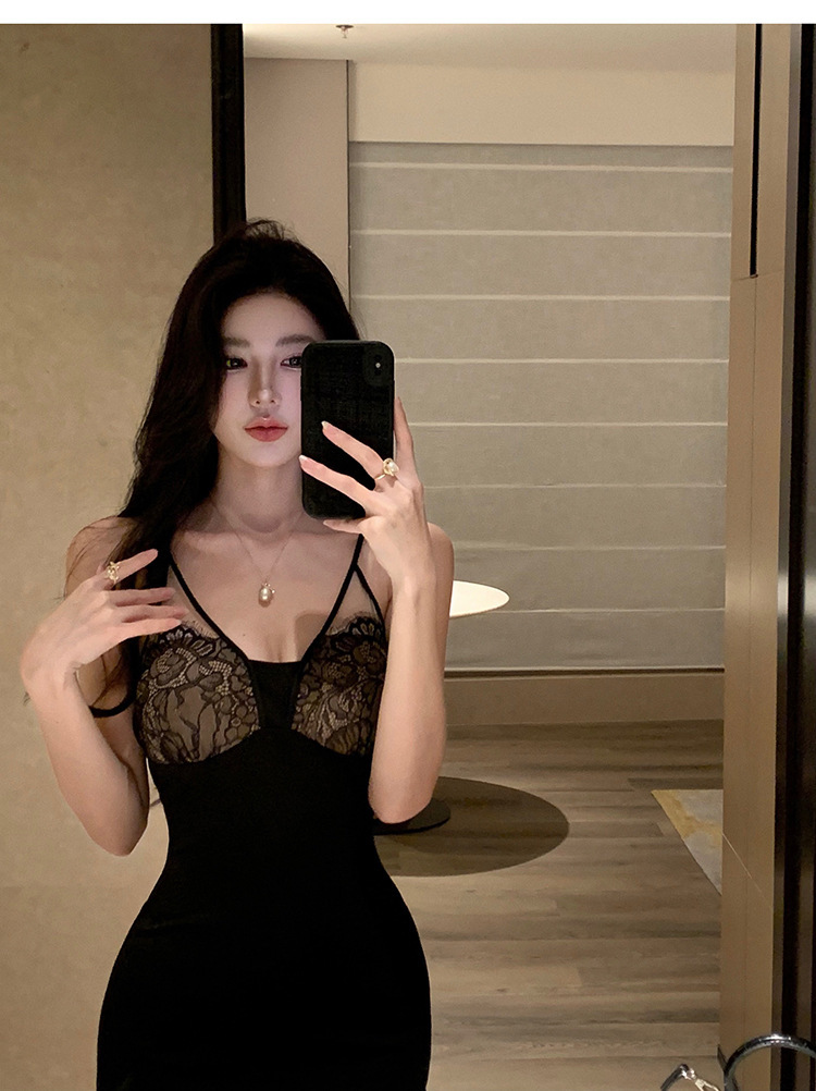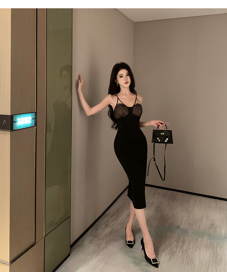 此款洋裝以修身剪裁勾勒出迷人曲線,搭配精緻蕾絲拼接細節,散發迷人女性魅力。黑色系搭配,適合多種場合配戴,彰顯您獨特氣質。透肌面料親膚柔軟,穿著舒適輕盈。散發迷人高雅氣息,成為時尚焦點。