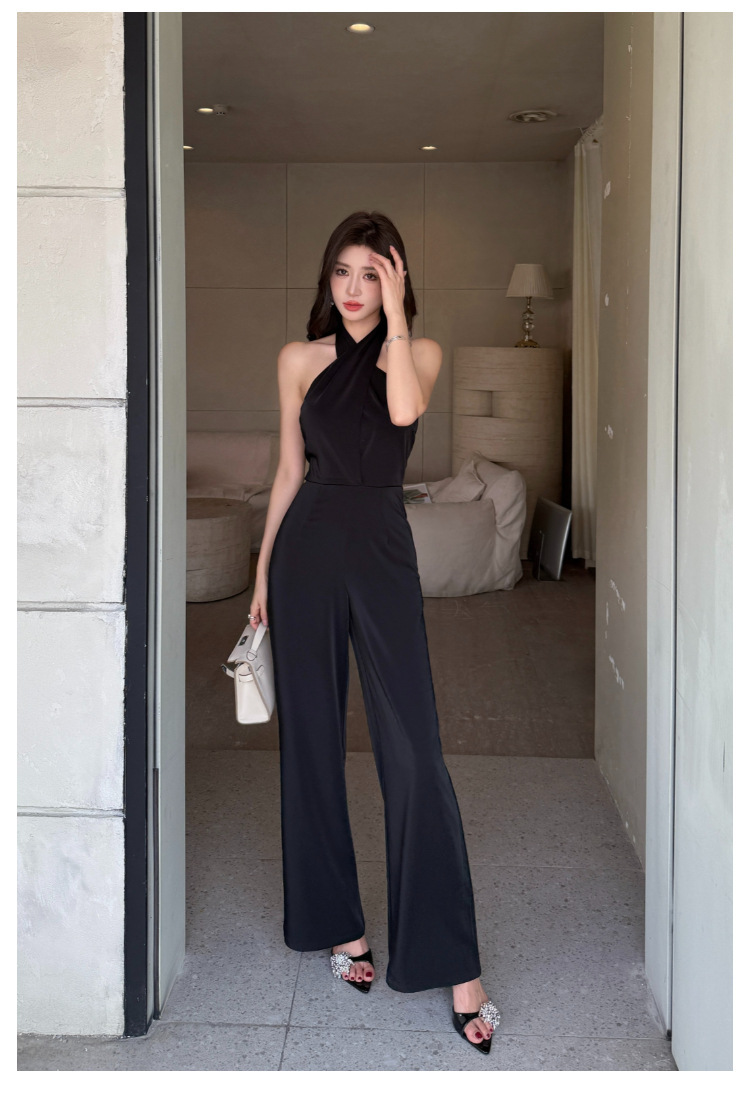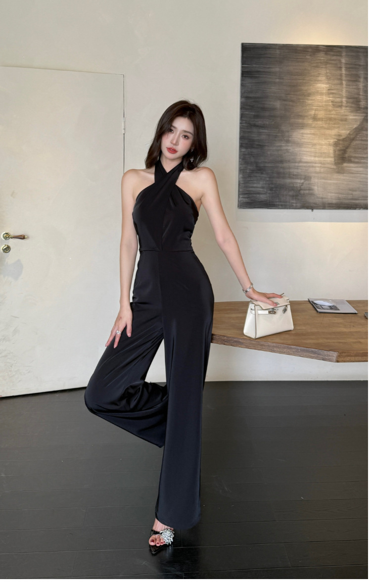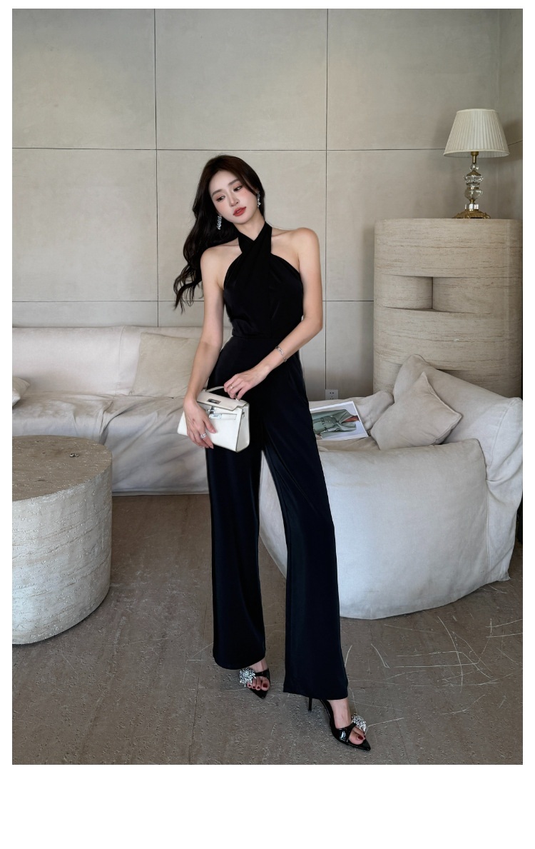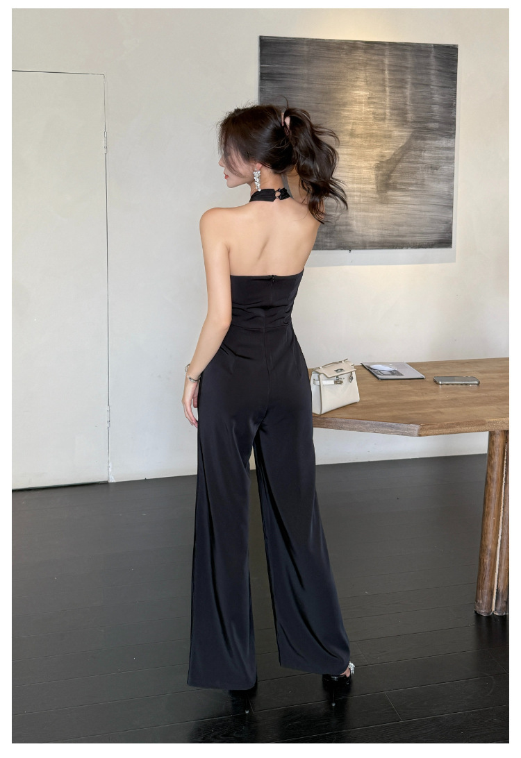 這款扭轉繞脖高腰連身褲,採用高雅黑色色調,洗練簡約的設計。前胸部分以扭結造型點綴,增添別致的視覺效果。高腰剪裁,拉長線條,顯得修長修身。彈性優良的面料,穿著舒適自在。無袖設計,展現優雅迷人的線條美。適合多種場合穿搭,散發時尚與氣質。