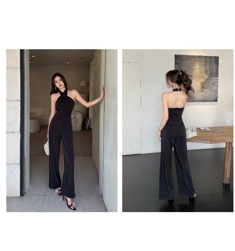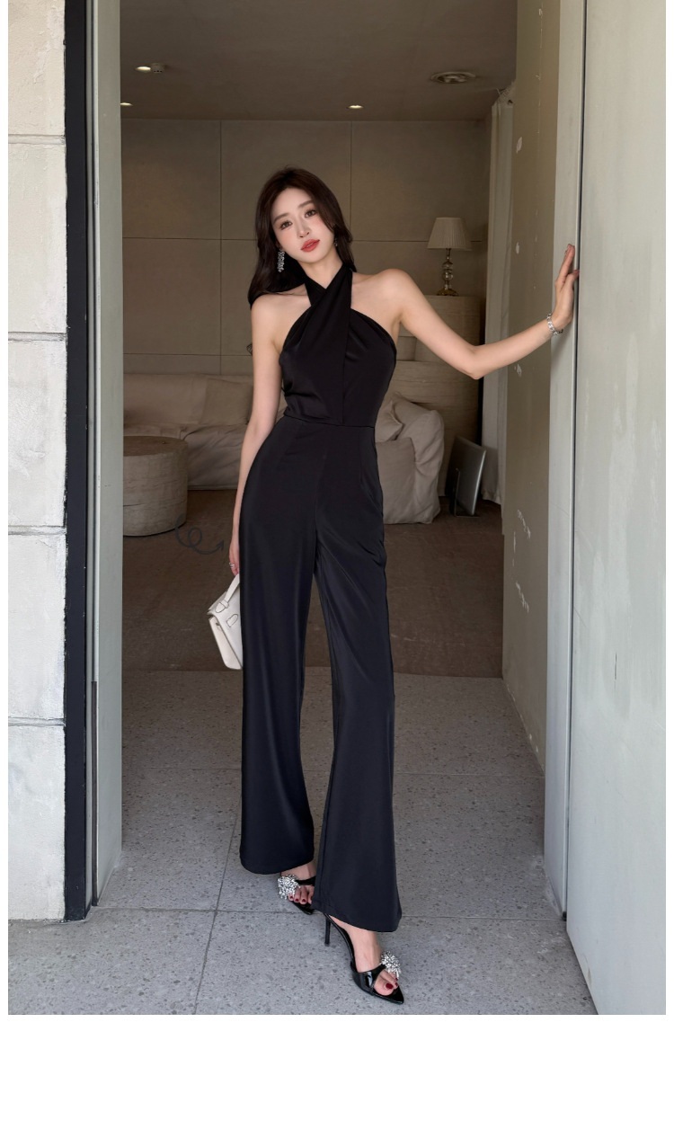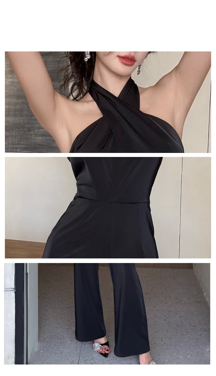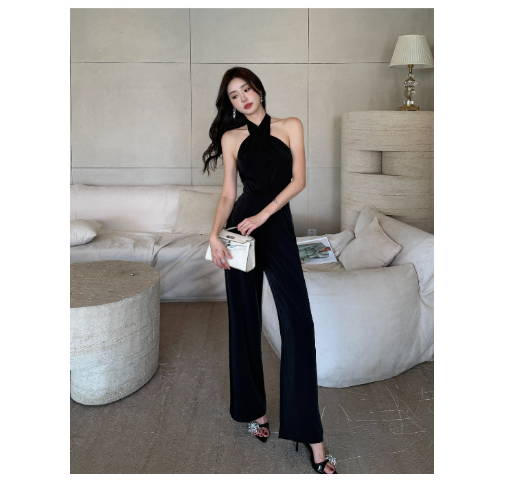 這款扭轉繞脖高腰連身褲,採用高雅黑色色調,洗練簡約的設計。前胸部分以扭結造型點綴,增添別致的視覺效果。高腰剪裁,拉長線條,顯得修長修身。彈性優良的面料,穿著舒適自在。無袖設計,展現優雅迷人的線條美。適合多種場合穿搭,散發時尚與氣質。