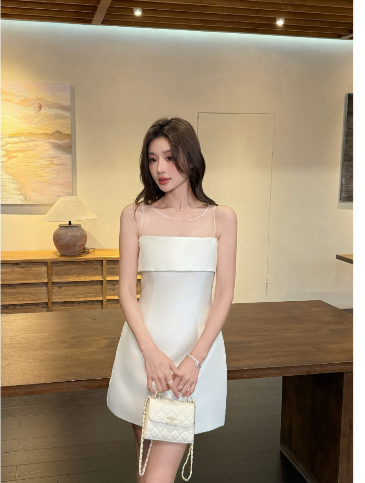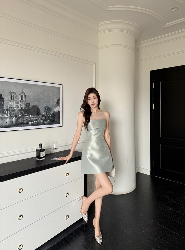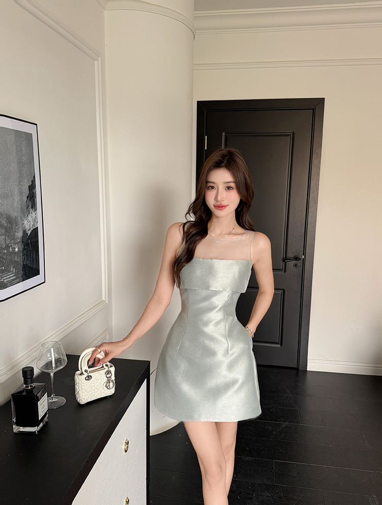 透膚網紗 偽平口小禮服(綠/白)