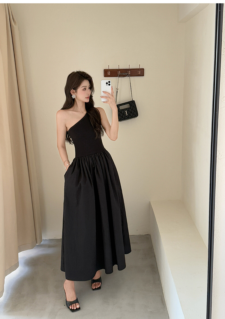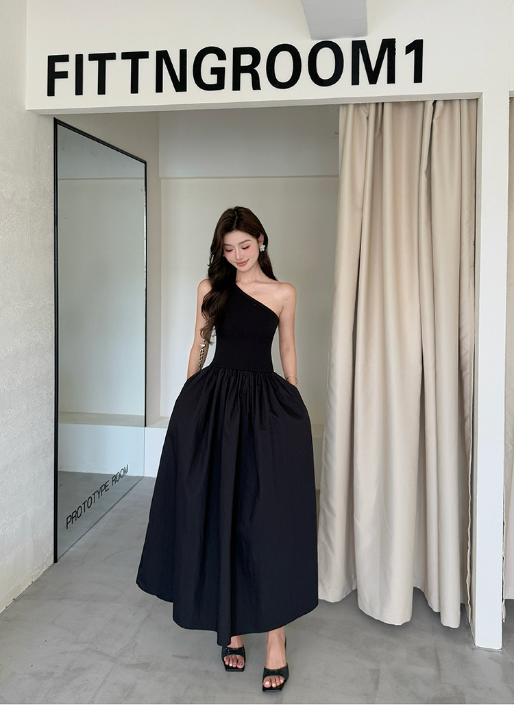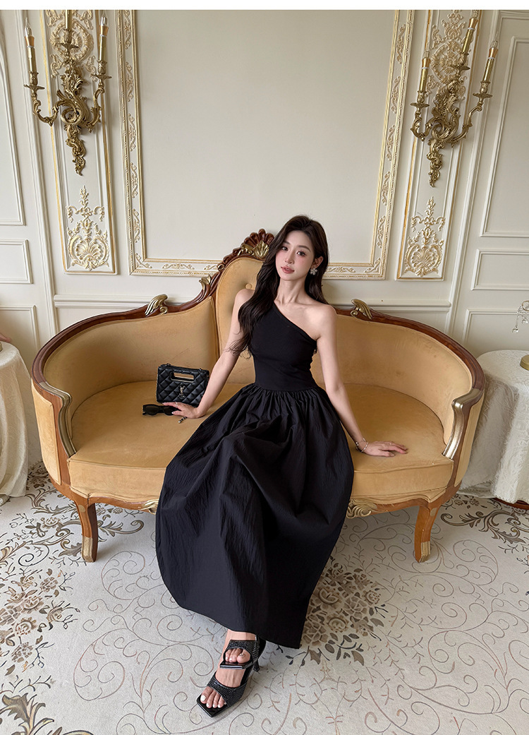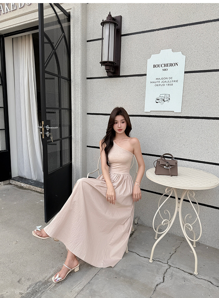 一款迷人優雅的單肩剪裁洋裝,以流暢的線條和寬大的裙擺設計,賦予整體造型優雅迷人的氣質。精選高質感的面料,提升穿著的舒適感。多款色彩可選,適合各種場合穿搭。