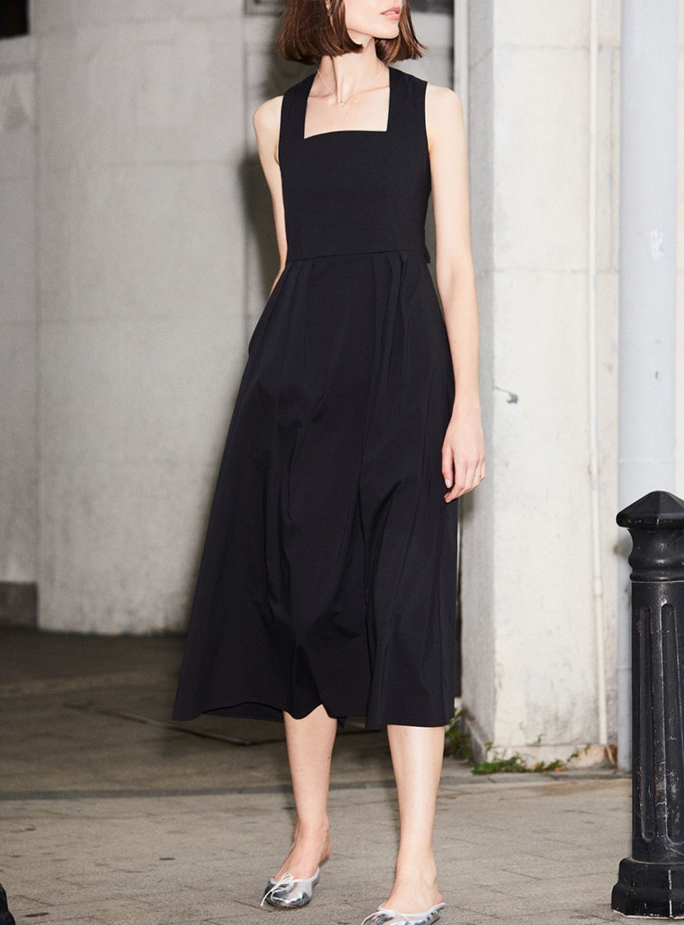 簡約低調卻能展現獨特個性的優雅黑色長洋裝。交叉設計的袒露背部展現性感,又添加了一絲清新活潑的氣息。下擺垂墜設計,流暢垂墜展現女性曲線,穿著舒適自然。