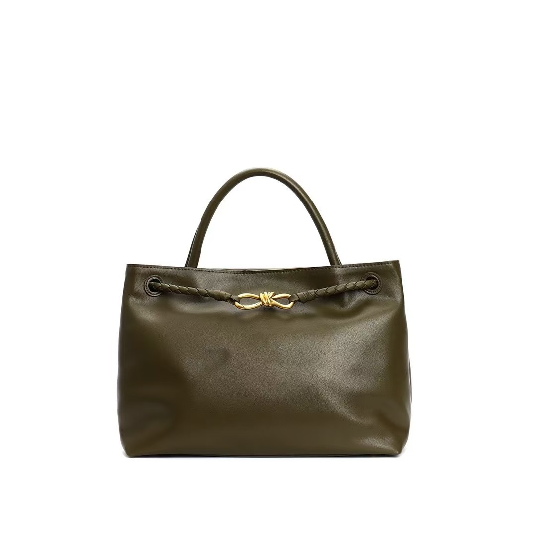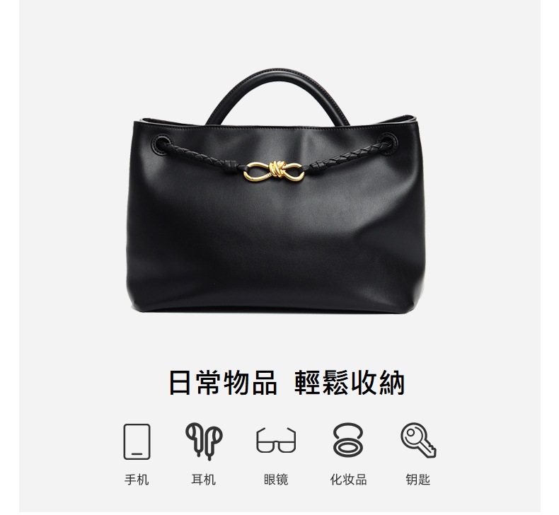這款金屬扭結牛皮大方包擁有多種色彩可選,全身採用優質牛皮材質,耐用耐磨,攜帶上手非常舒適。包身上方的金屬扭結裝飾,賦予這個包款獨特個性,彰顯高雅時尚之美。大容量的設計,可輕鬆裝下生活所需,非常實用。無論是上班上課,還是外出購物,這款牛皮包都是您的最佳選擇。
