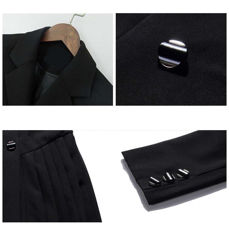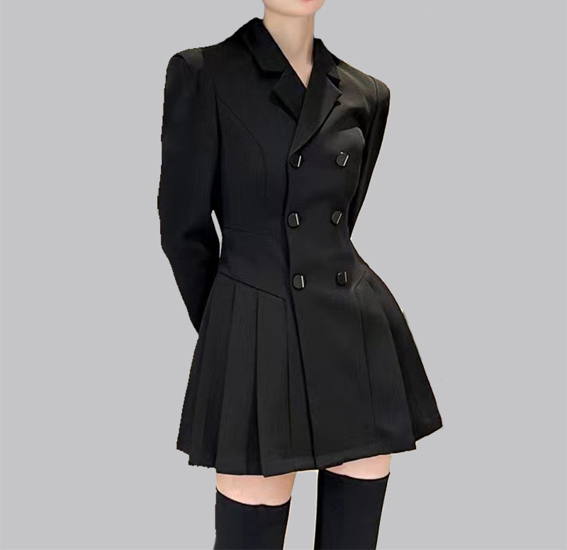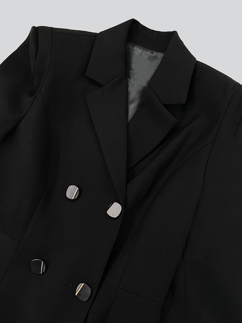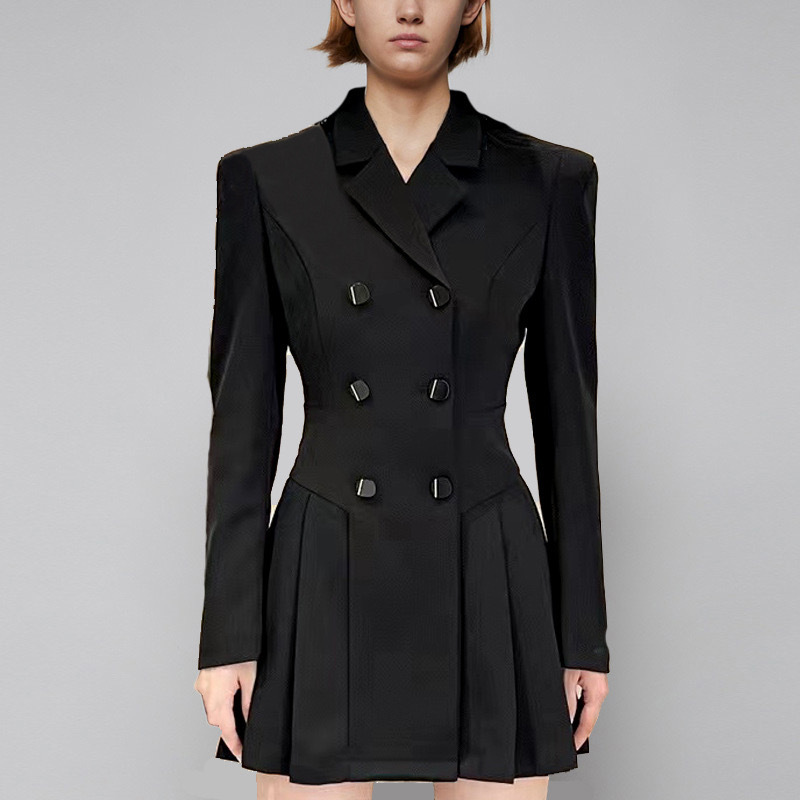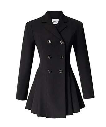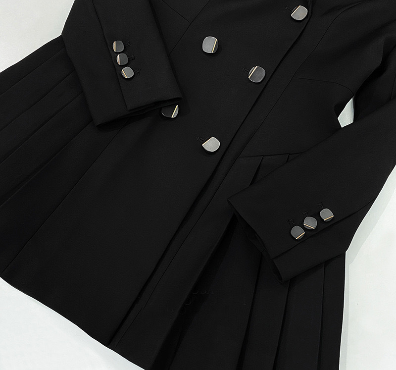 徐睿知同款 造型雙排扣西裝百摺洋裝