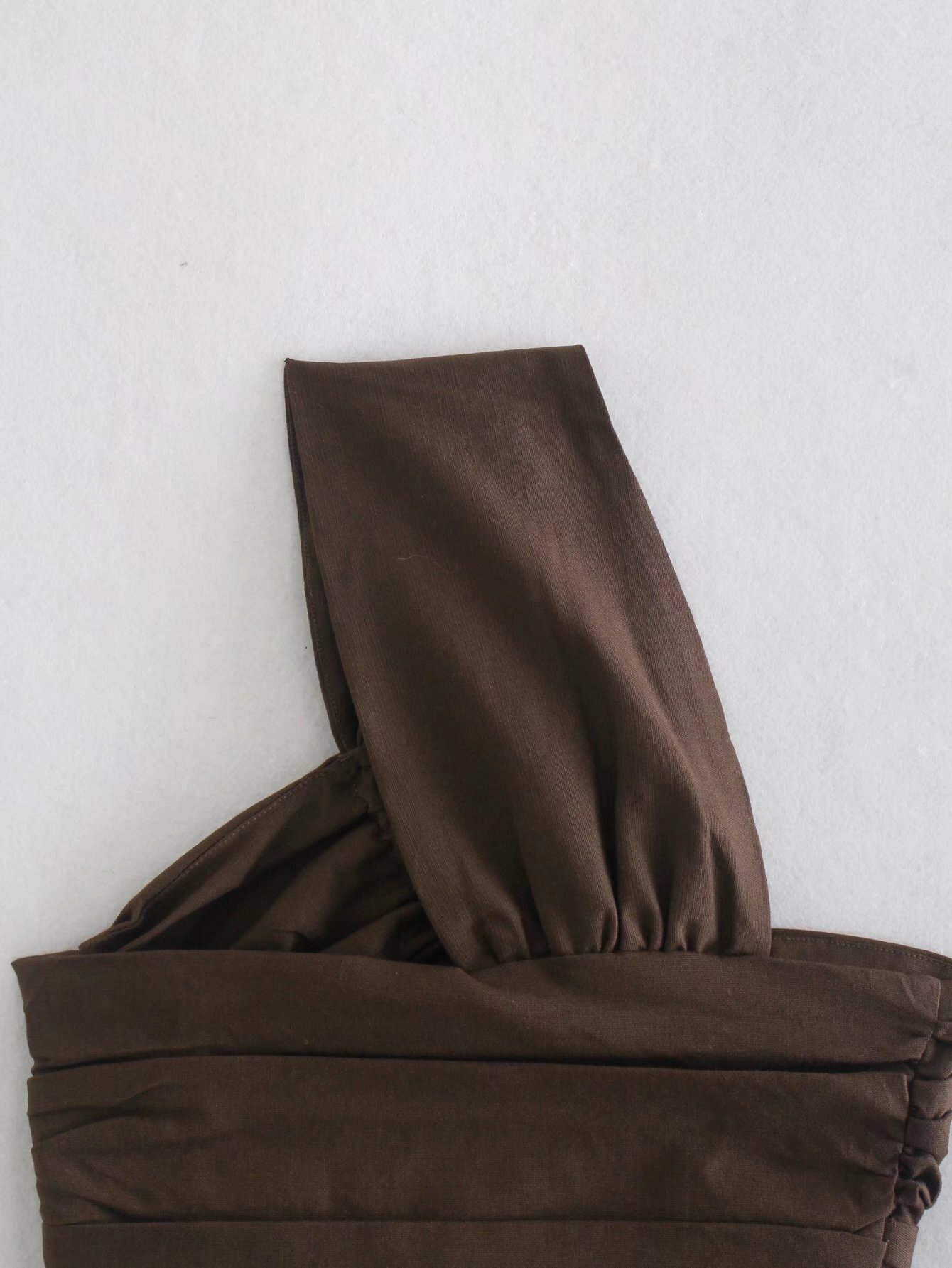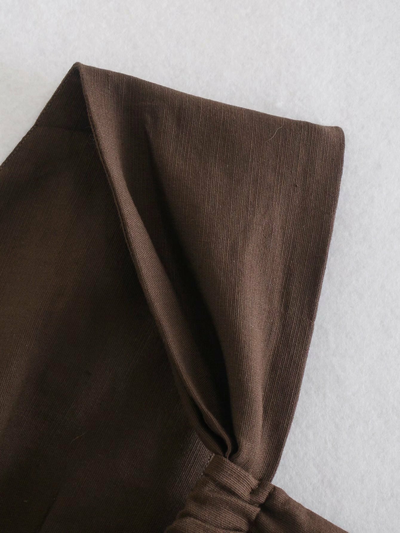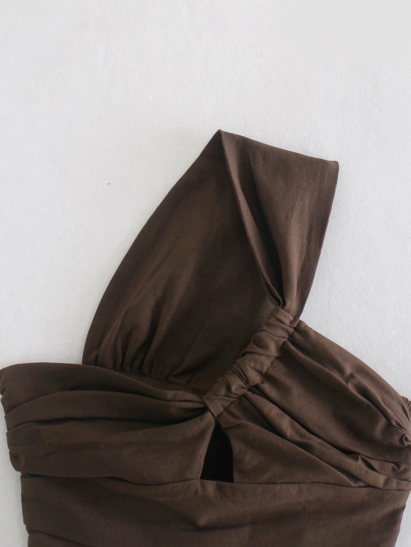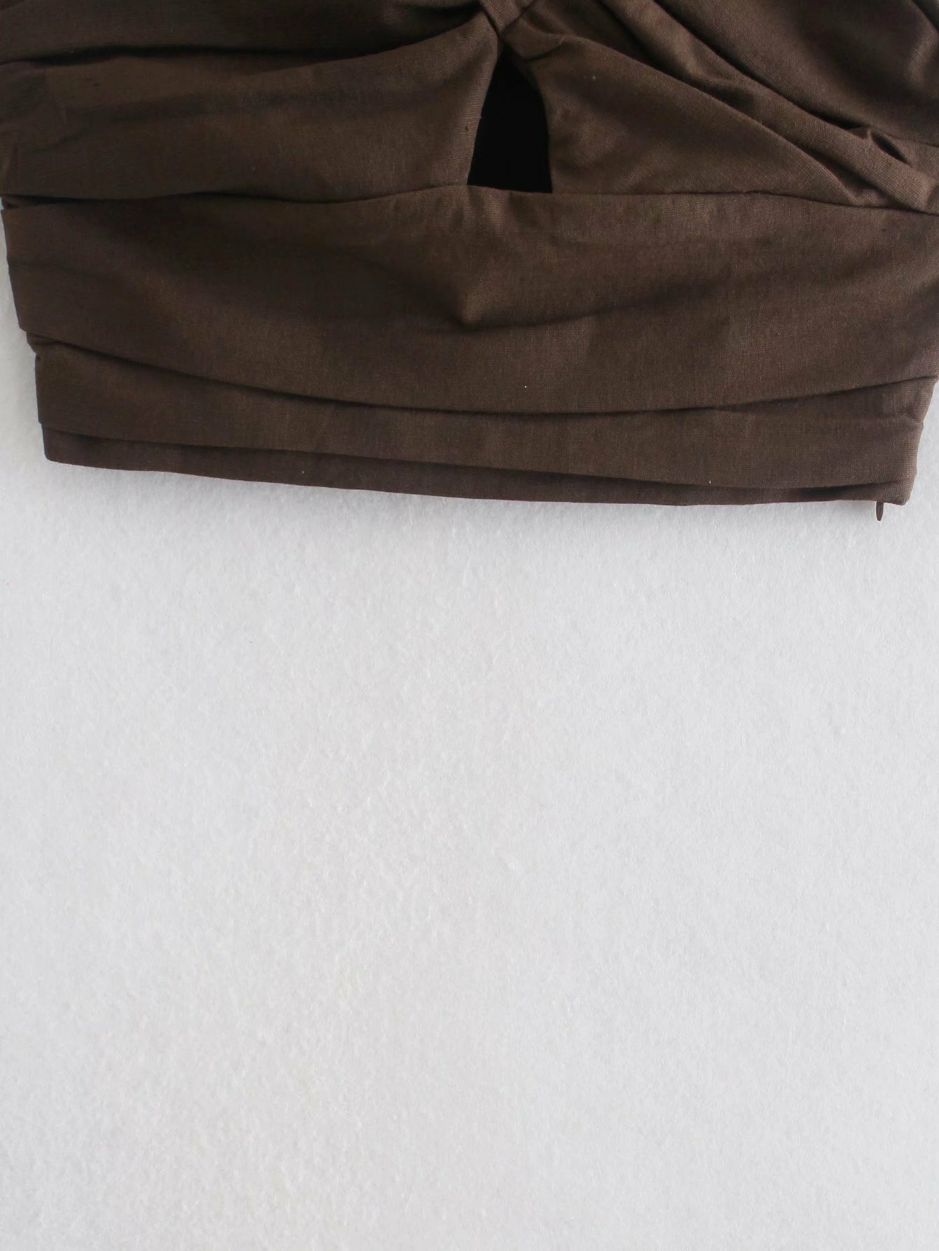 斜肩不對稱短版上衣(芥末黃/咖)