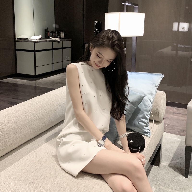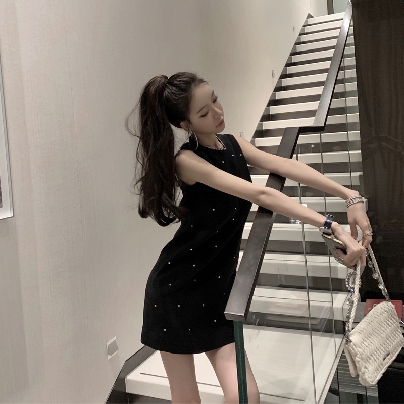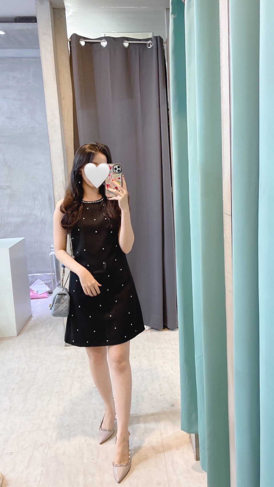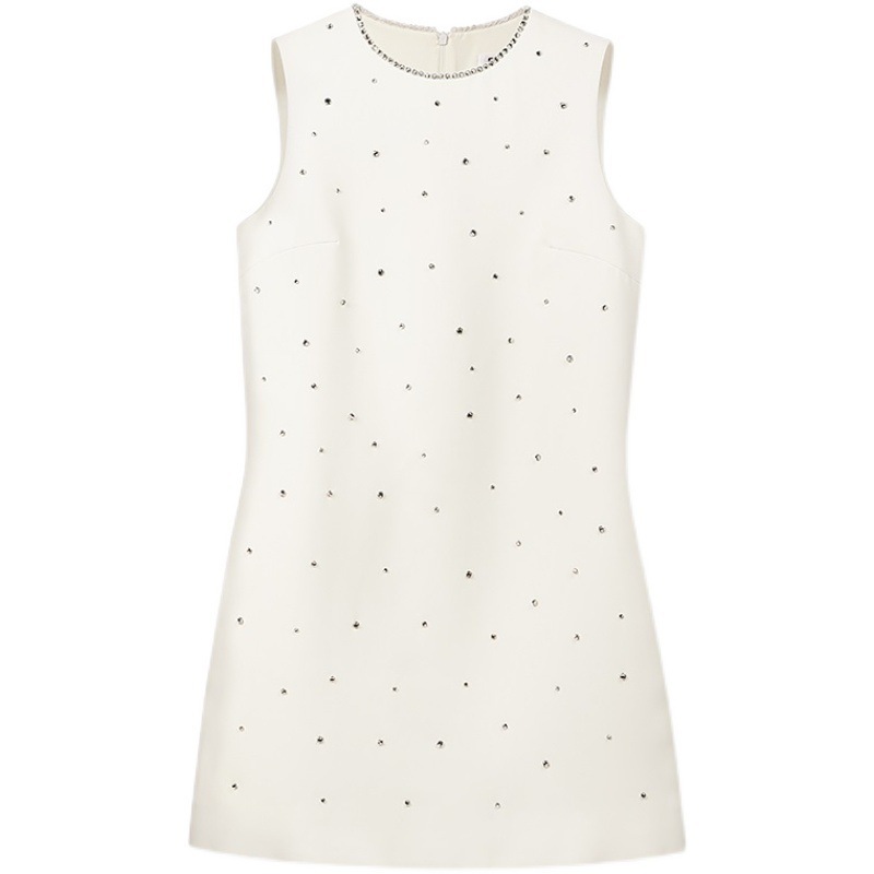 重工釘珠鑲鑽修身小洋裝 (黑/白)