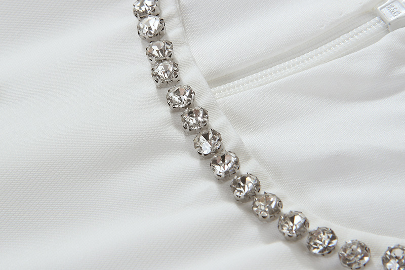 簡約設計中透露著獨特魅力,散落的精緻水鑽為整件洋裝增添星光般的亮眼效果。