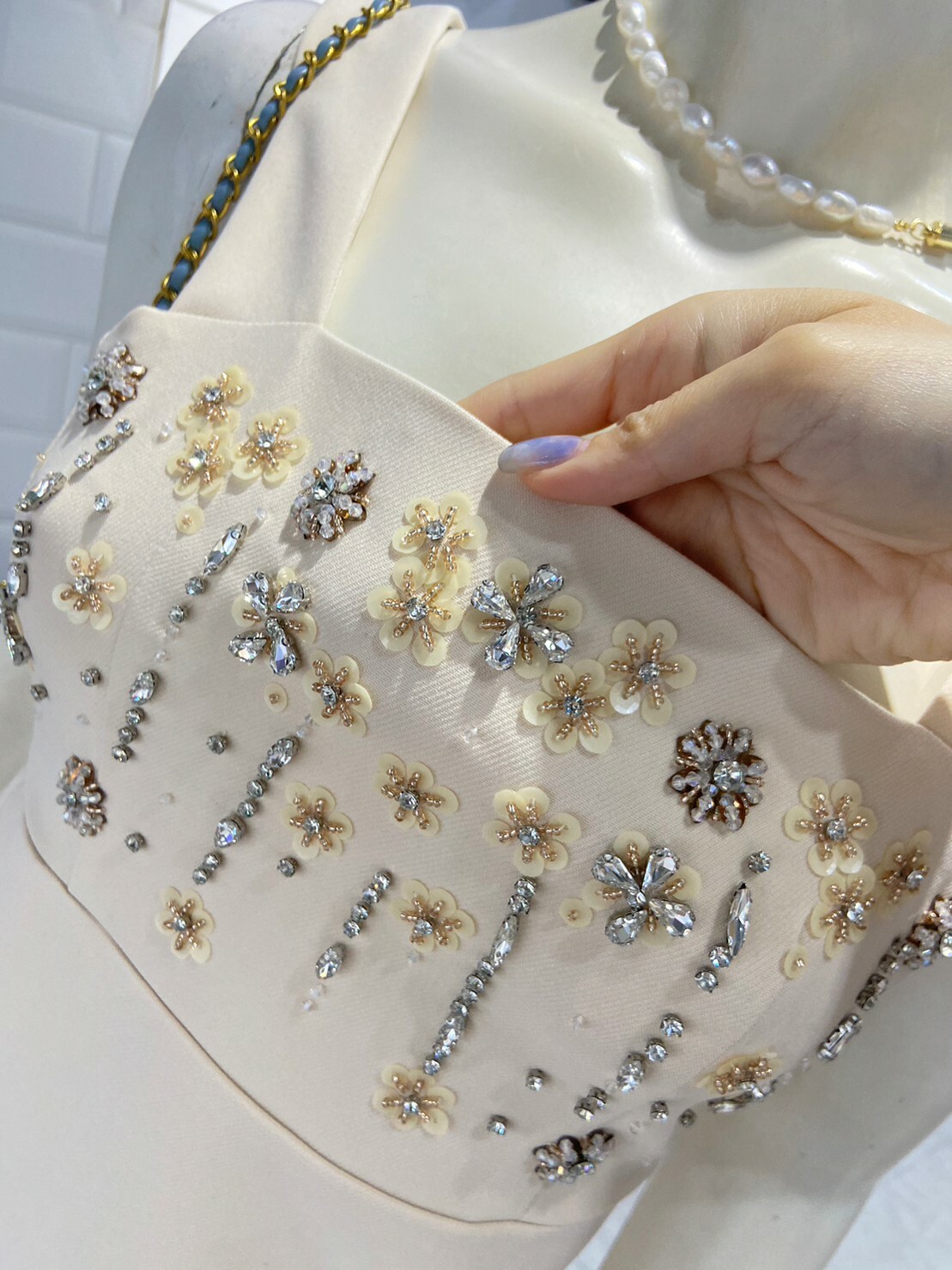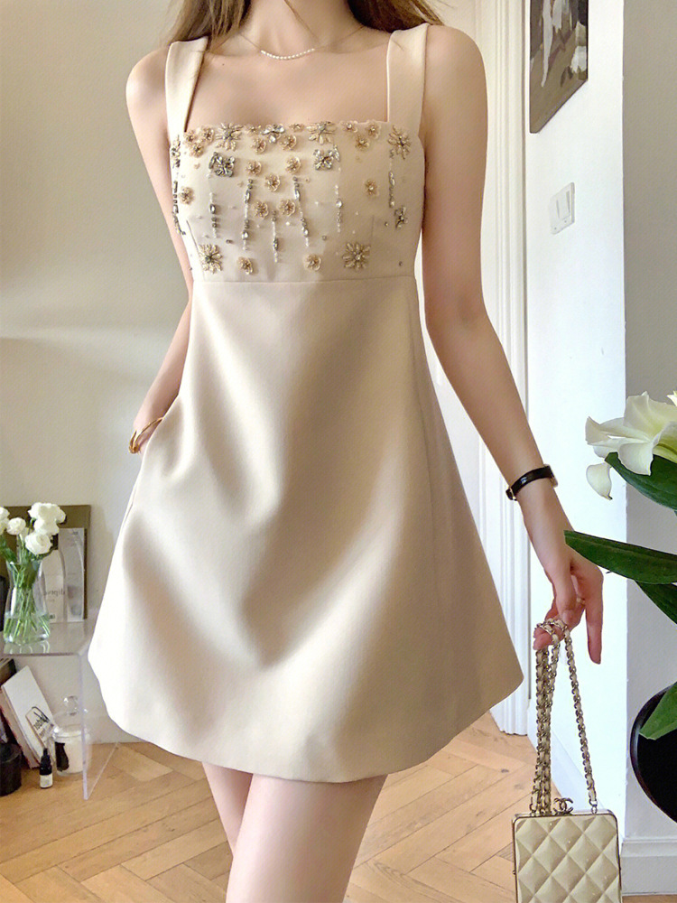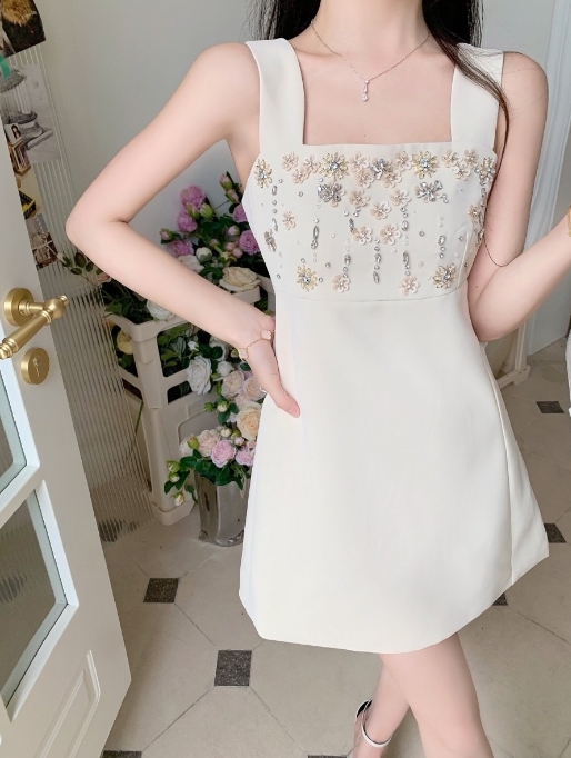 優雅舒適的剪裁,搭配精緻細膩的花朵水鑽,展現清新雅緻的氣質。 輕盈的面料,貼身剪裁彰顯曲線。 側繫帶設計提升腰線曲線,增添俏麗迷人的氣質。 適合各種場合穿著,無論是小型聚會或正式場合都能展現妳的高雅魅力。 時尚優雅的設計,為妳增添不俗的魅力與氣質。